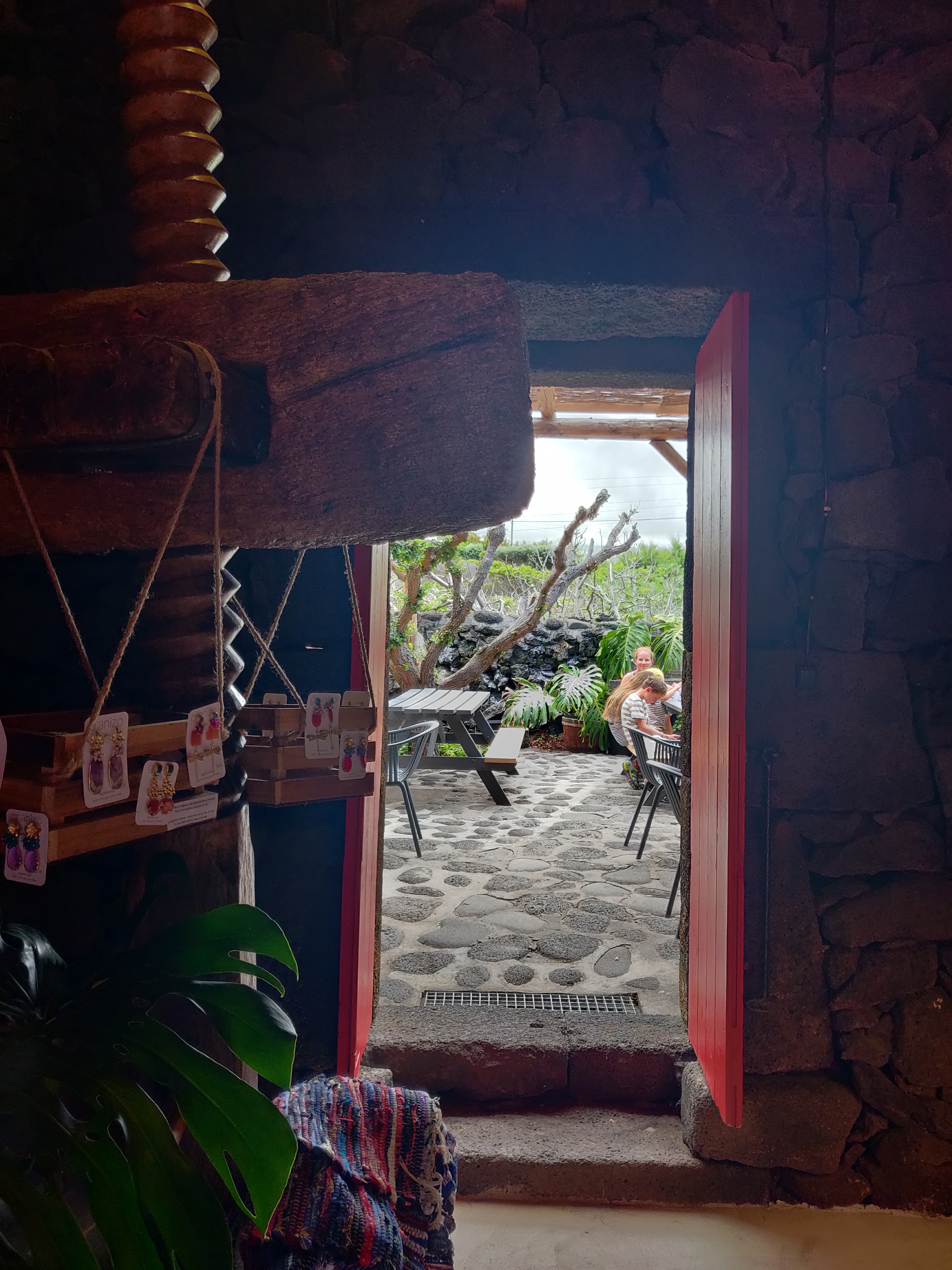 Nach einem ruhigen Frühstück fahren wir an die Nordwestküste der Insel, um uns die hiesigen Weingebiete anzuschauen. Da sich die Sonne noch nicht blicken lässt, machen wir noch einen Abstecher in die Berge zu einer Lavahöhle.