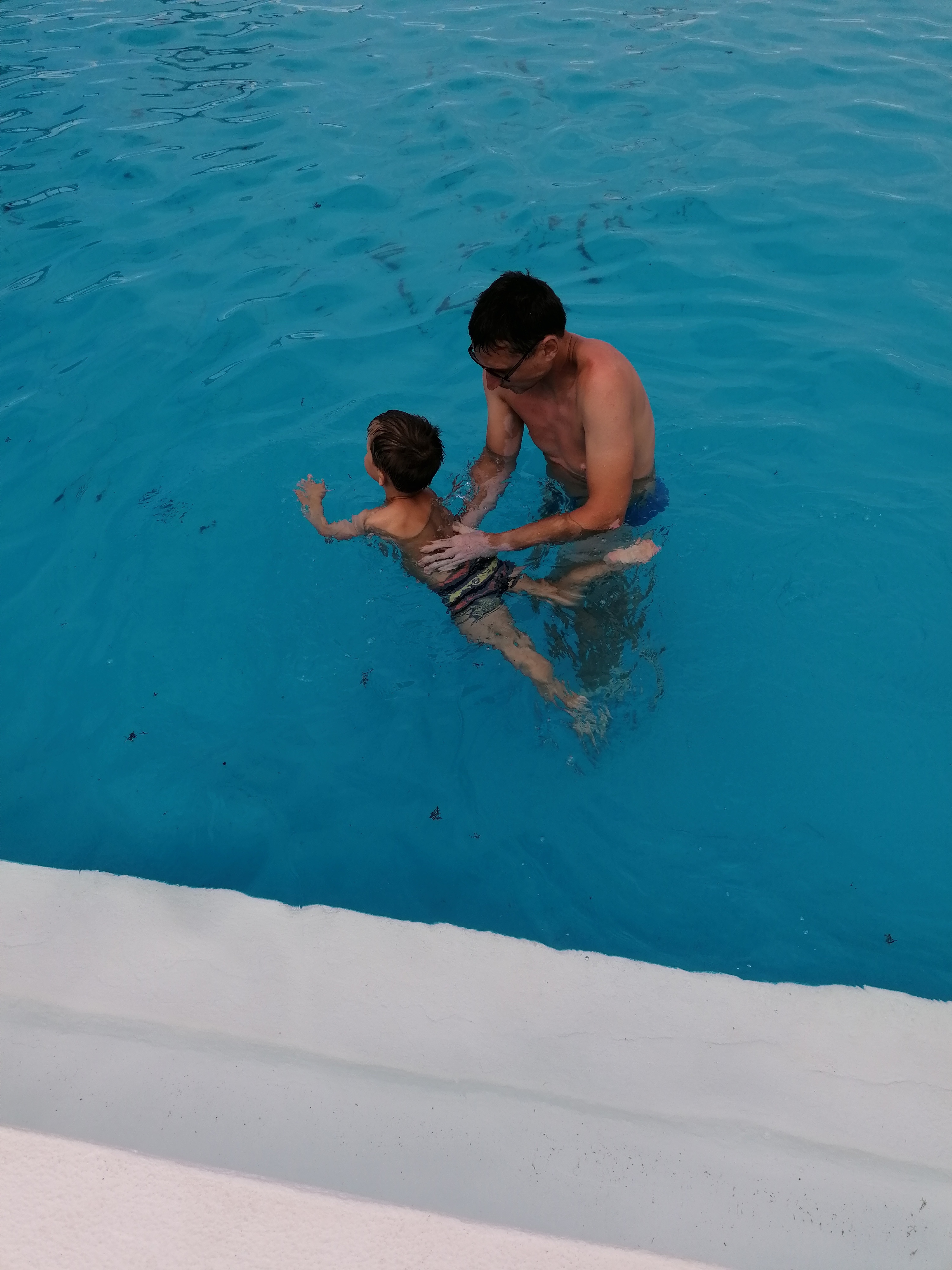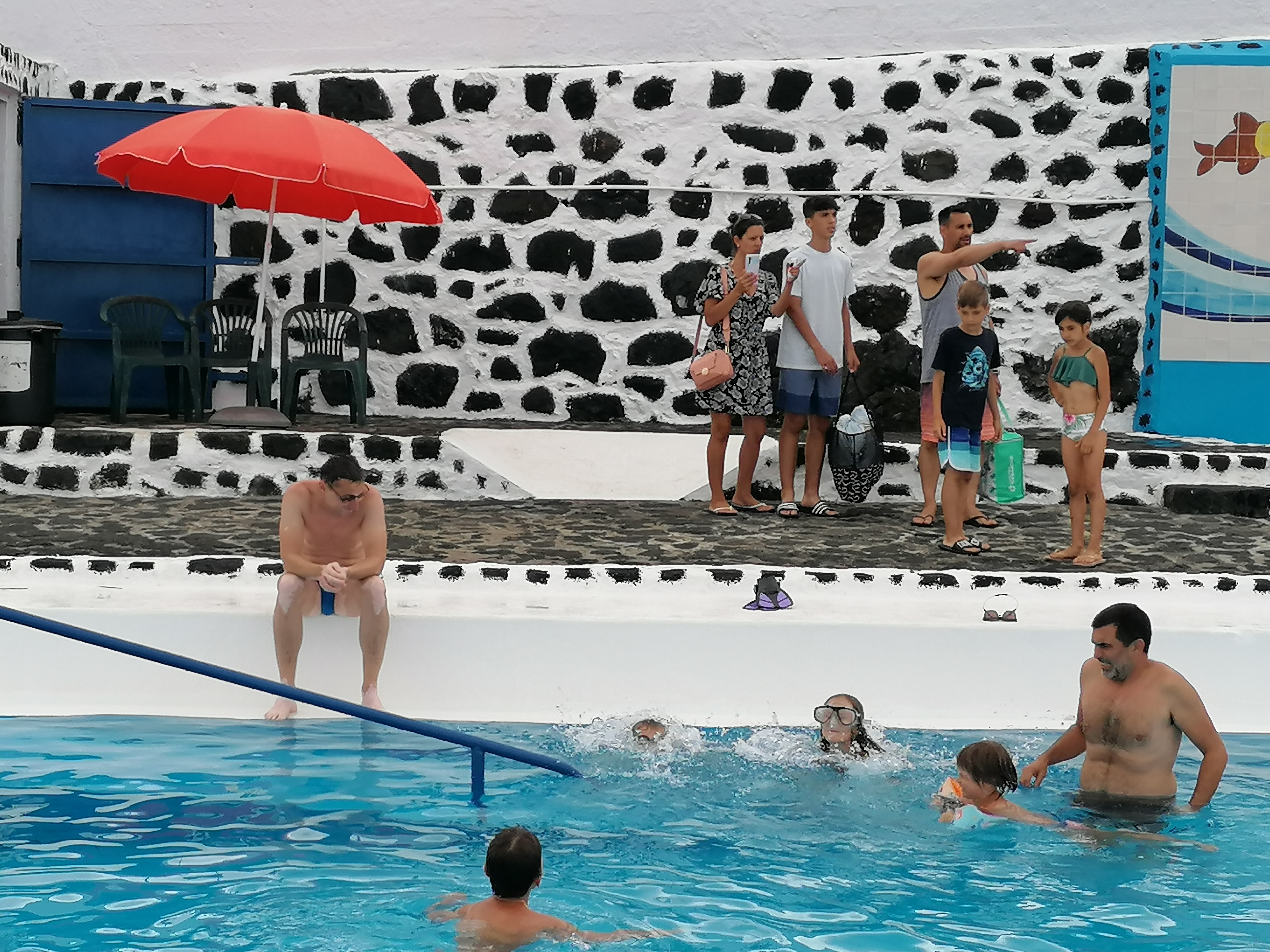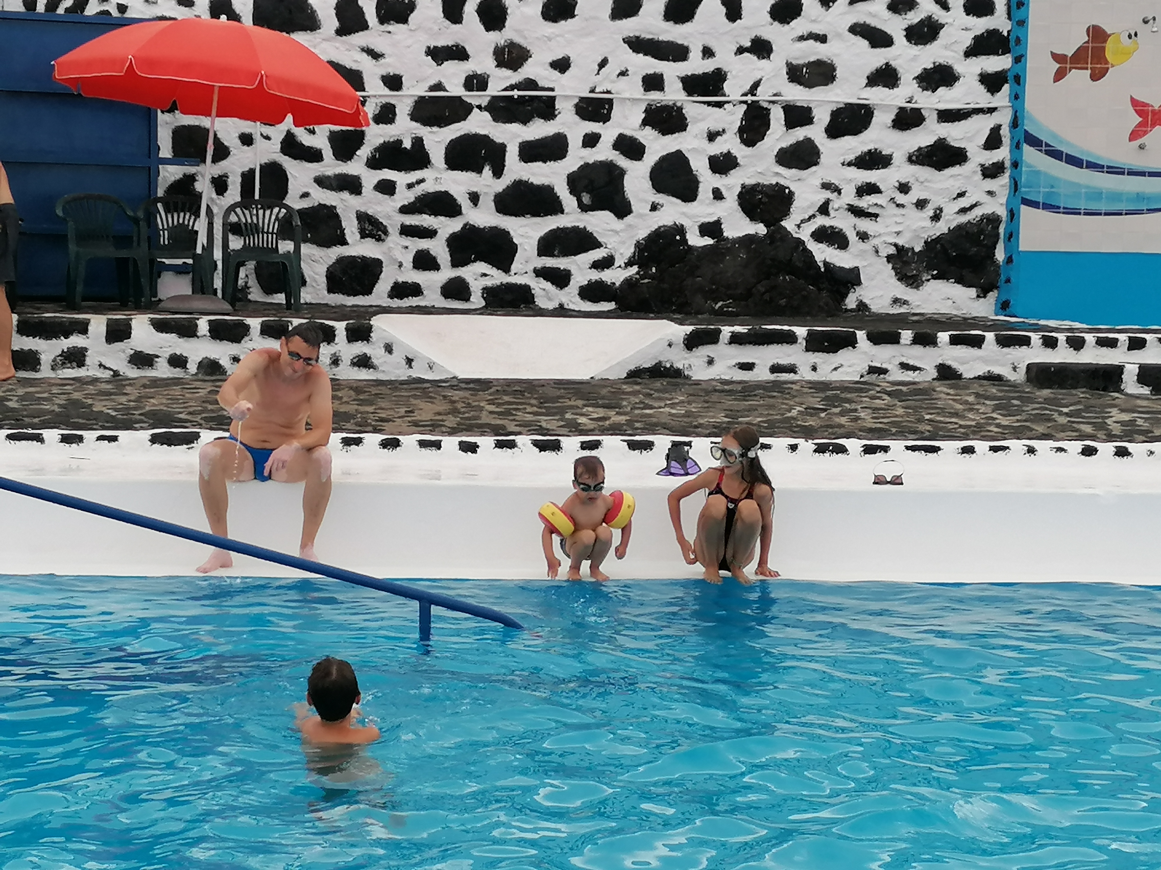 Bei den Stopps sind auch einige Badestellen. Uns gefällt aber keine so richtig - insbesondere aufgrund des recht starken Seegangs. Daher fahren wir bis San Antonio, dessen Meerwasser-Pools wir schon kennen. Hier legen wir noch einen größeren Badestopp ein, bevor es zum Abendbrot nach Hause geht.