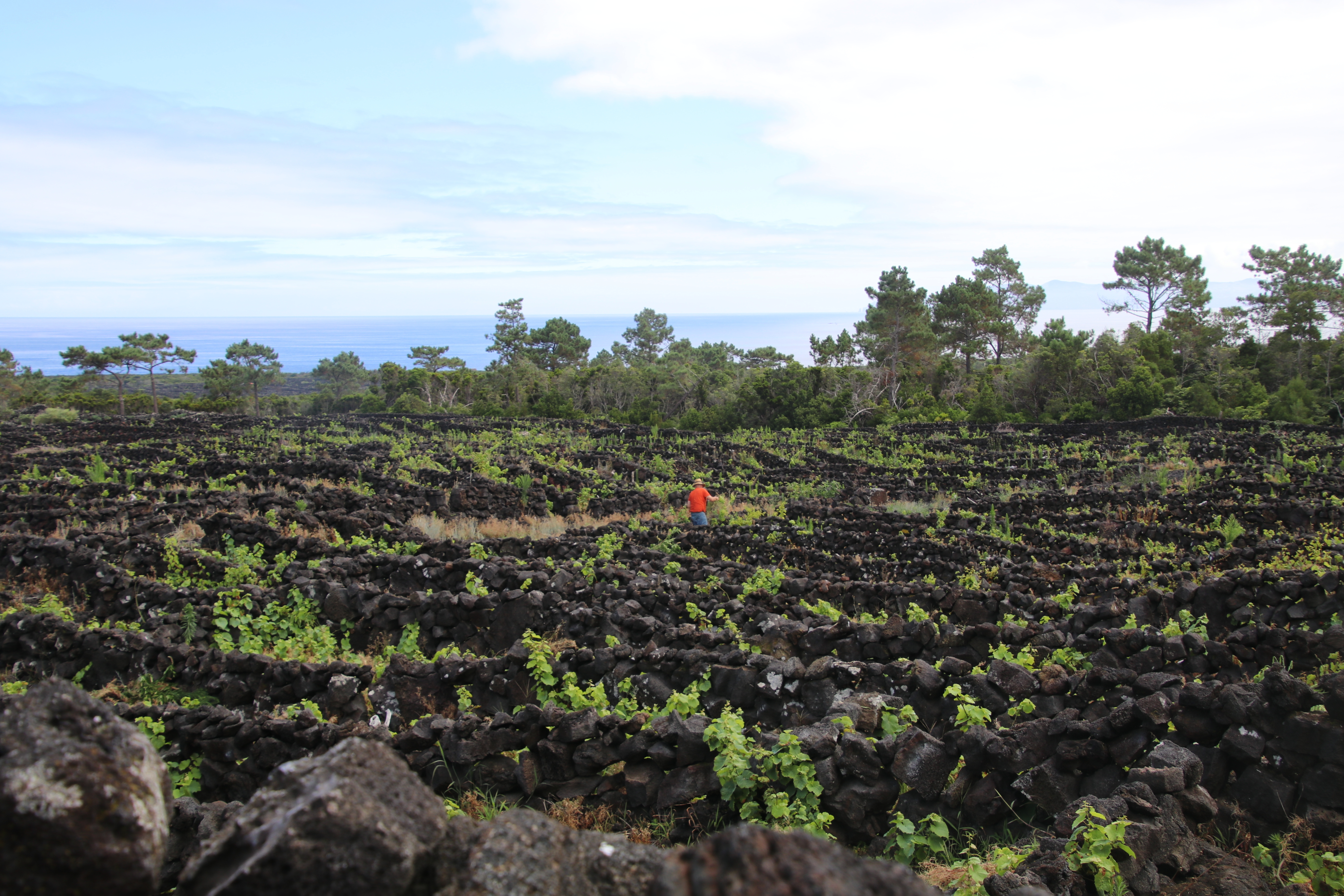 Als wir herauskommen, ist der Himmer immer noch bedeckt, aber die Sonne drückt schon ein wenig durch. Wir fahren erneut in Richtung der Weingebiete. Hier fahren wir einige der alten Wirtschaftswege ab und schauen uns die Weingärten an, welche aus Lavagestein gebaut wurden.