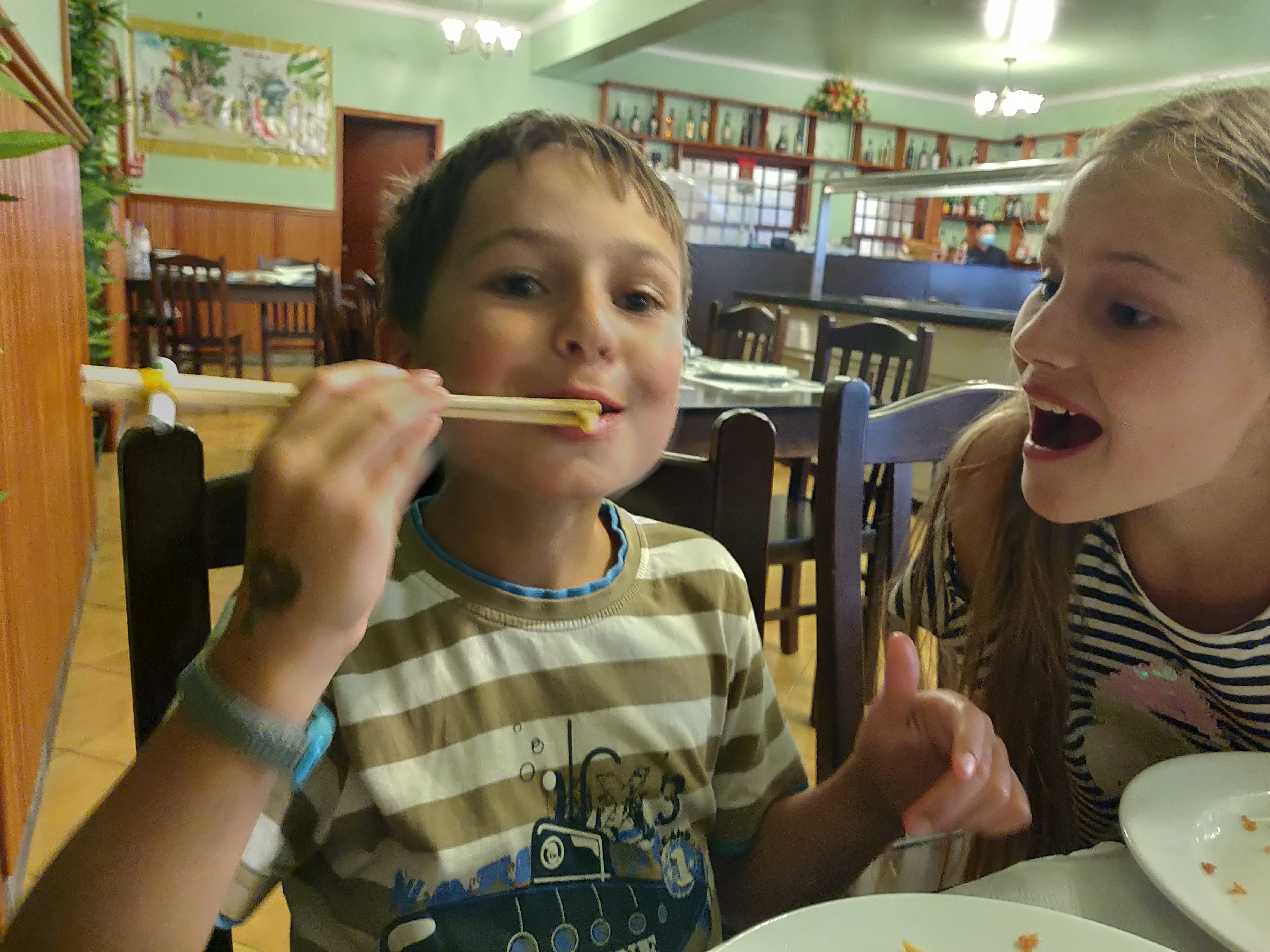 Mattis ist übermüdet, überdreht und damit nicht mehr in Topform für ein 5-Sterne-Restaurant. Daher suchen wir uns ein kleines chinesisches Restaurant in der Nähe. Annabell wollte sowieso gerne mal Sushi ausprobieren.