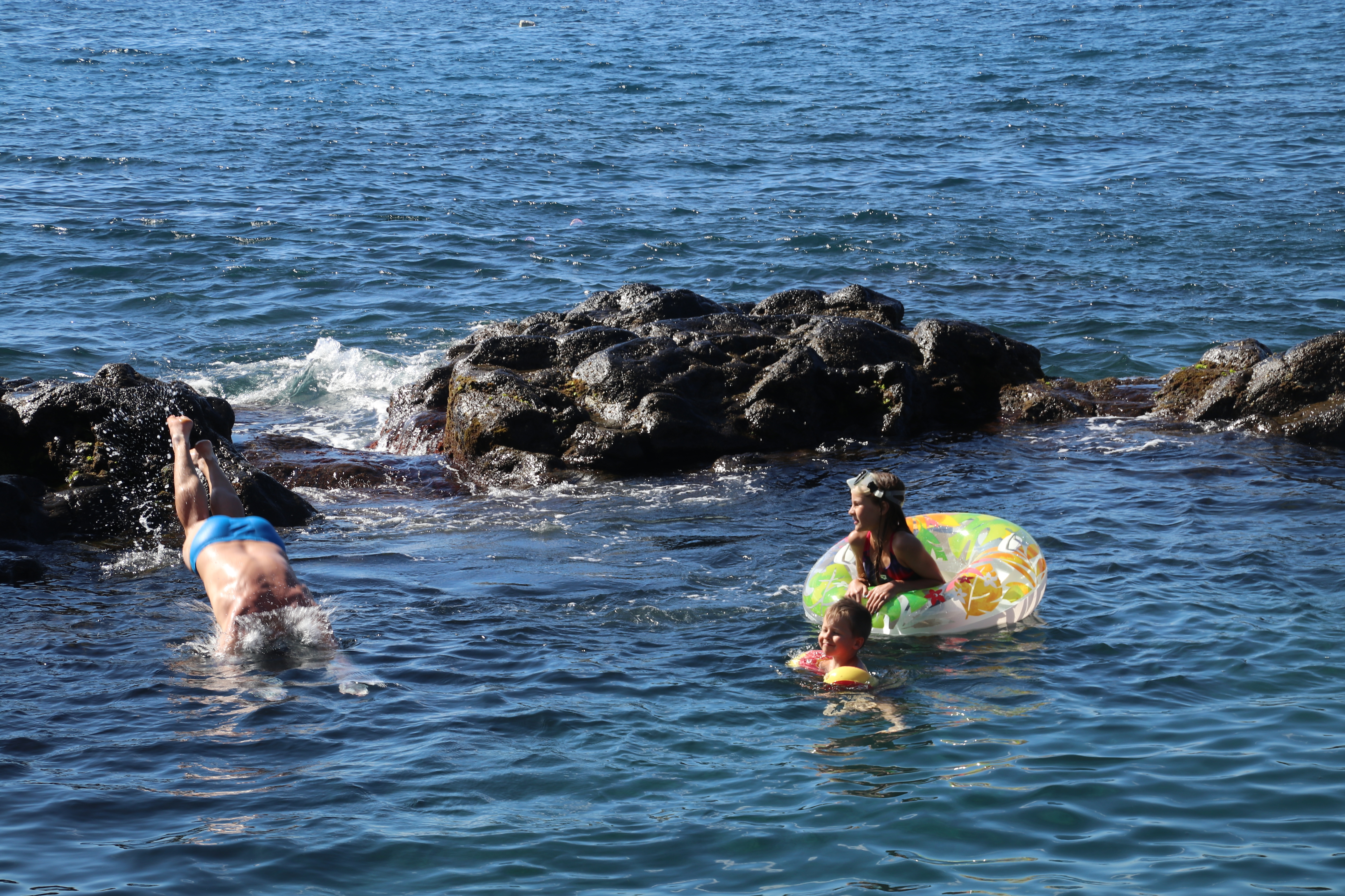Den restlichen Vormittag verbringen wir plantschend am Meer.