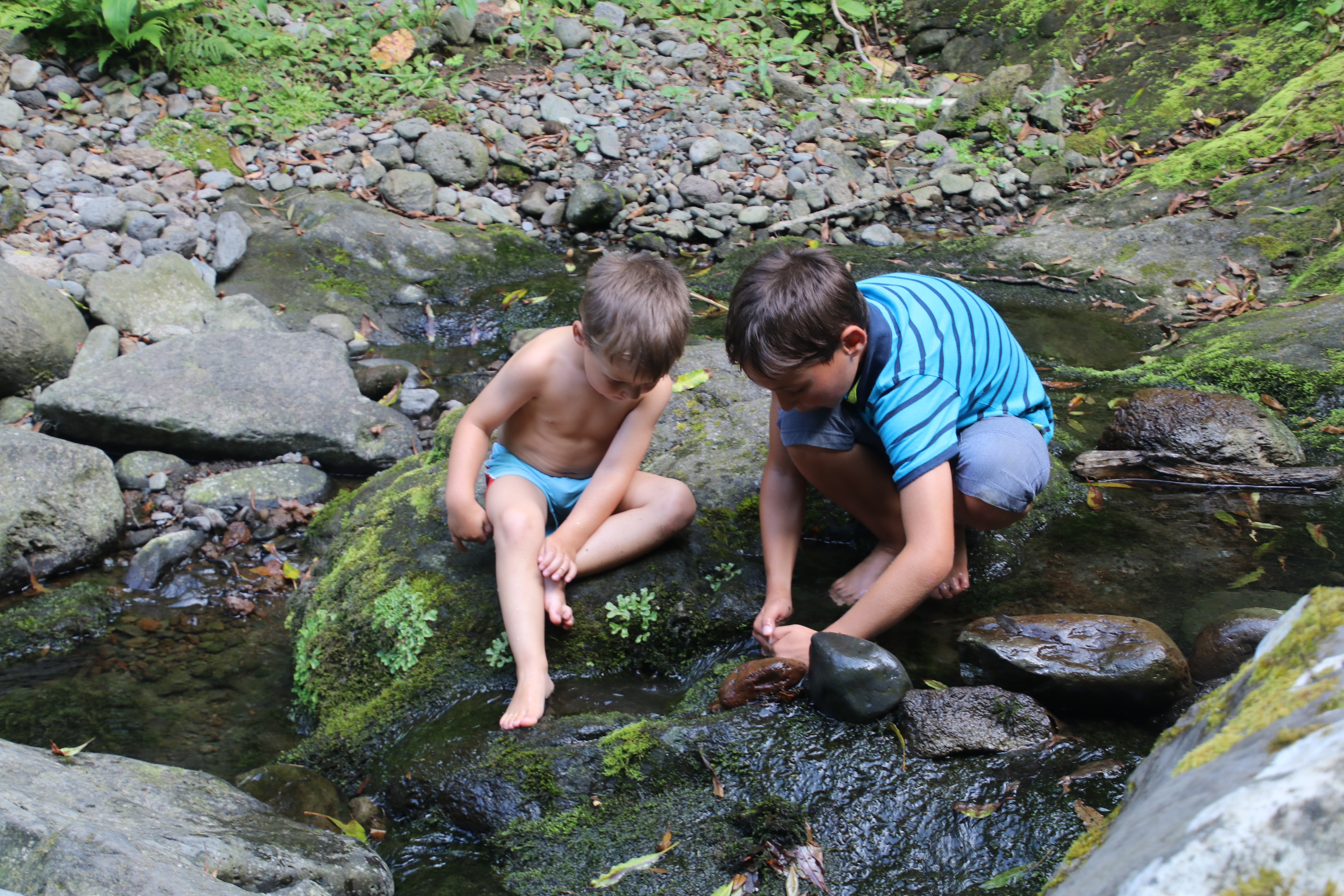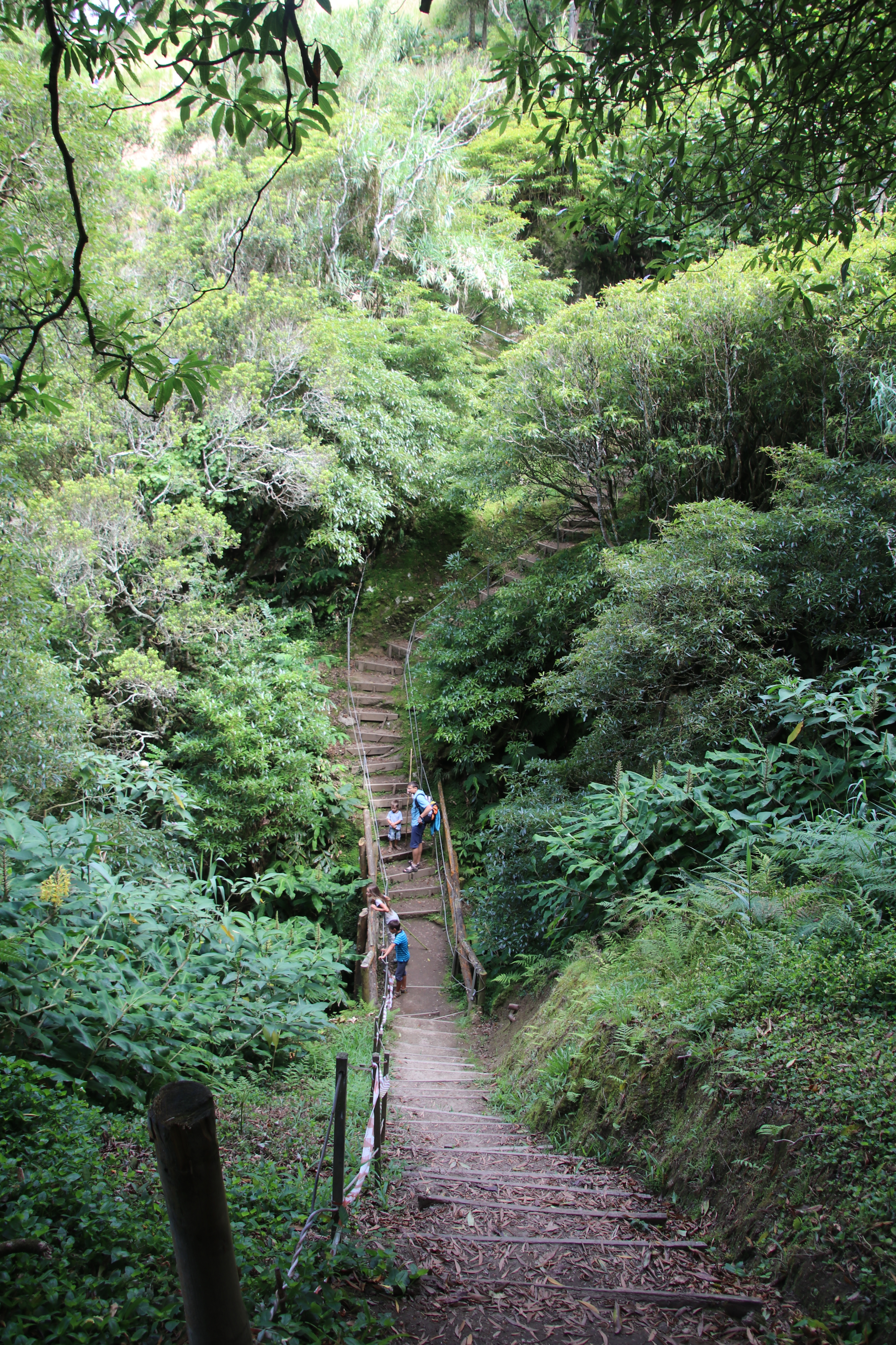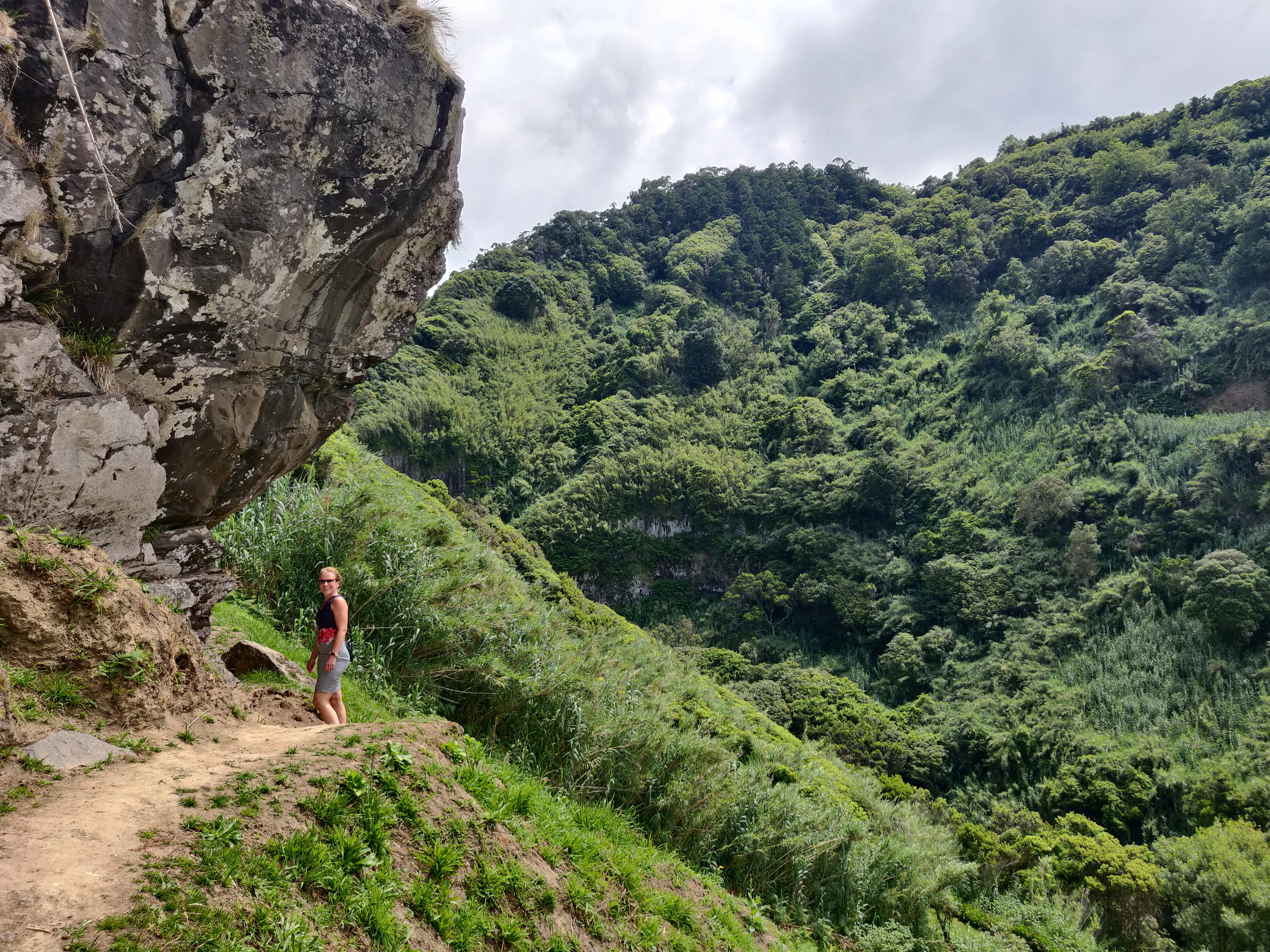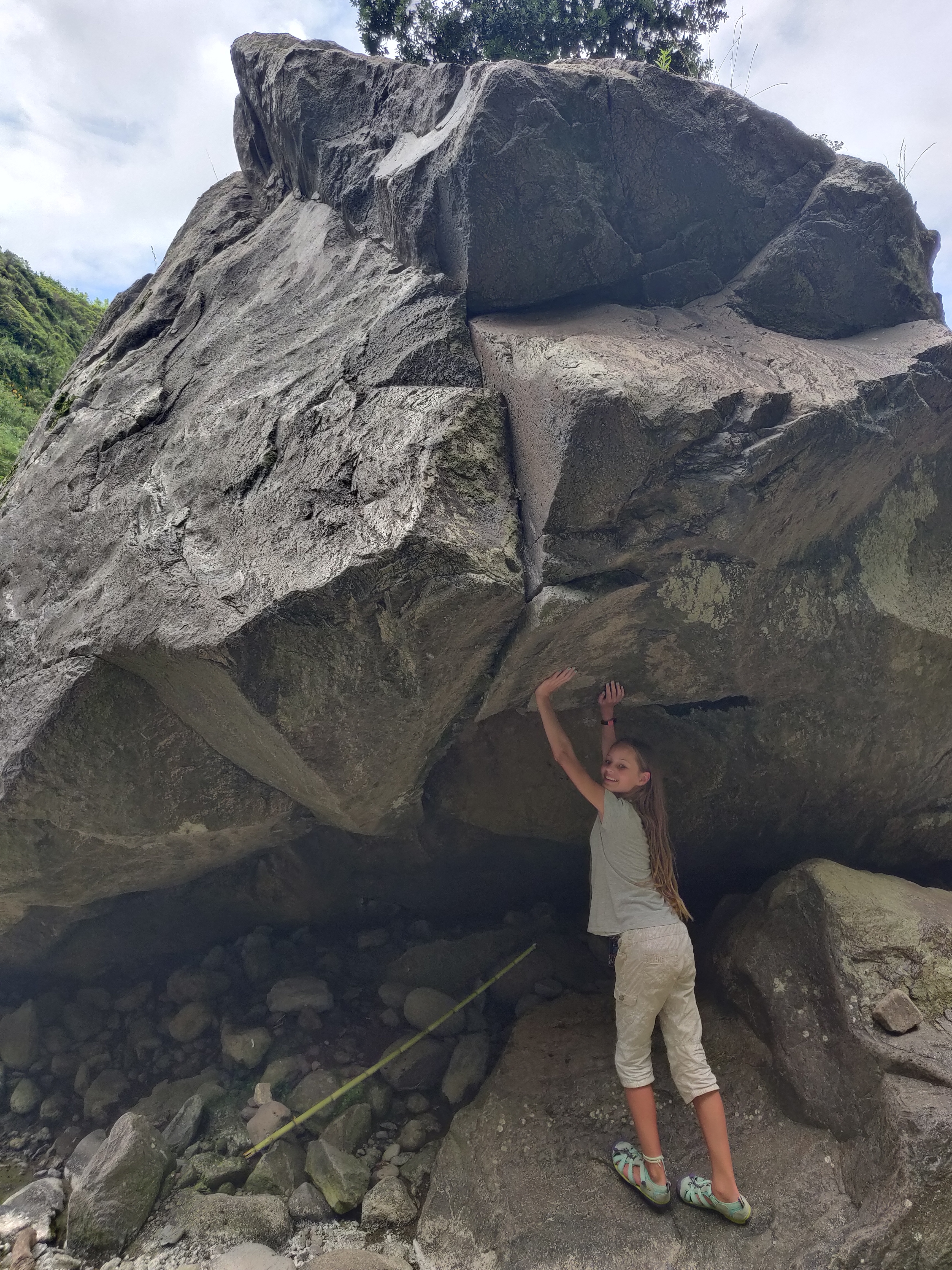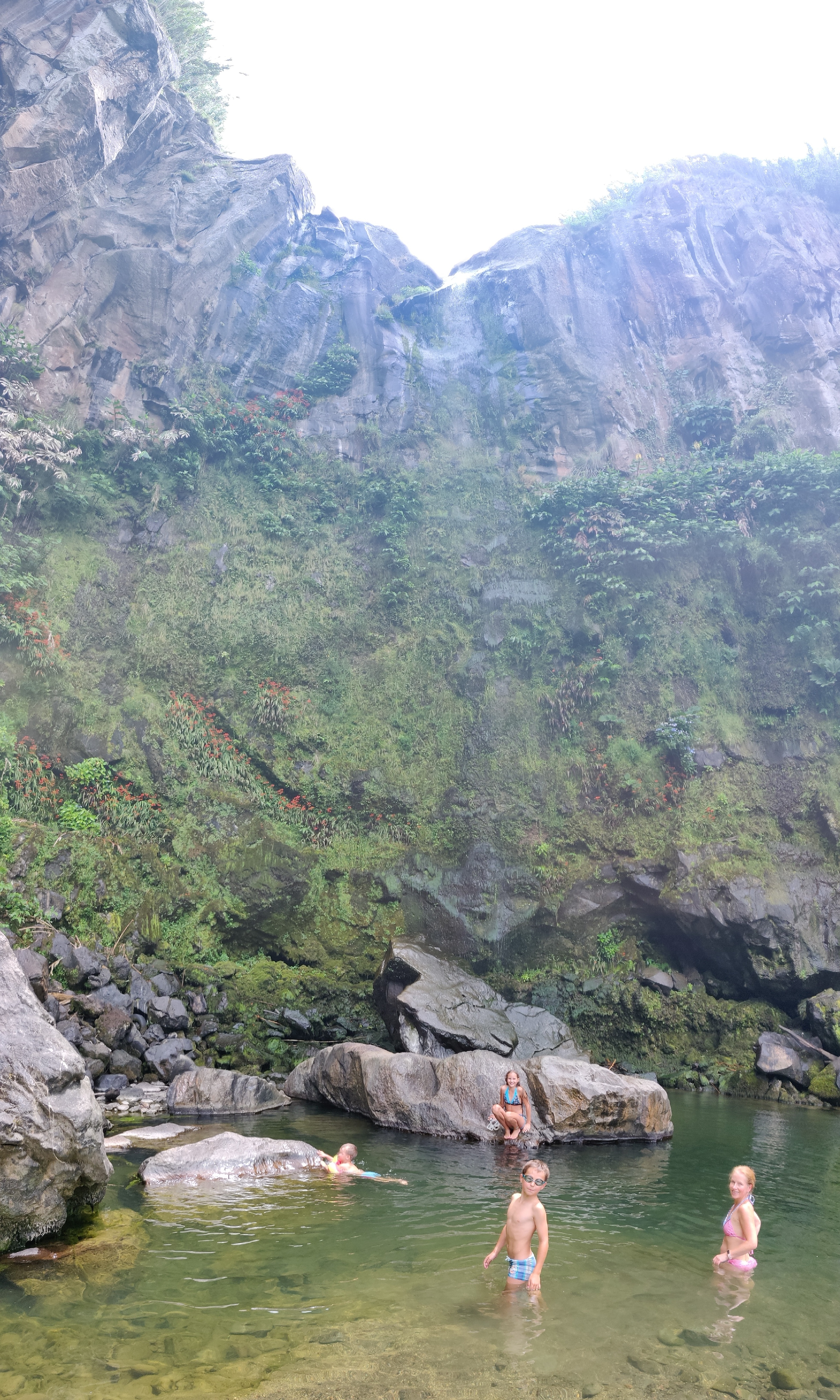 Gut gesättigt fahren wir bis an die Nordost-Küste, wo wir einen Wasserfall erwandern wollen. Die beiden Großen murren, weil sie schon wieder wandern sollen. Wir überreden beide, bis zum ersten Wasserfall durchzuhalten.