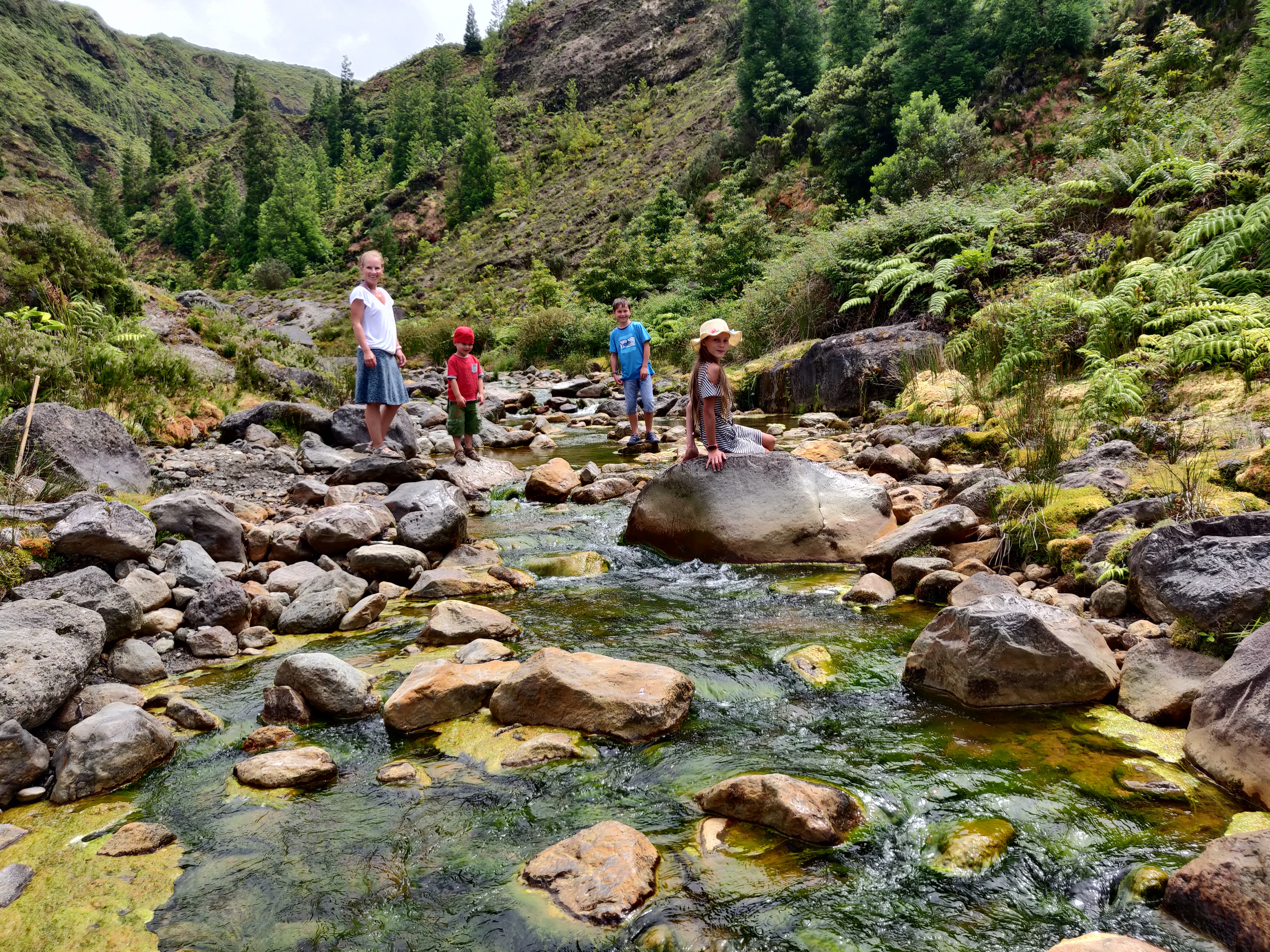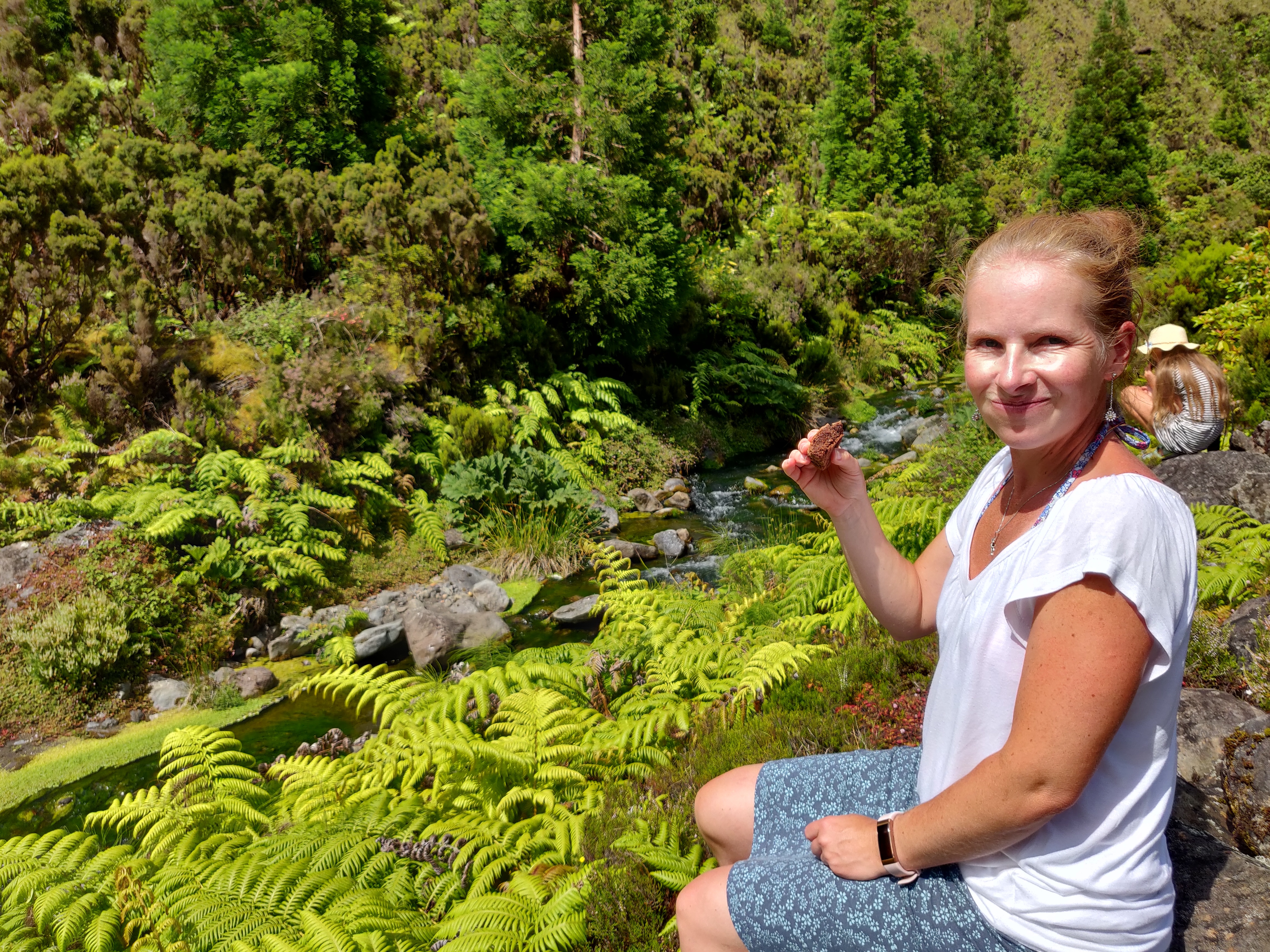 Am Fluss Ribeira Grande gibt es noch einen kleinen Imbiss. Unsere Äpfel haben wir vorhin am Strand noch um dort verkaufte, hausgemachte Brownies ergänzt.