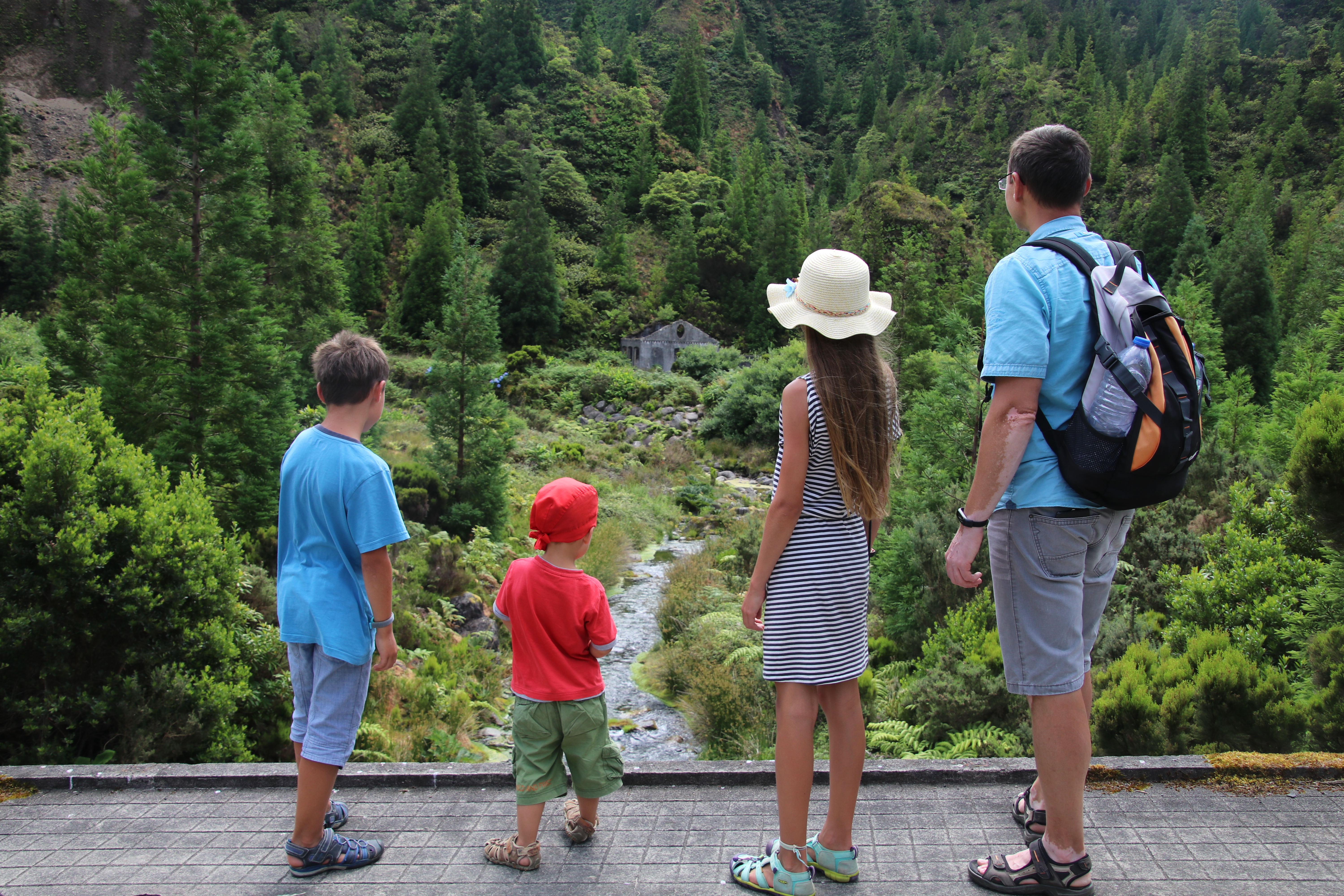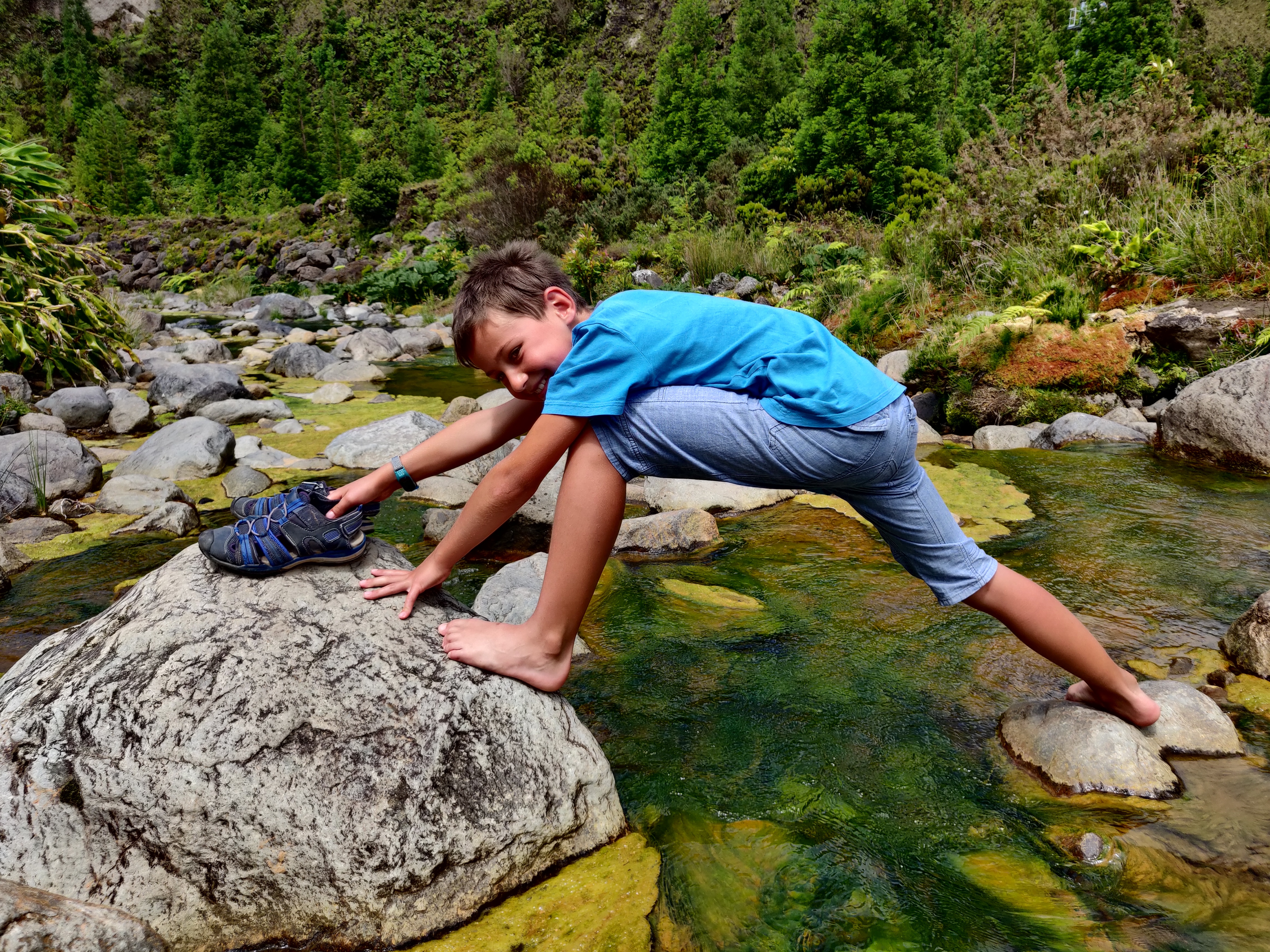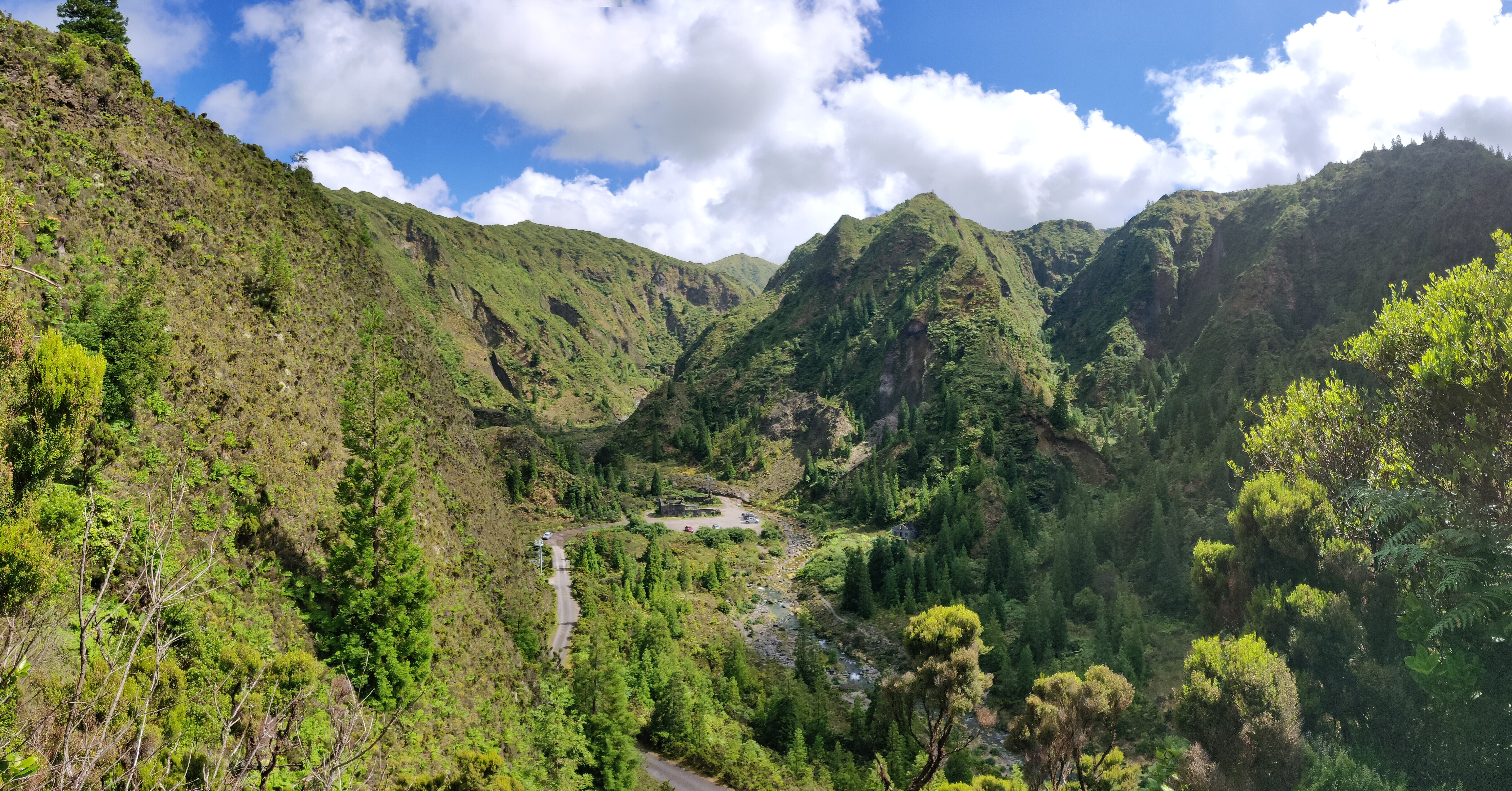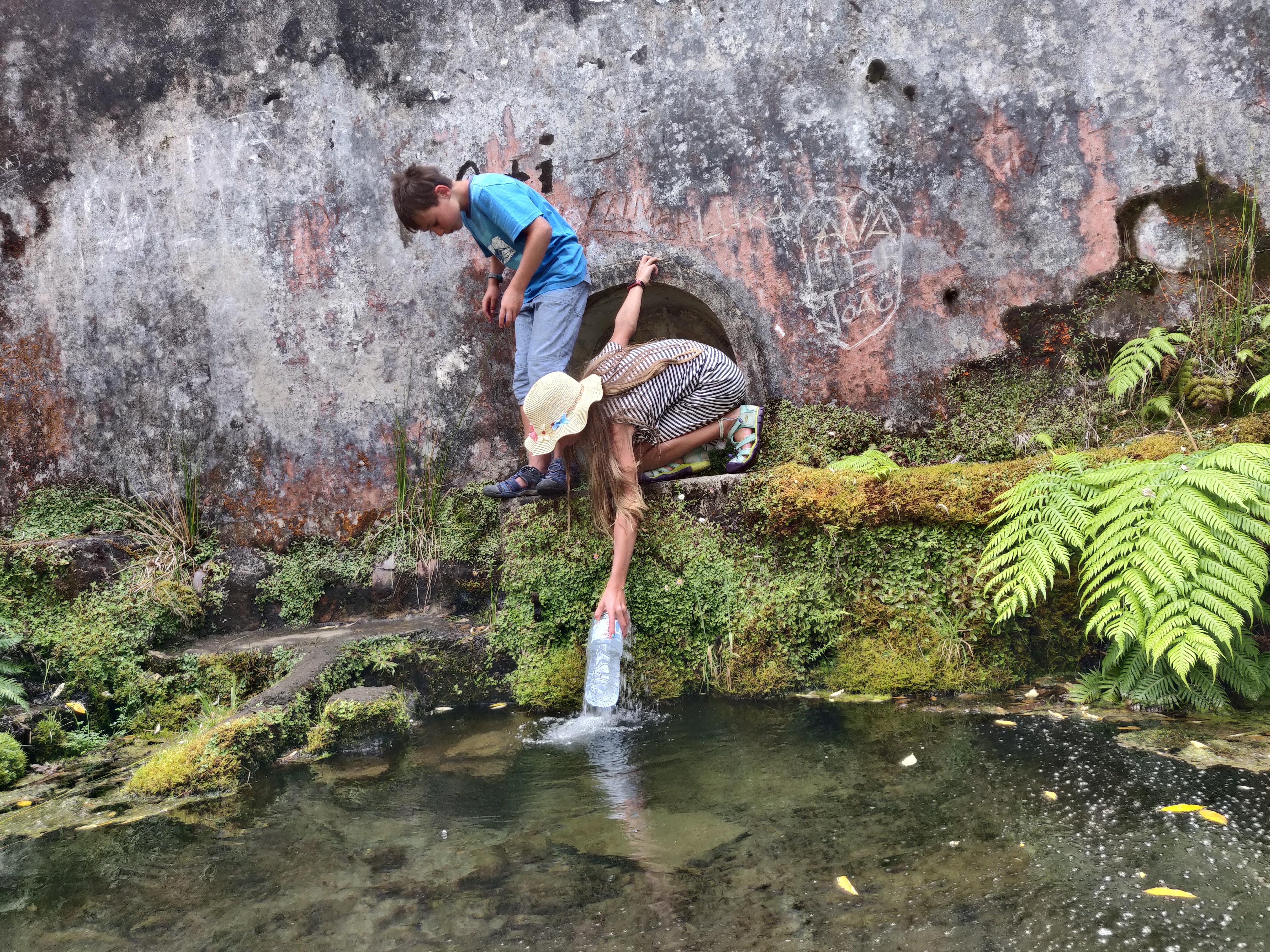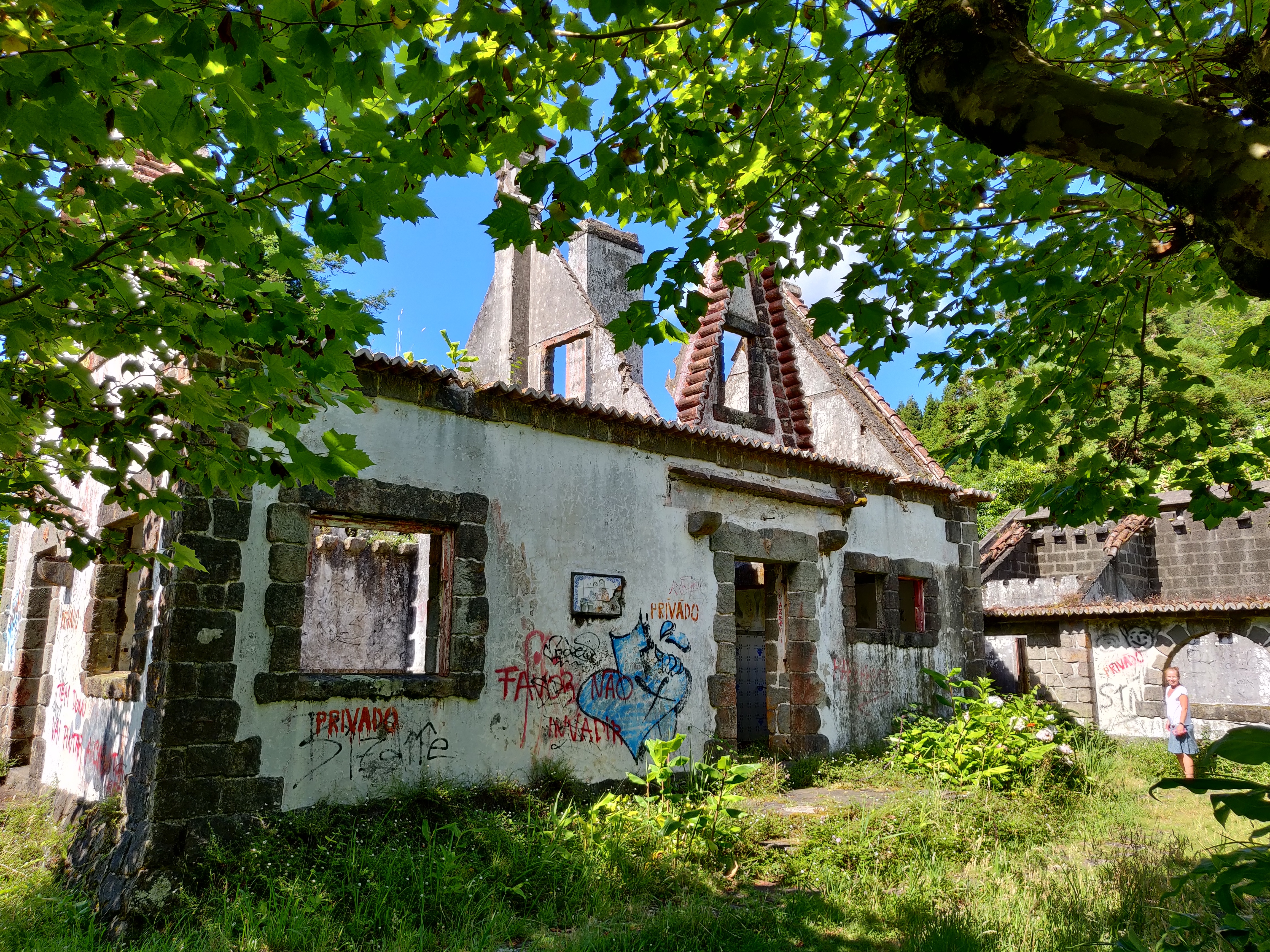 Eine kleine Wanderung haben wir aber für heute trotzdem noch eingeplant. Wir fahren eine kleine Serpentinenstraße in das Lombadas-Tal. Hier sprudelt natürliches Mineralwasser aus dem vulkanischen Felsen. Im Tal finden sich die Ruinen einer Fabrik, in der das Wasser fast 100 Jahre lang in Flaschen gefüllt wurde.