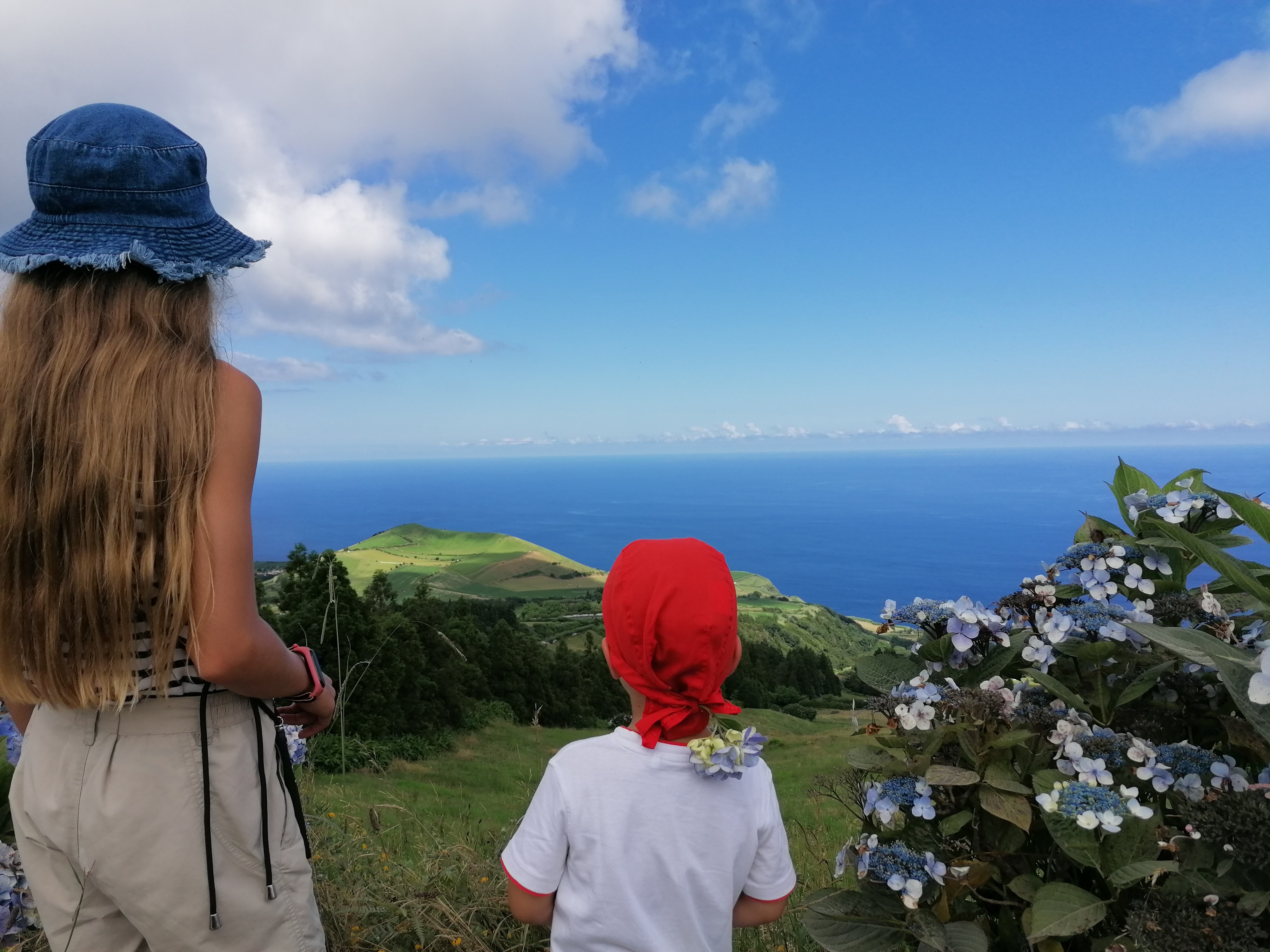 Da es an der Serpentinenstraße keinen Fußweg gibt, sammle ich Anke und die Kinder dort mit dem Auto ein. Wir haben uns ein kleines Restaurant in Sete Cidades ausgesucht, aber hier ist mittags leider alles hoffnungslos überfüllt. Zum Glück fällt Anke ein, dass sie in einem Reisebericht von einer sehr guten Pizzeria kurz außerhalb des Kraters gelesen hat - dort wollen wir unser Glück versuchen.