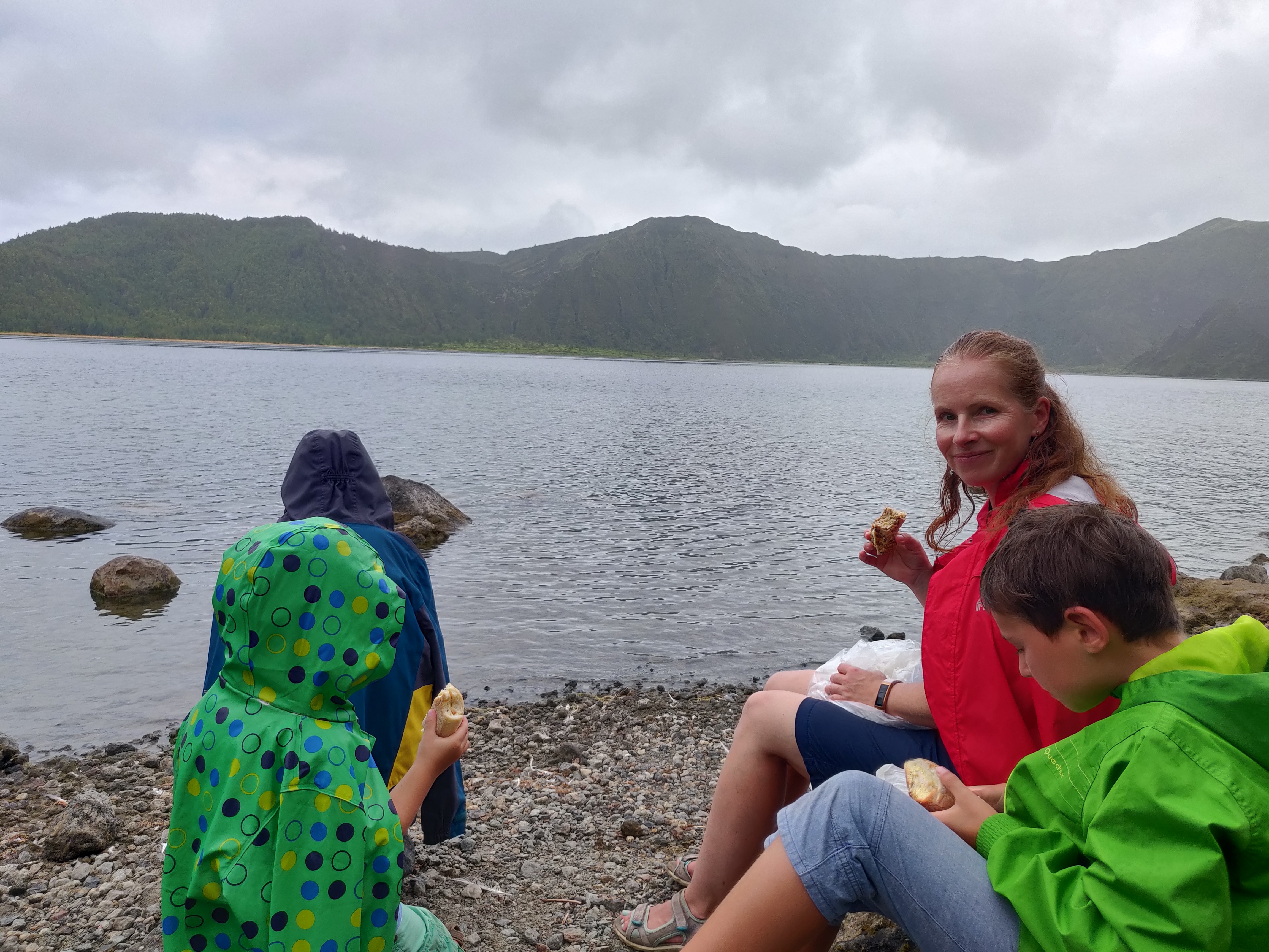 Unter einer dicken Wolkendecke scheinen noch ein paar Sonnenstrahlen hindurch, die bald verschwinden werden. Für heute ist reichlich Regen angesagt. Am liebsten würde ich liegen bleiben, aber zur Lockerung haben wir heute eine Wanderung zum Lagoa do Fogo geplant.