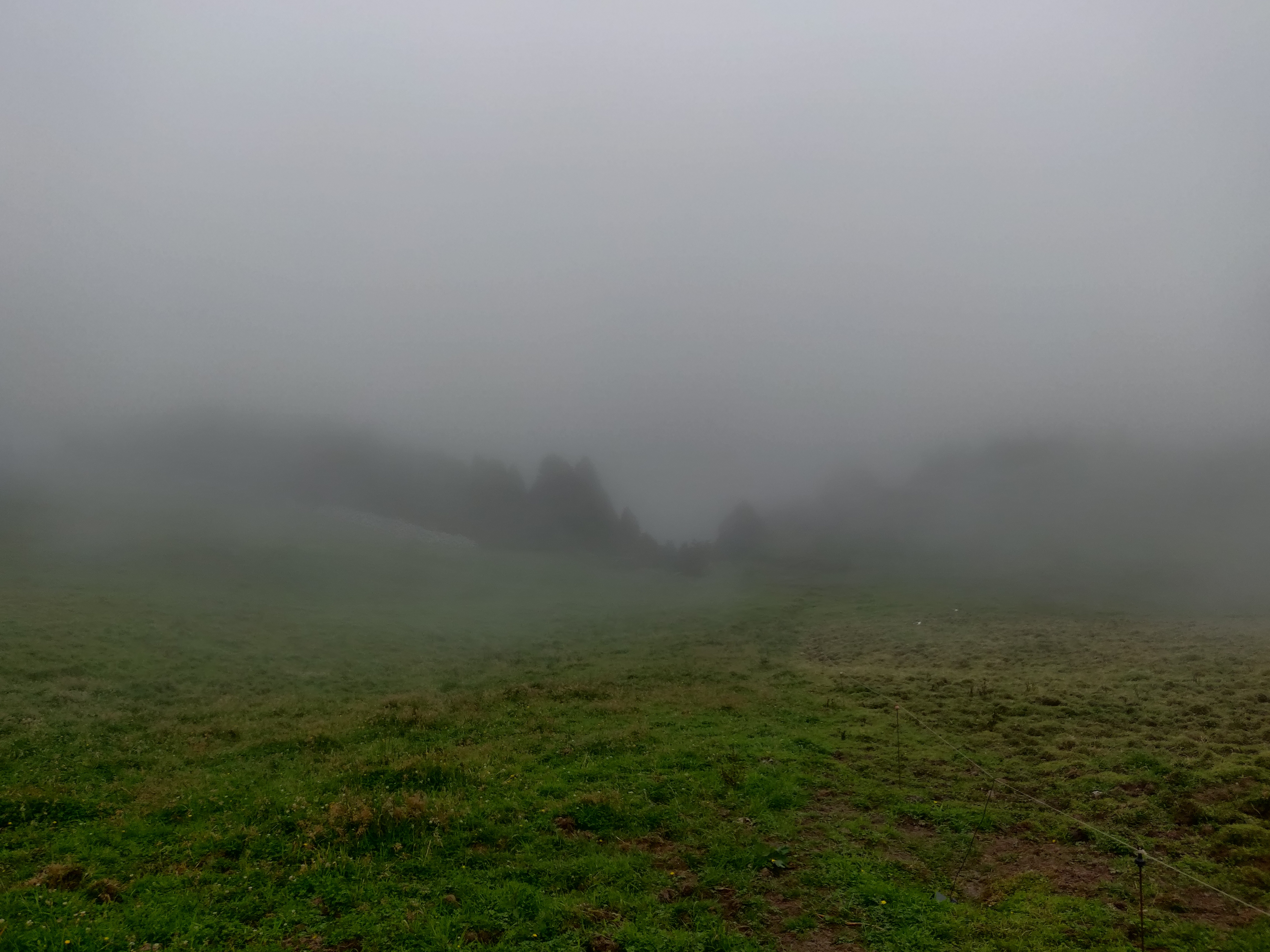 Auf der Strecke liegt ein Aussichtspunkt, von dem aus man den ganzen See sehen kann. Zumindest in der Theorie, als wir vorbei fahren, ist die gesamte Gegend in dicke Wolken gehüllt. Wir fahren gleich bis zum Start der Wanderung.