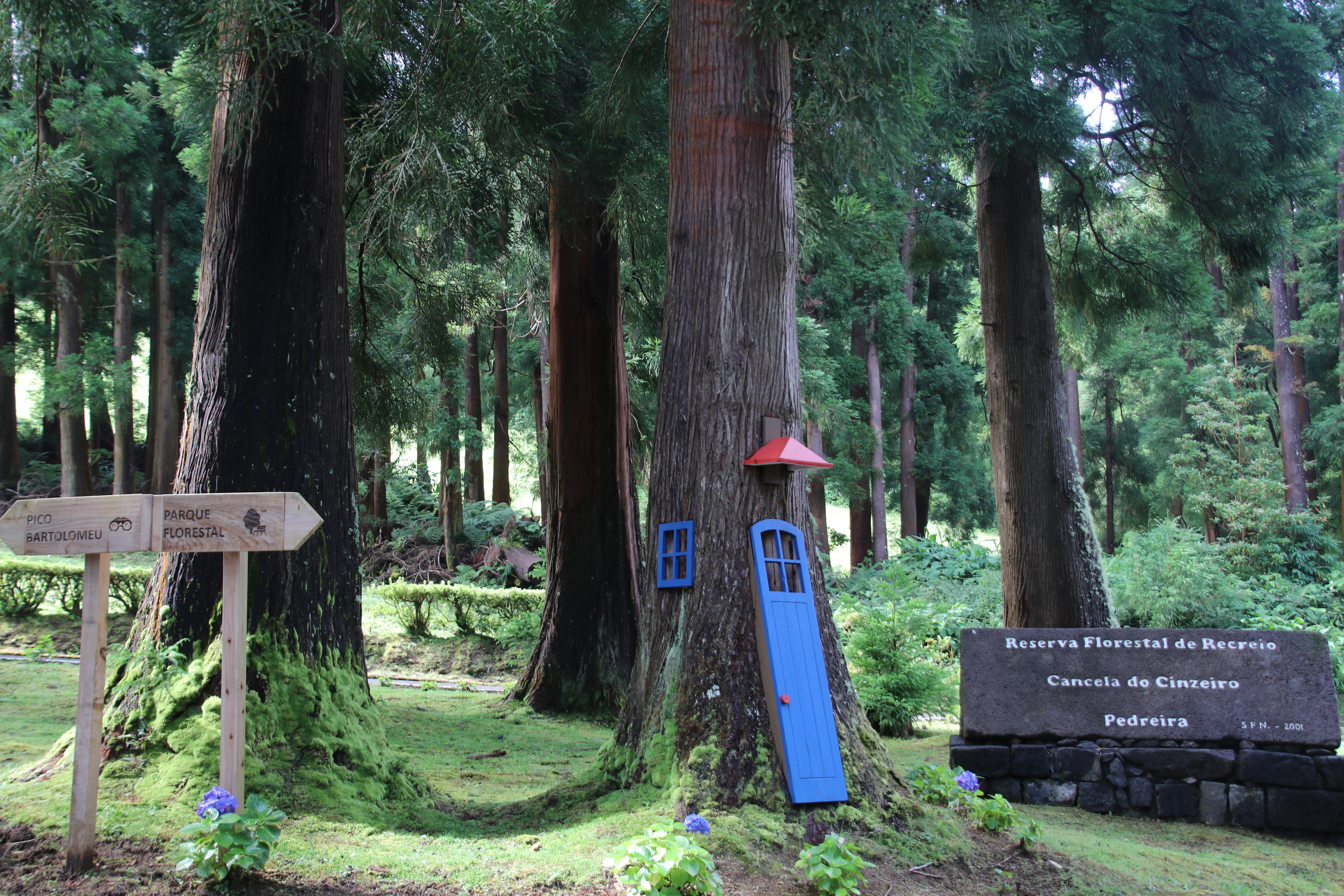 Nach einem erfolglosen Abstecher zum nahe gelegenen - aber komplett bewölkten - Pico Bartholomeu halten wir an der Station des Naturparks. Hier schlendern wir zunächst durch eine großzügige Grünanlage mit Spielplatz. Aber auch hier holen uns die Wolken ein.