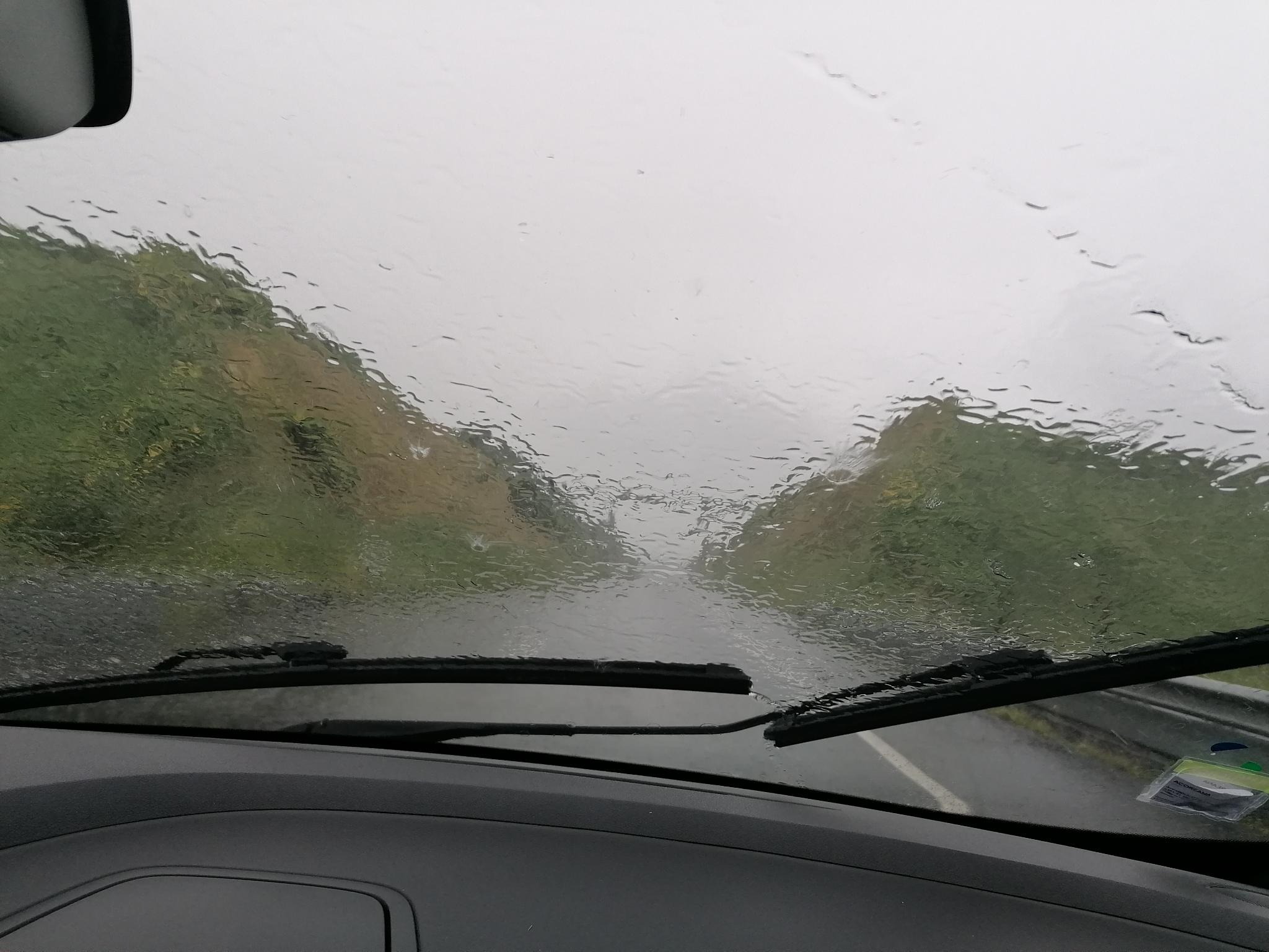 Zum Baden wollen wir in ein Naturbad an der Küste, aber auch hier regnet es noch ganz ordentlich.