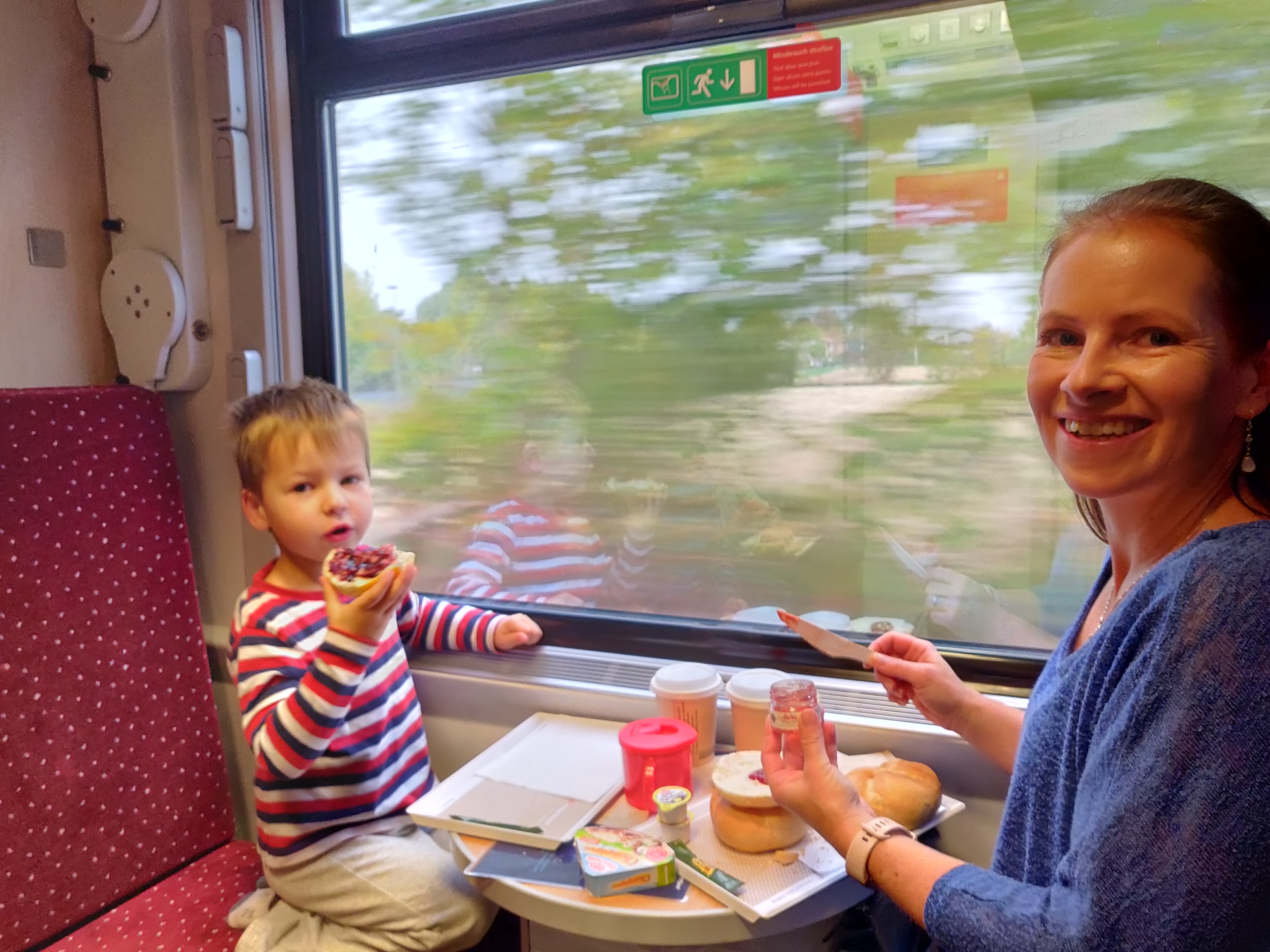 Der Nachtzug hat uns in den Schlaf und über Nacht bis nach Venedig geschaukelt. Eine Stunde vor Ankunft bekommen wir unser Frühstück serviert.