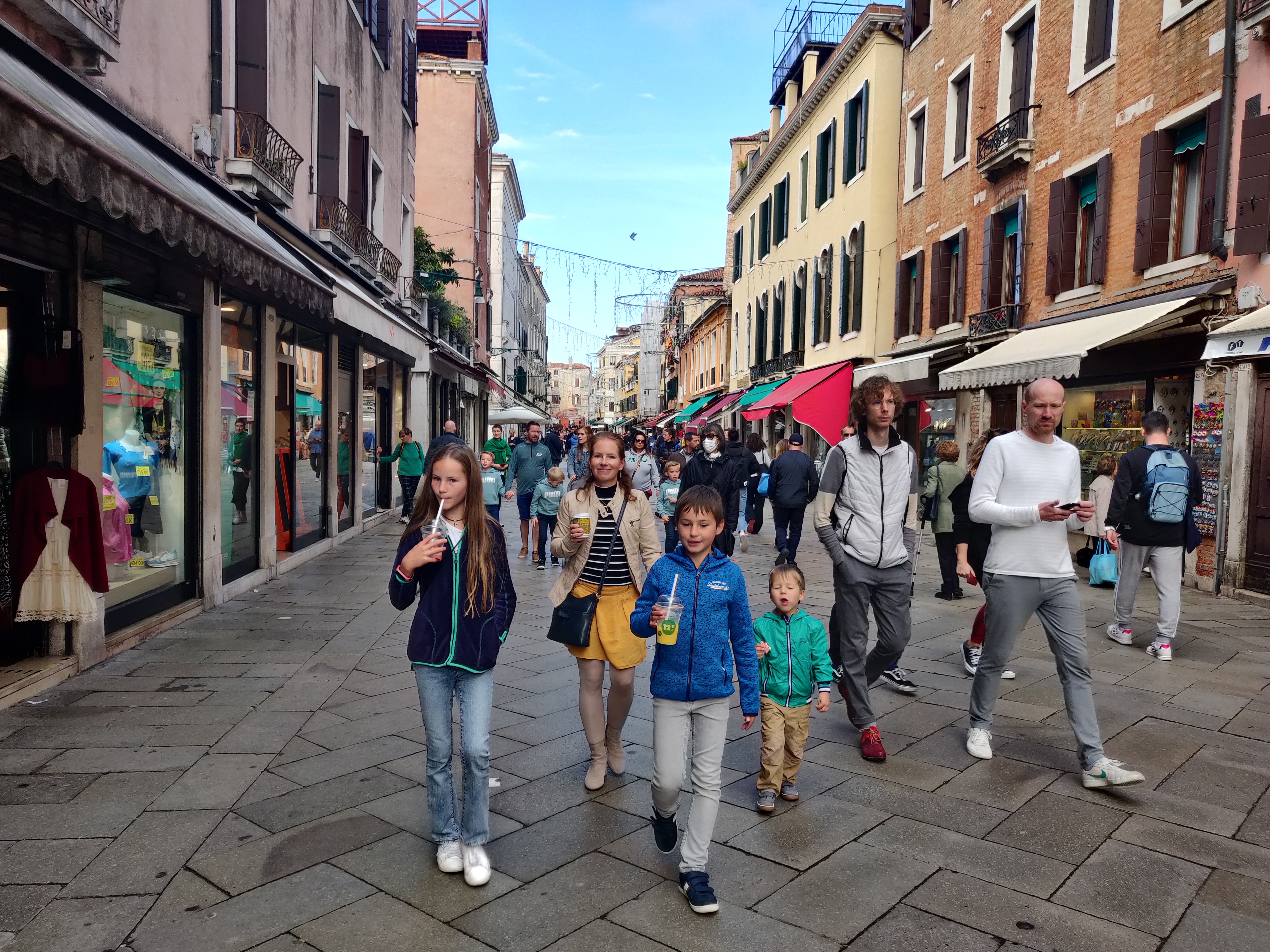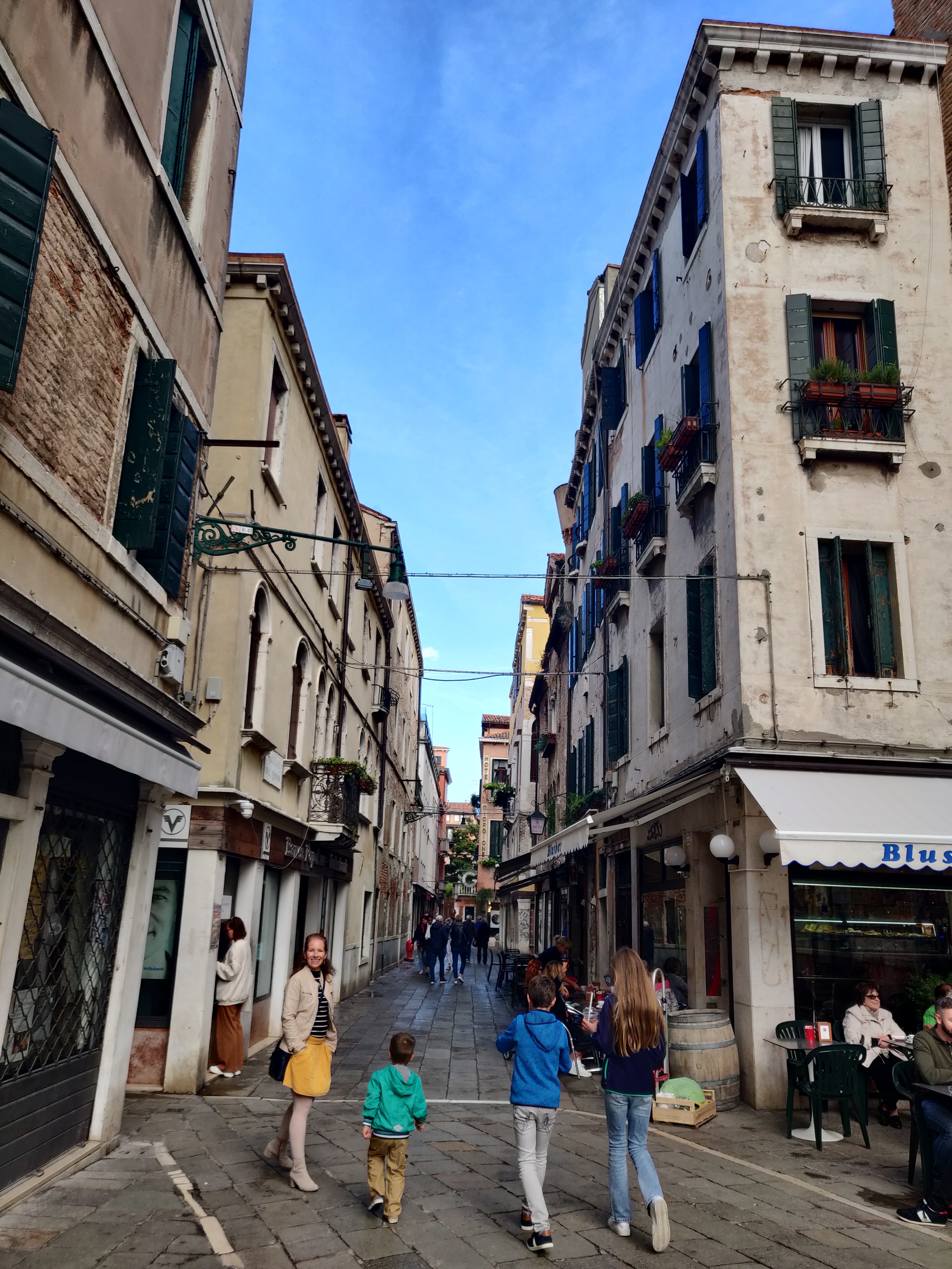 Das Essen war super lecker und die Portionen angenehm klein (Mattis hat noch ein zweites Mal Gnocchi nachbestellt). Wir vertreten uns noch ein wenig die Beine und setzen unsere Tour durch Venedig fort.