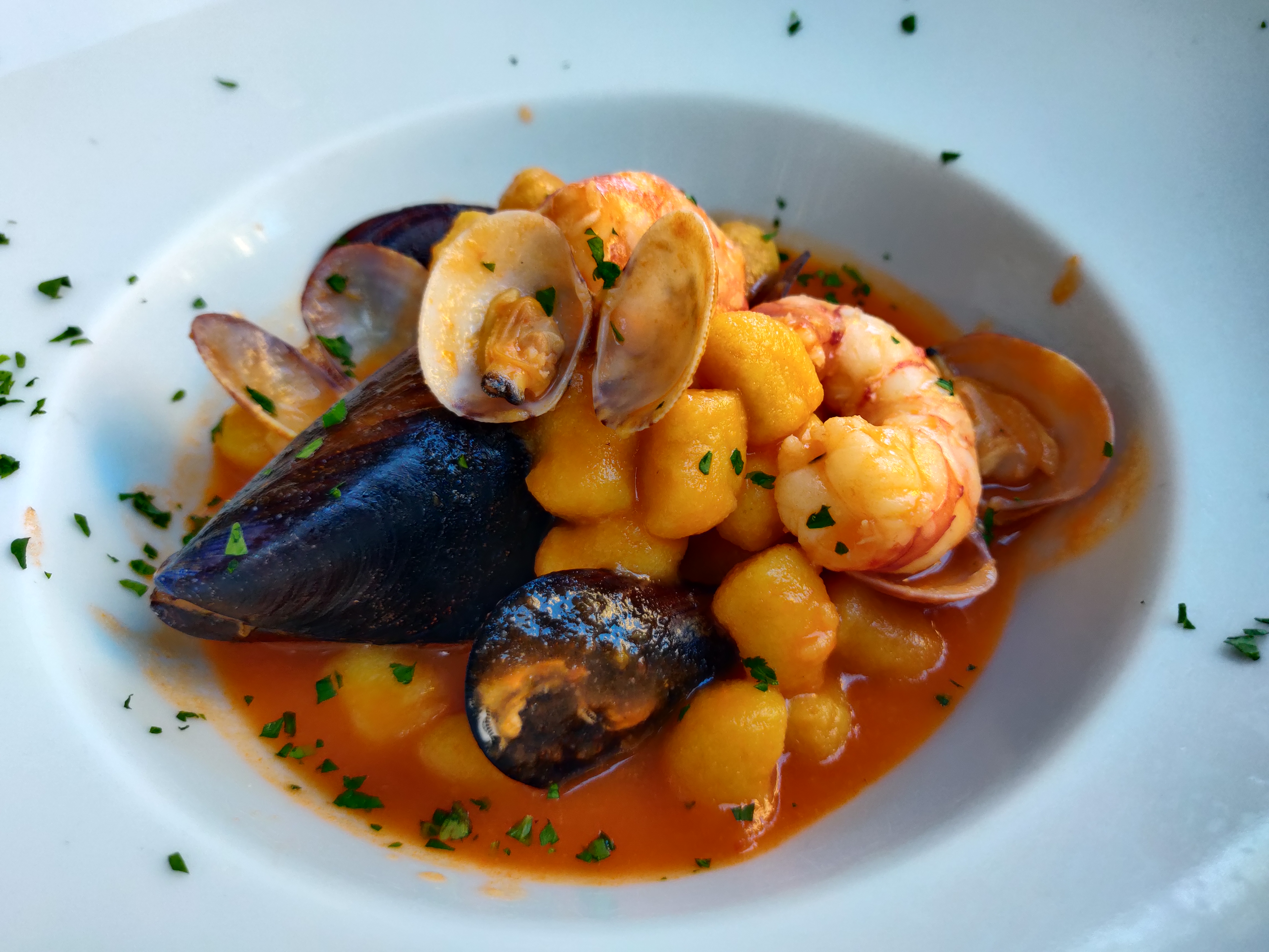 Wir erreichen die Gaststätte “Osteria da Pampo”, welche sich Anke für heute herausgesucht hat. Sie hat ausgezeichnete Bewertungen, alle Tische sind reserviert. Zum Glück haben auch wir eine Reservierung für heute.
