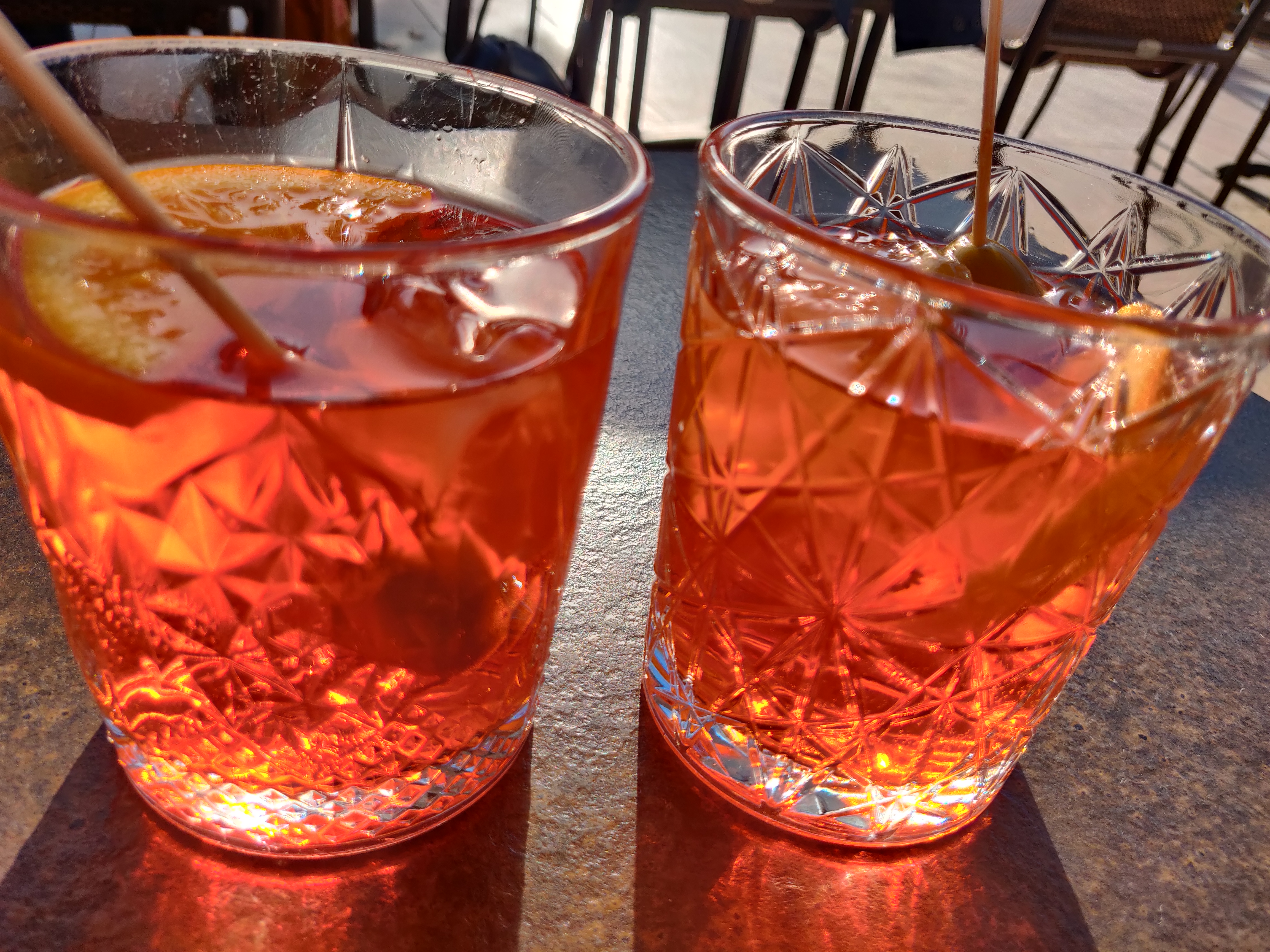 Nachdem wir uns an Kanälen mit bunten Häustern und tollen Villen sattgesehen haben, geht es mit dem Wasserbus zurück nach Lido. Dort gibt es Eis für die Kinder und gespritzten Aperol für uns.