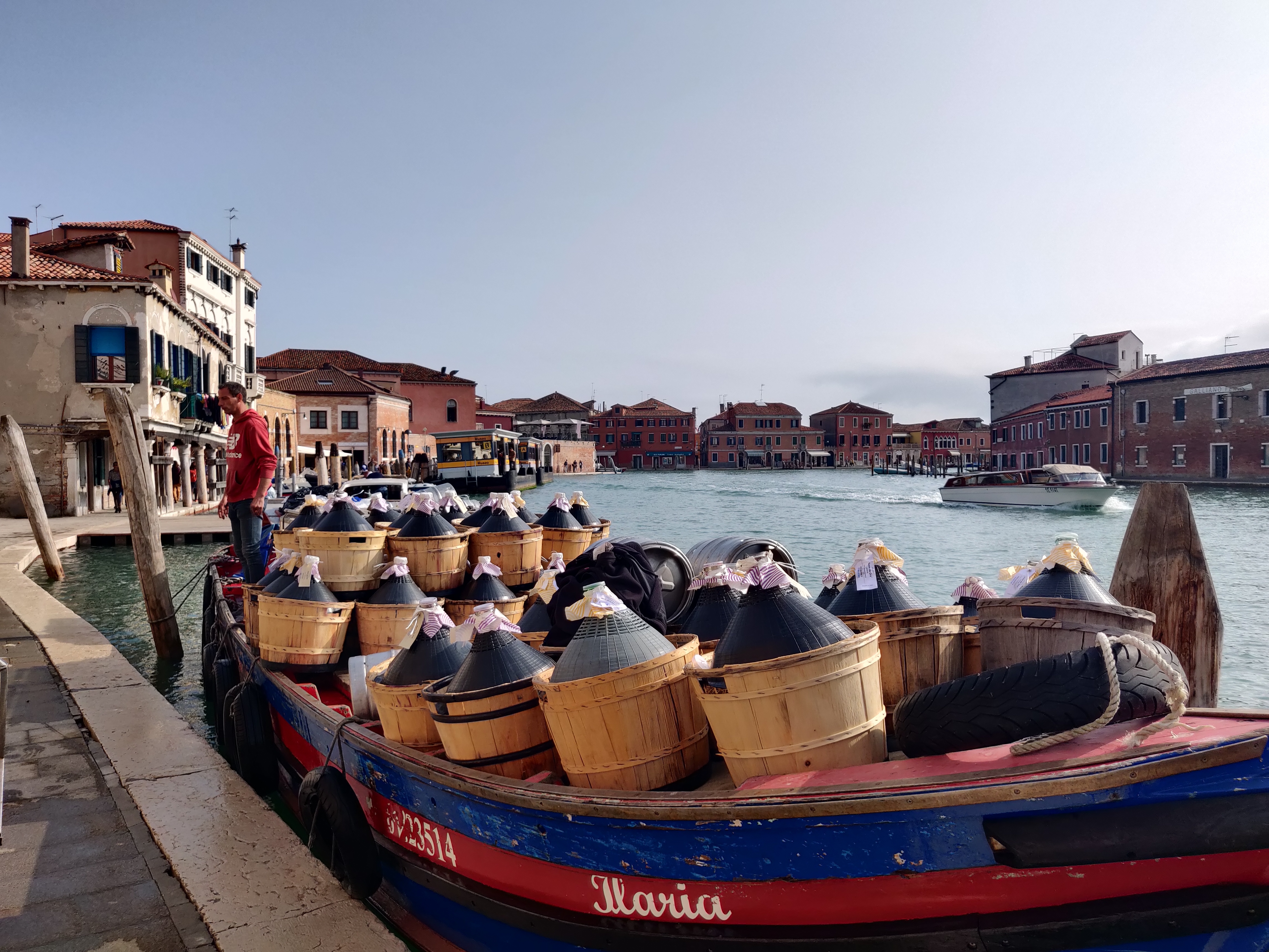 Heute geht es zum Insel-Hopping. Dazu müssen wir etwas größere Strecken mit den Wasserbussen zurücklegen und zwischendurch umsteigen. Wir fahren hinüber nach Venedig und von dort aus zur Insel Murano.