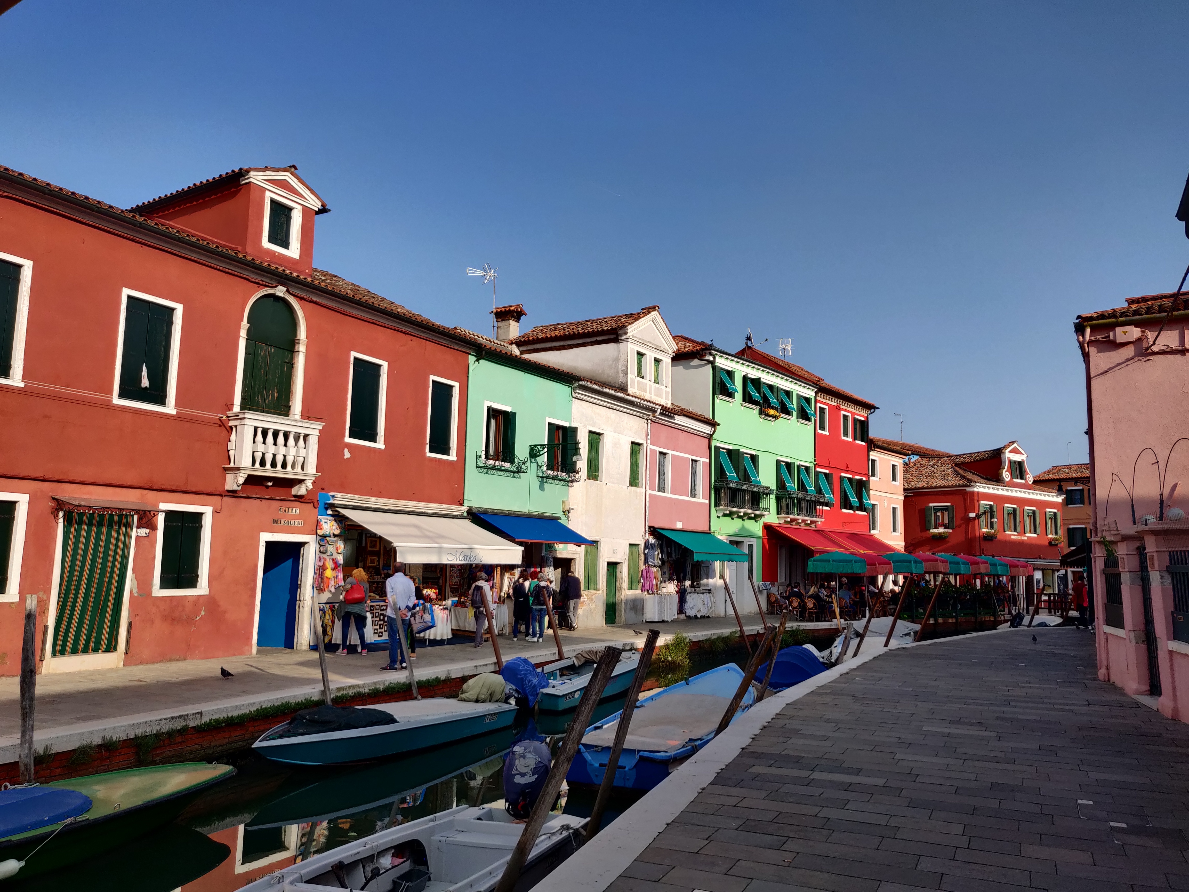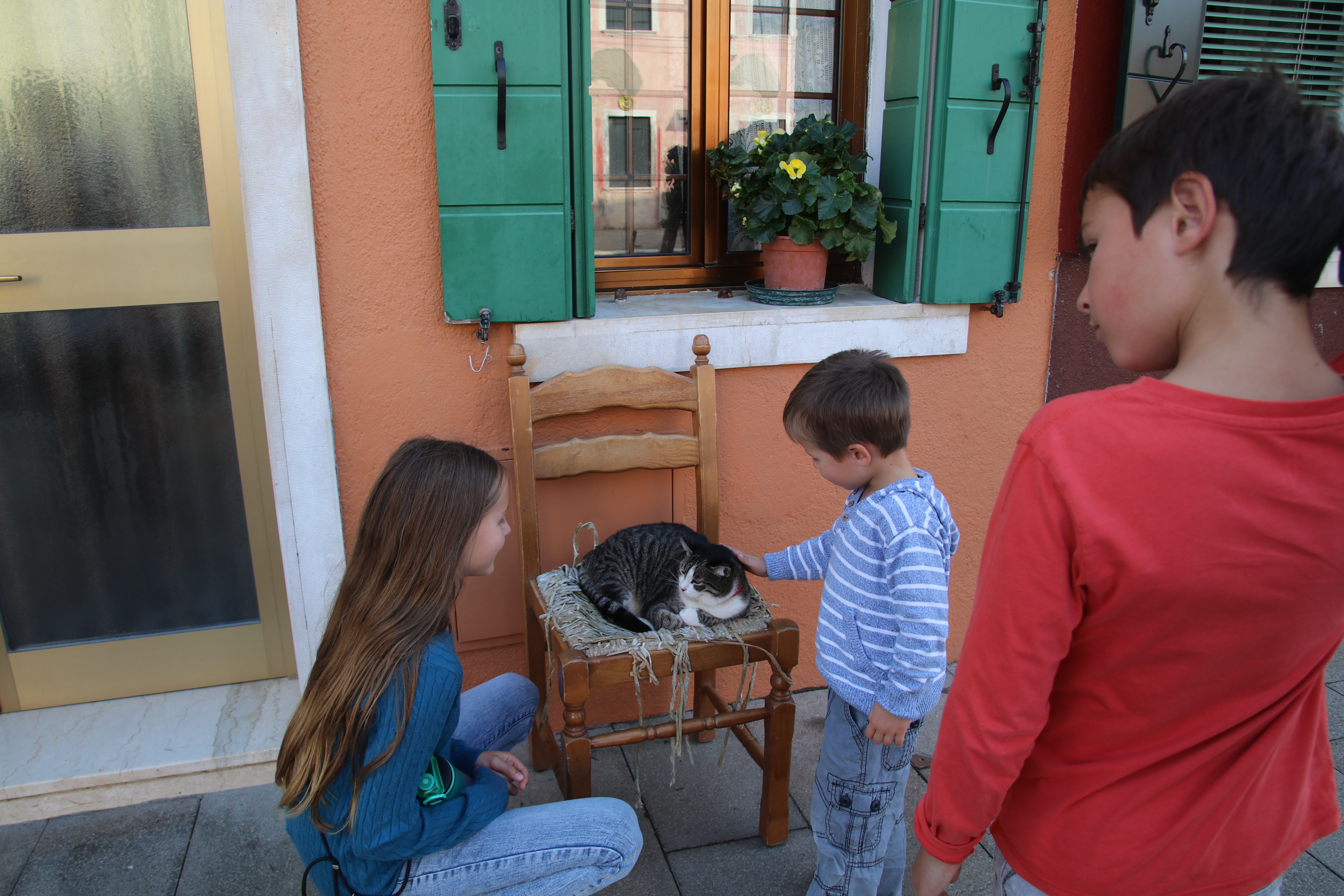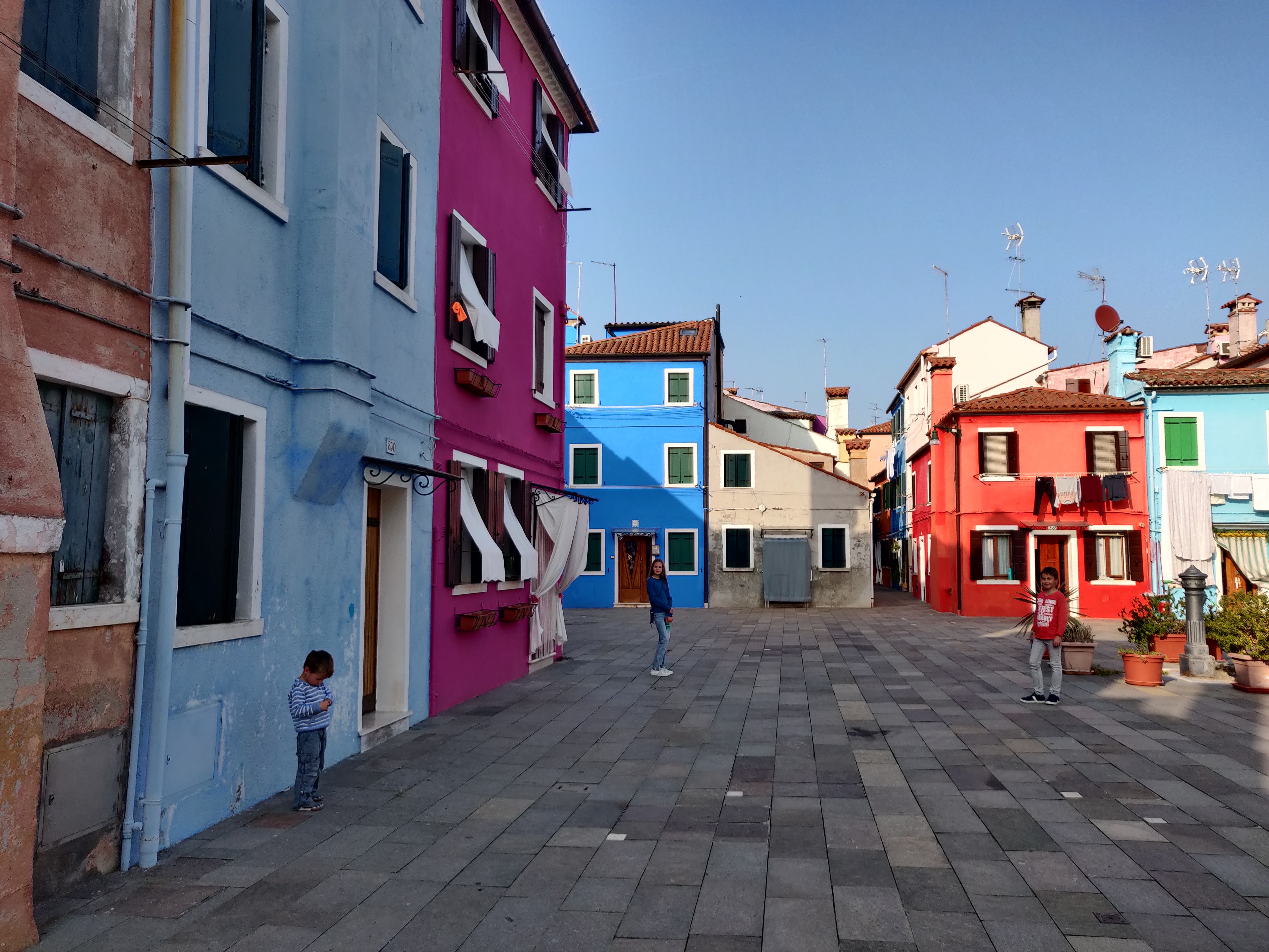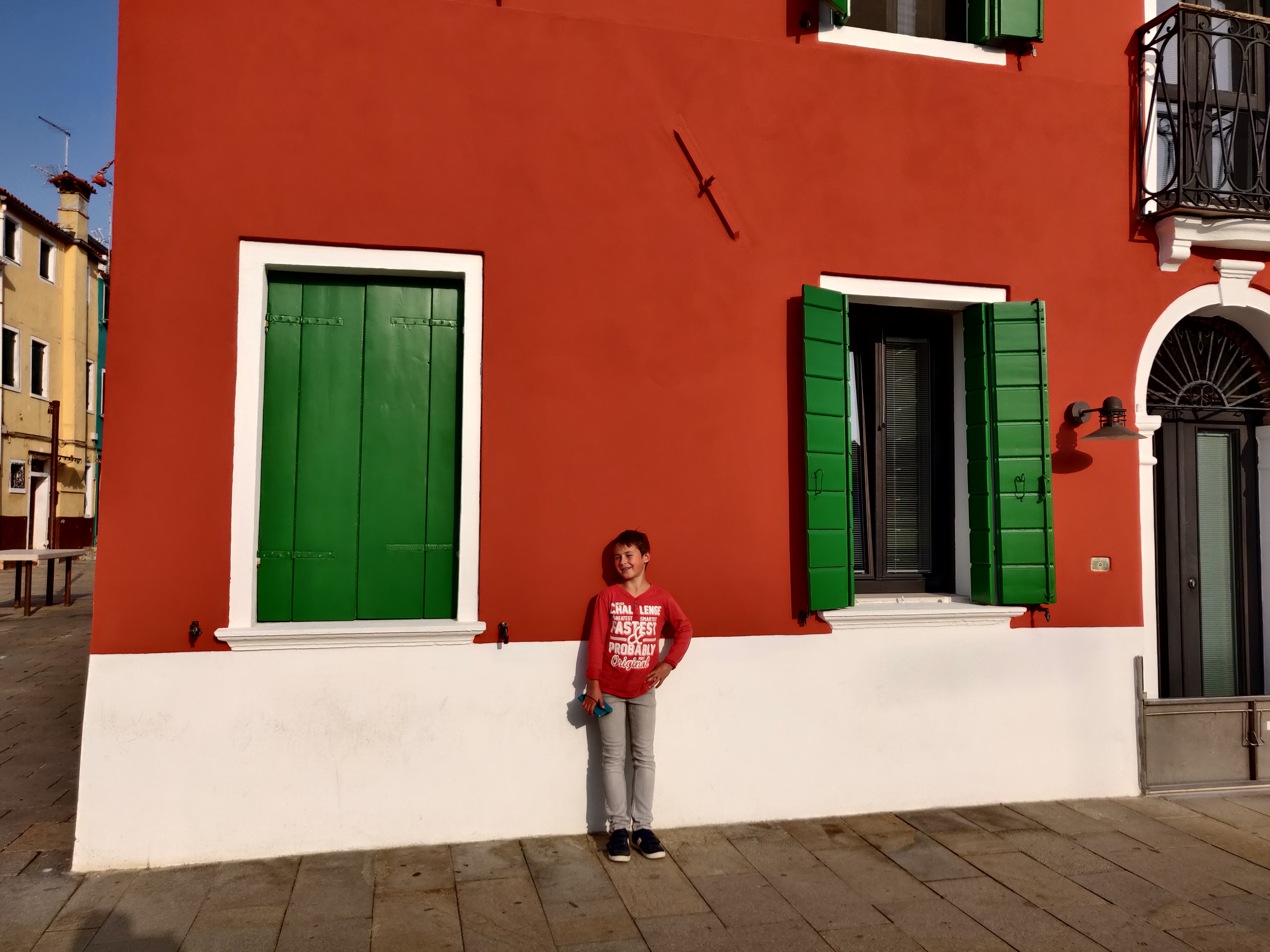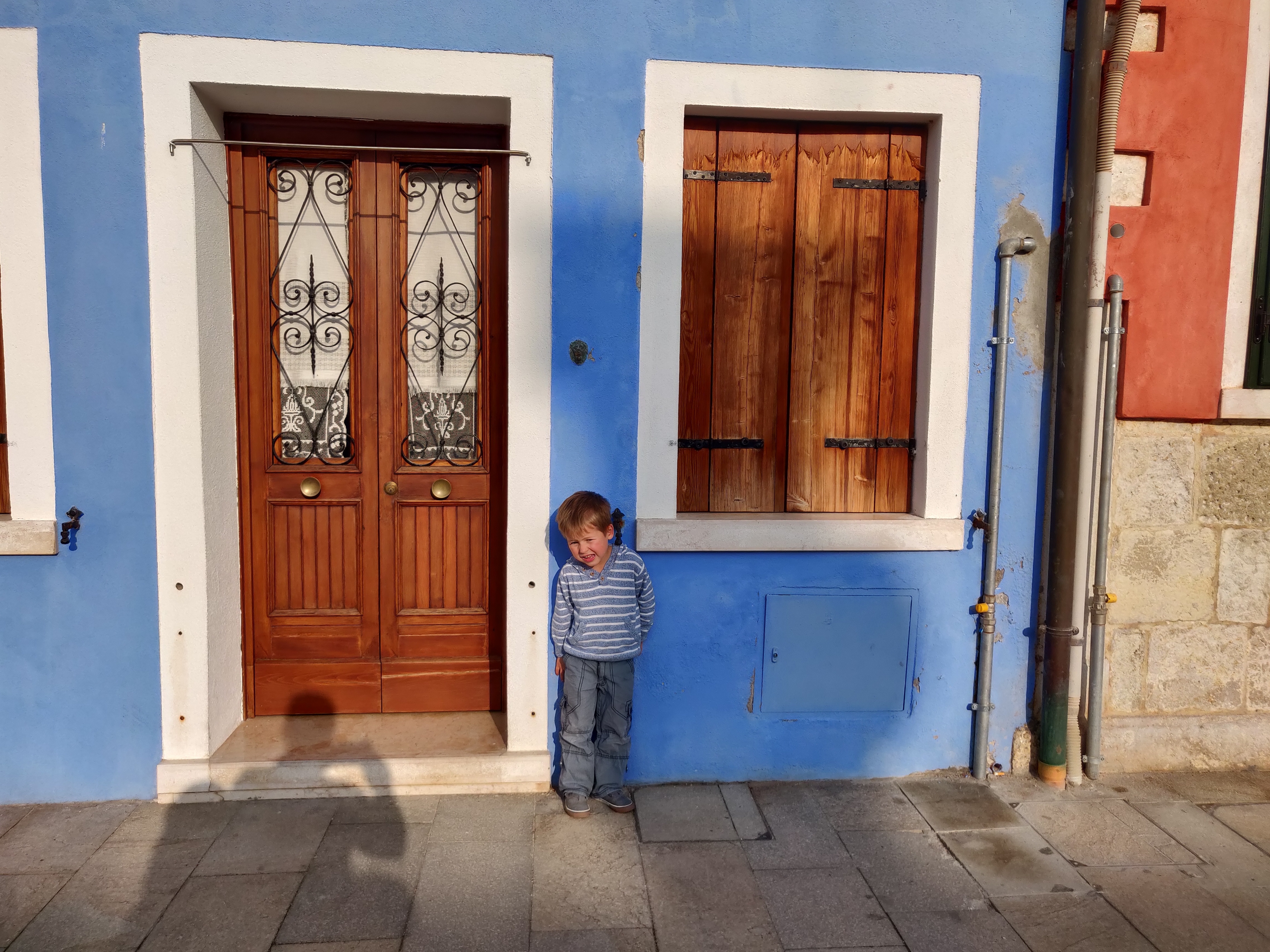 Von Murano geht es mit dem Wasserbus in Richtung Burano. Die Insel klingt zwar fast gleich, ist aber ein ganzen Stück entfernt und der Bus fährt nur jede Stunde. An der Haltestelle gibt es eine endlose Schlange von Wartenden. Als einer der Angestellten den kleinen Mattis sieht, bekommen wir Baby-Bonus und dürfen ans vordere Ende der Schlange.