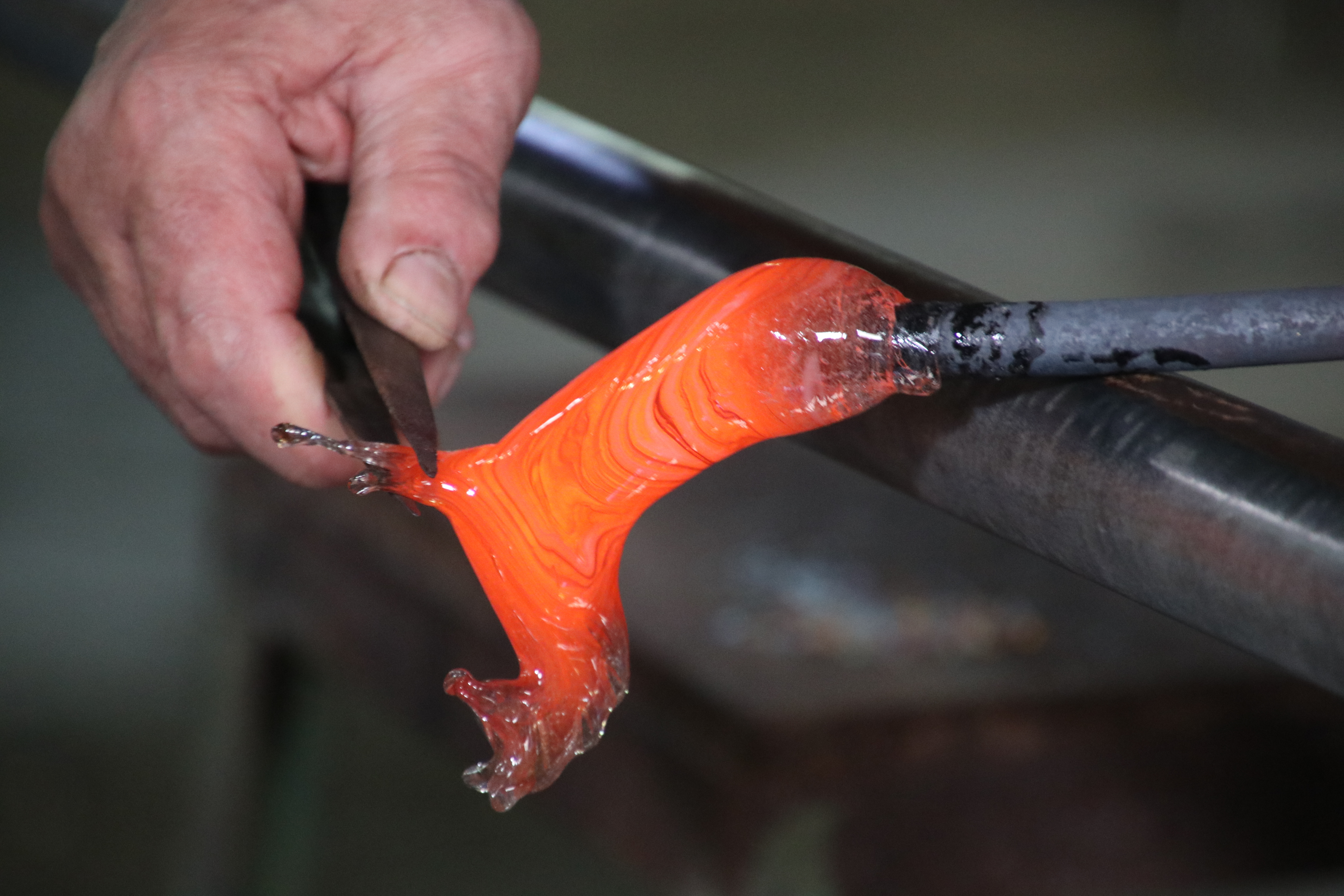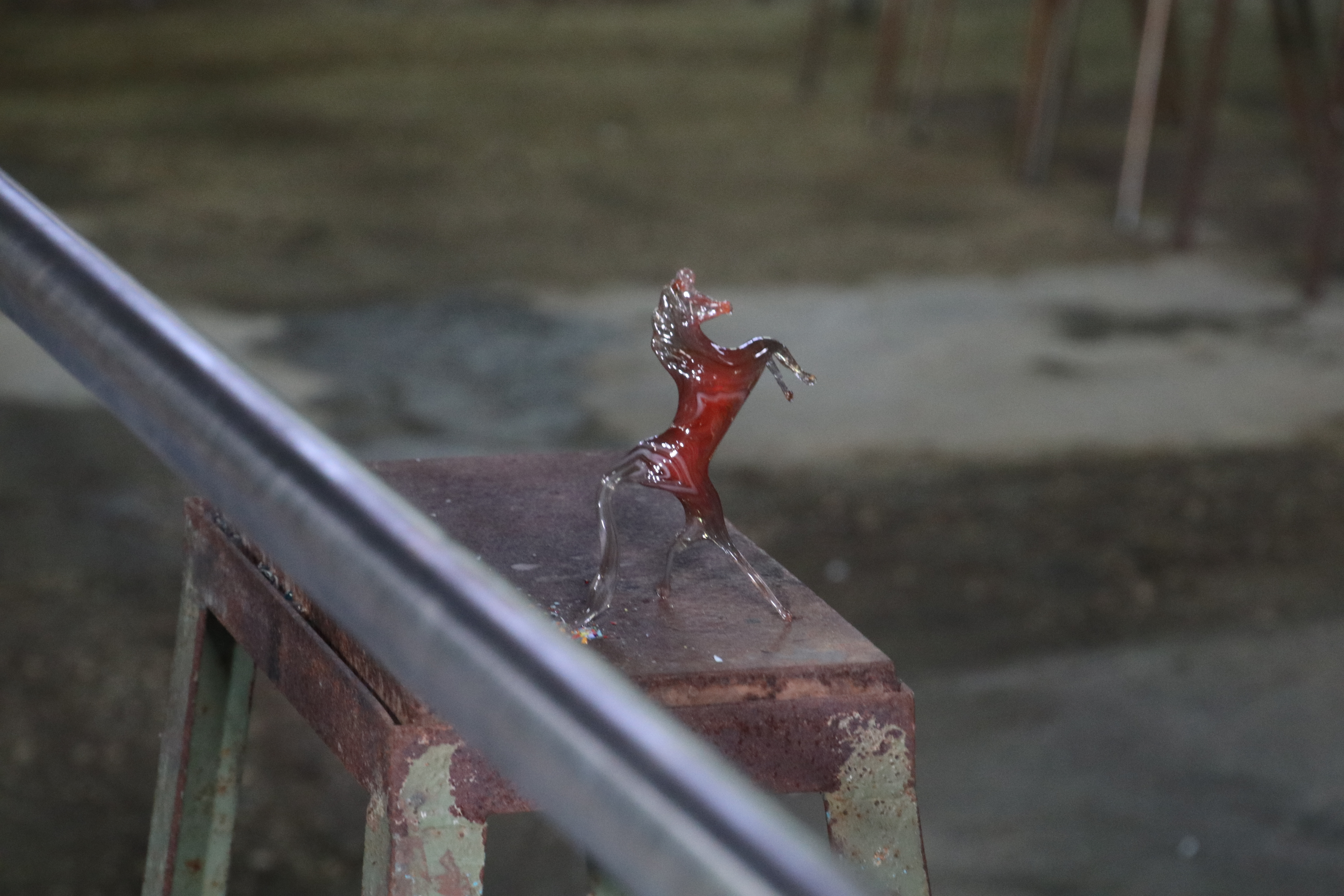 Der Glasbläsermeister benötigt nicht einmal eine halbe Minute, um aus der glühenden Masse ein Pferd zu zaubern, welches man für nur 15 Euro erwerben kann.