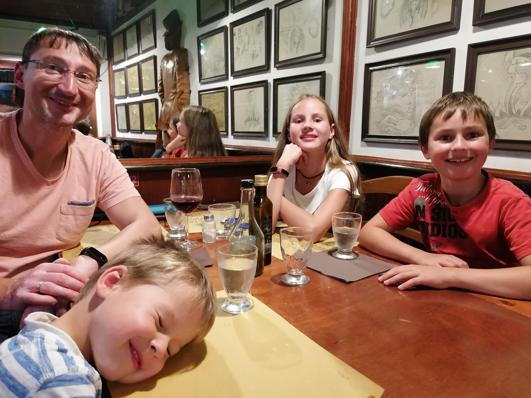 Wir suchen uns ein gemütlich aussehendes Restaurant nahe dem Bahnhof. Der Kellner ist nur begrenzt begeistert, da wir viel Zeit aber nur wenig Hunger haben.