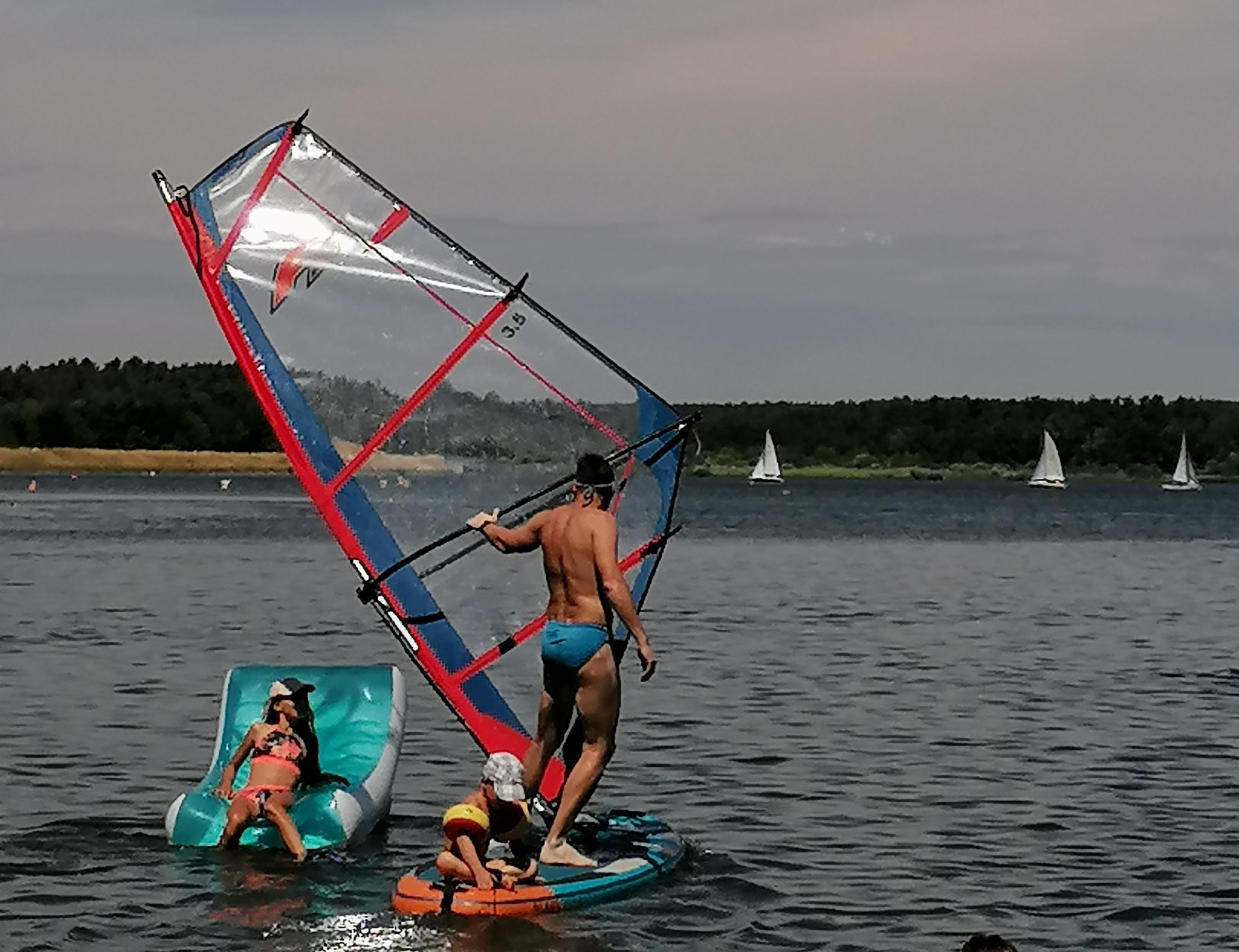 Gegen Mittag teste ich noch unsere neueste Errungenschaft. Ein Standup-Paddle-Board mit “Surfoption” und einem dazu passenden Segel.