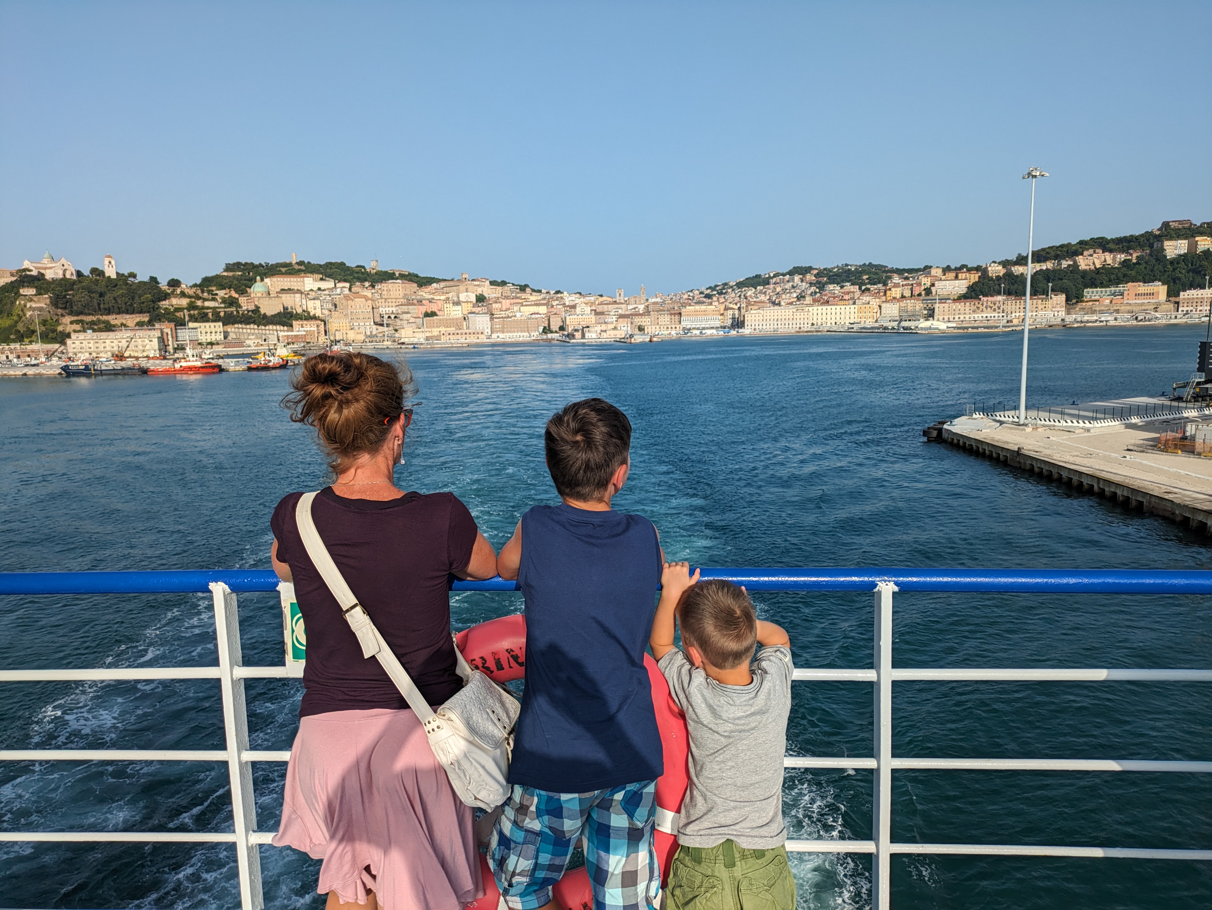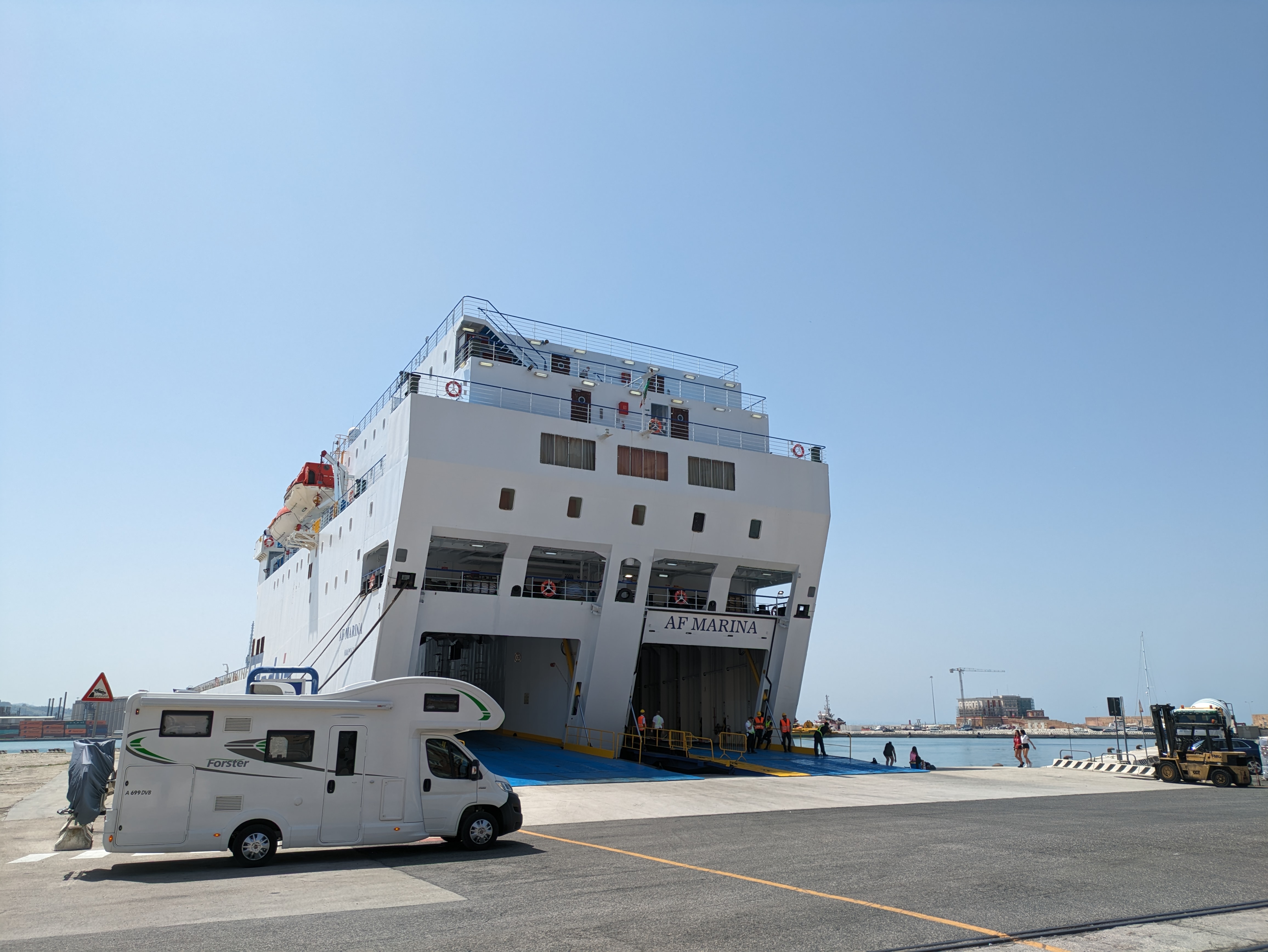Mittag fahren wir das letzte Stück bis Ancona. Die Fähre startet zwar erst um 17 Uhr, man muss aber spätestens 3 Stunden zuvor beim Check-In sein. Pünktlich kommen wir an, checken ein und stehen als erstes Wohnmobil an der Fähre.