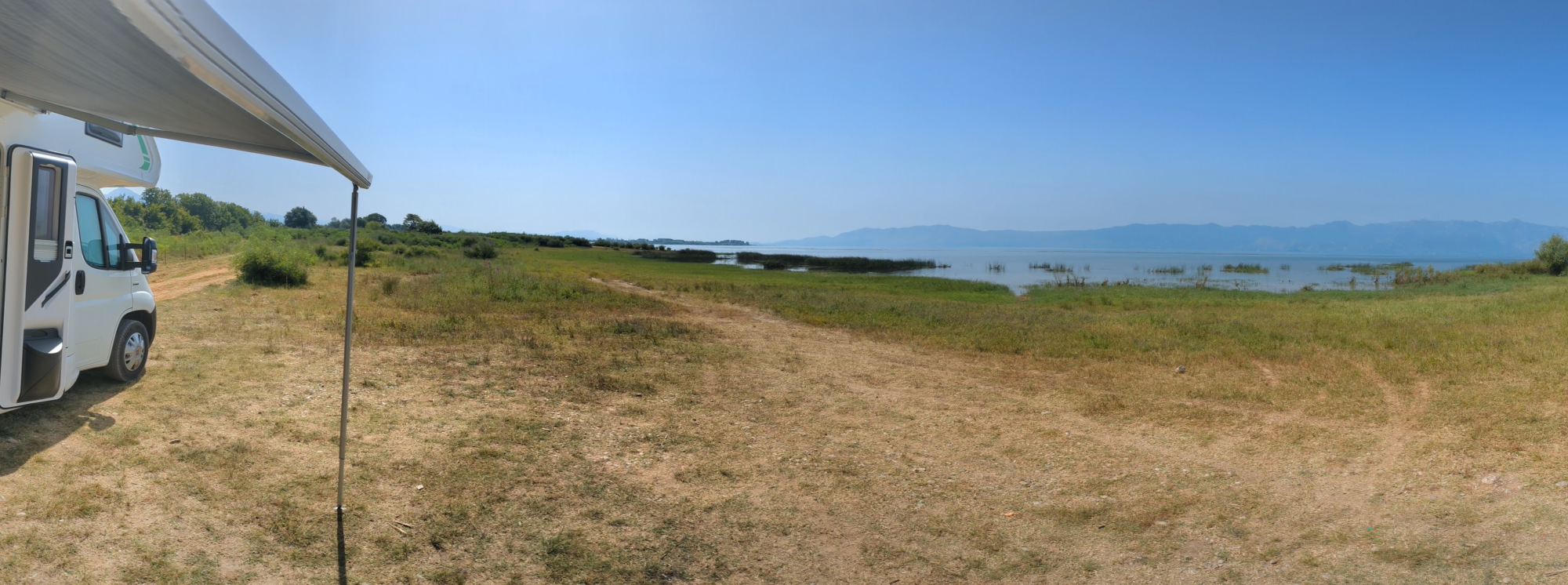 Der Skutarisee ist riesengroß, aber sehr flach. Mattis kann nach etlichen Metern noch stehen. Selbst als wir ein ganzes Stück rausschwimmen, ist er nur zwei bis drei Meter tief. Entsprechend warm ist das Wasser. Wir haben das Gefühl, in einer großen Badewanne zu sitzen und schätzen die Wassertemperatur auf mindestens 35 Grad.