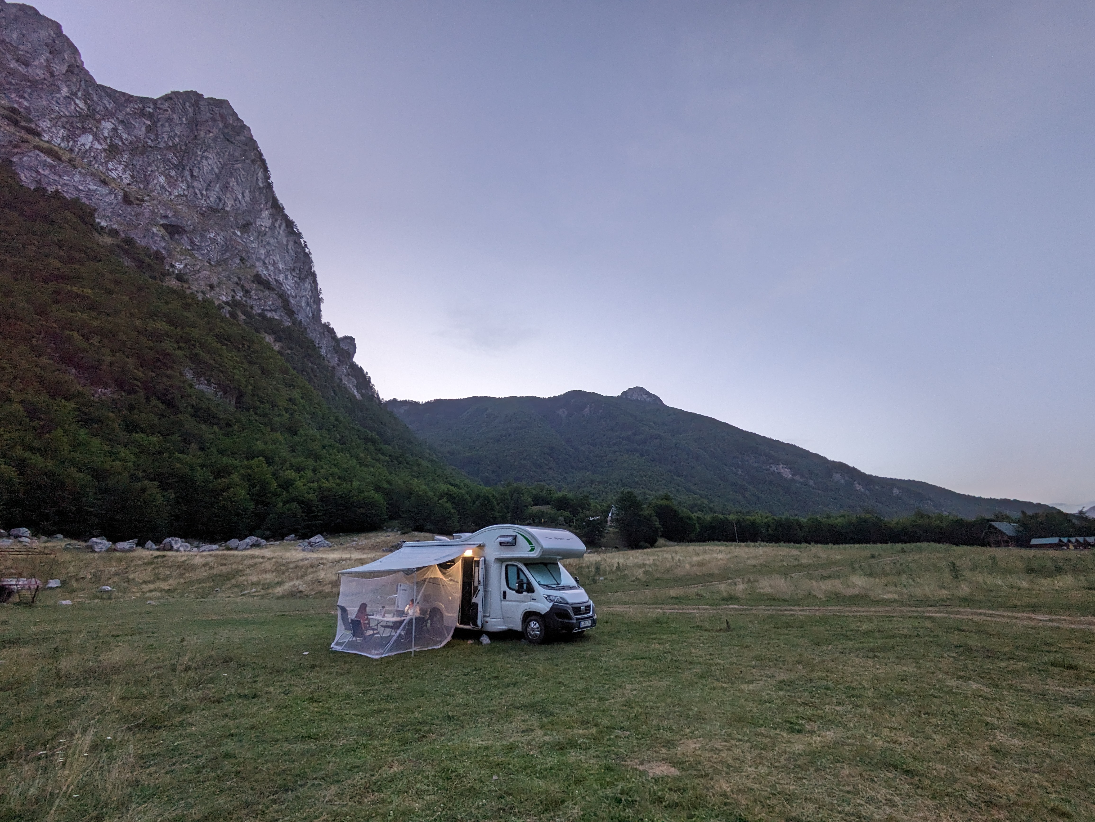 Am Abend spielen wir noch eine Runde unterm Moskitonetz. Annabell übt Klarinette, die Berge bieten eine tolle Akkustik dafür. Ich schreibe ein klein wenig Reisebericht (viel war heute ja nicht los).
