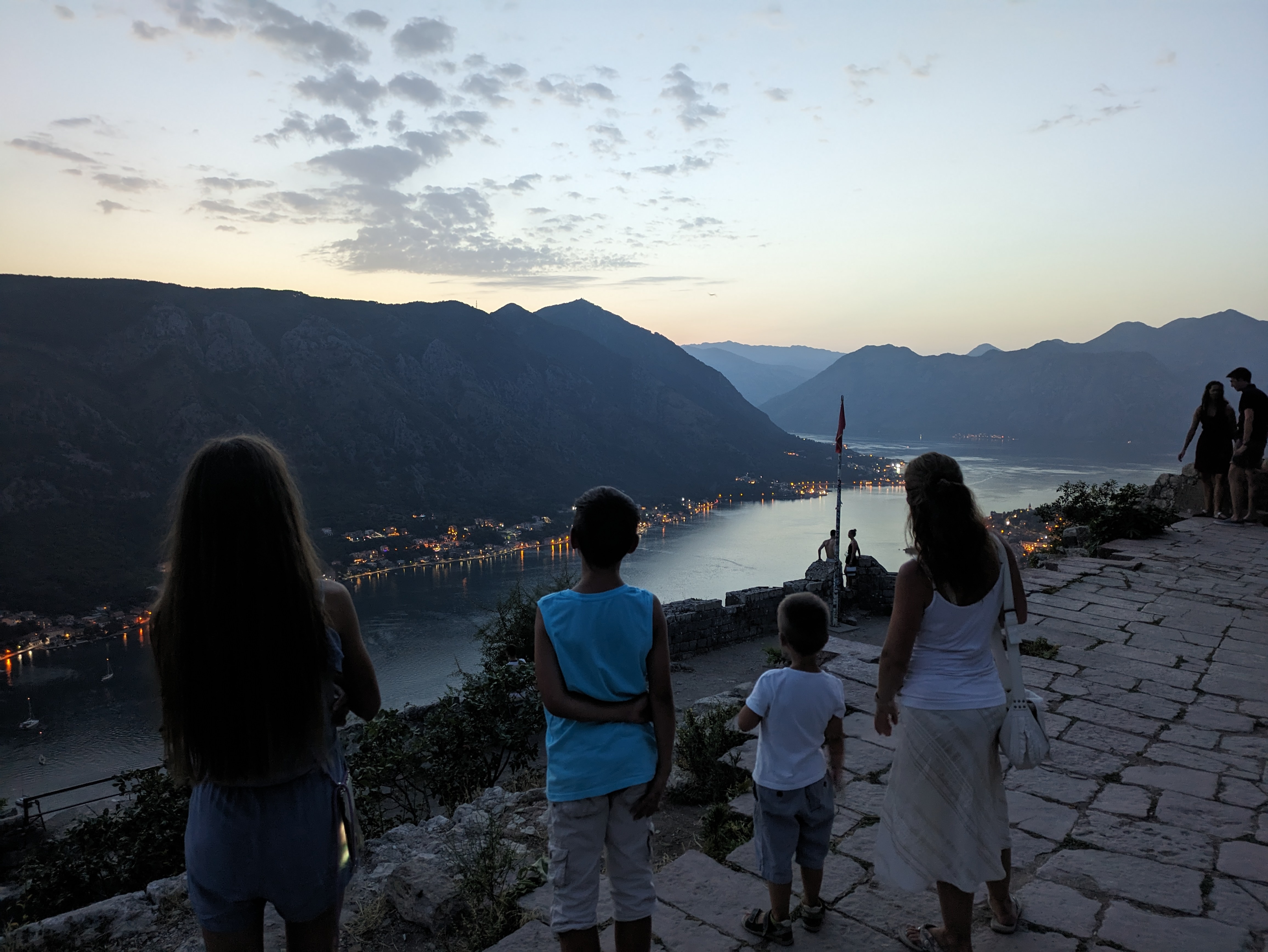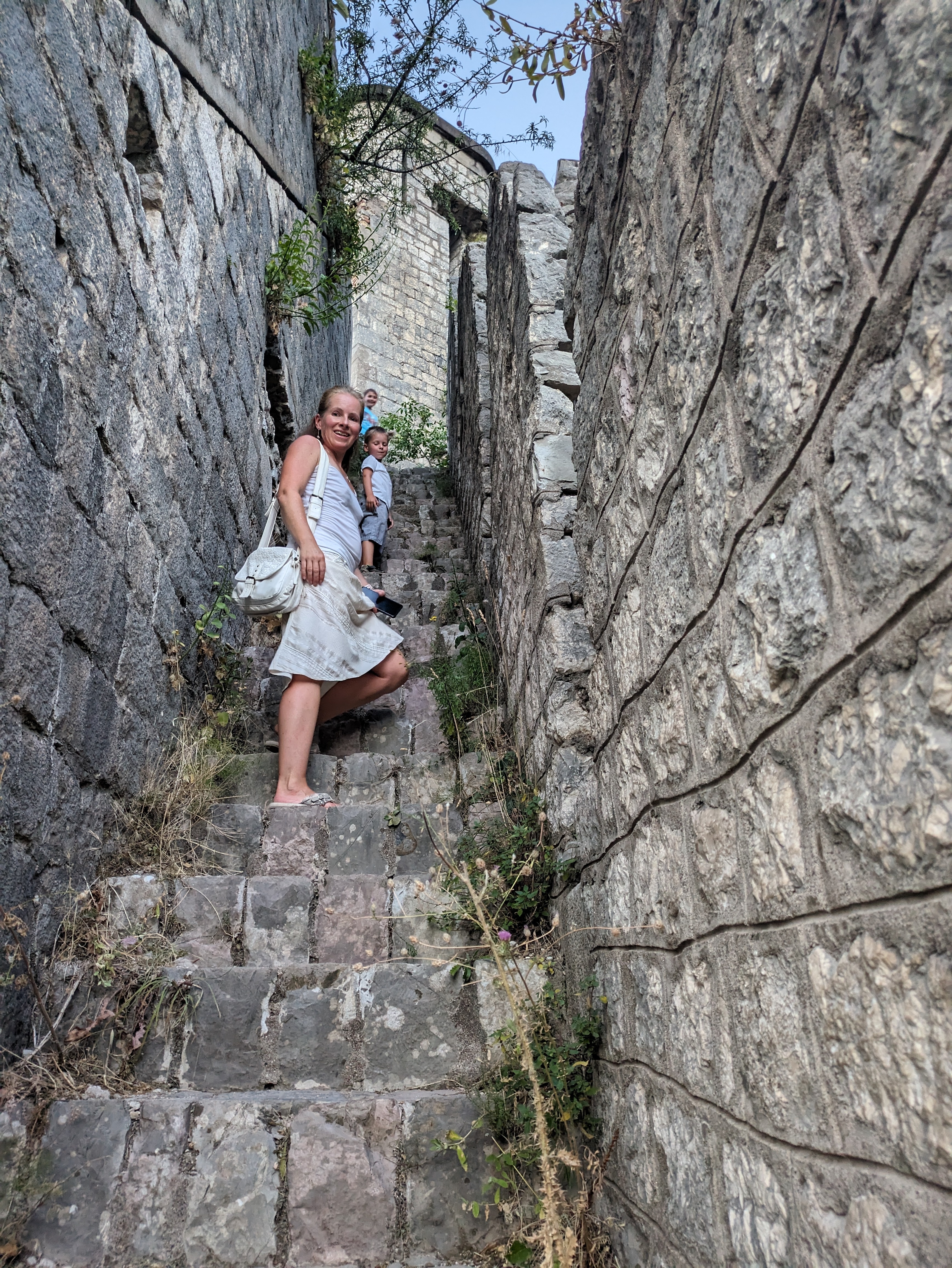 Nach dem Abendessen holen sich die Kinder nebenan schnell ein Eis. Danach wollen wir noch die Treppe zur Festung hinauf steigen.