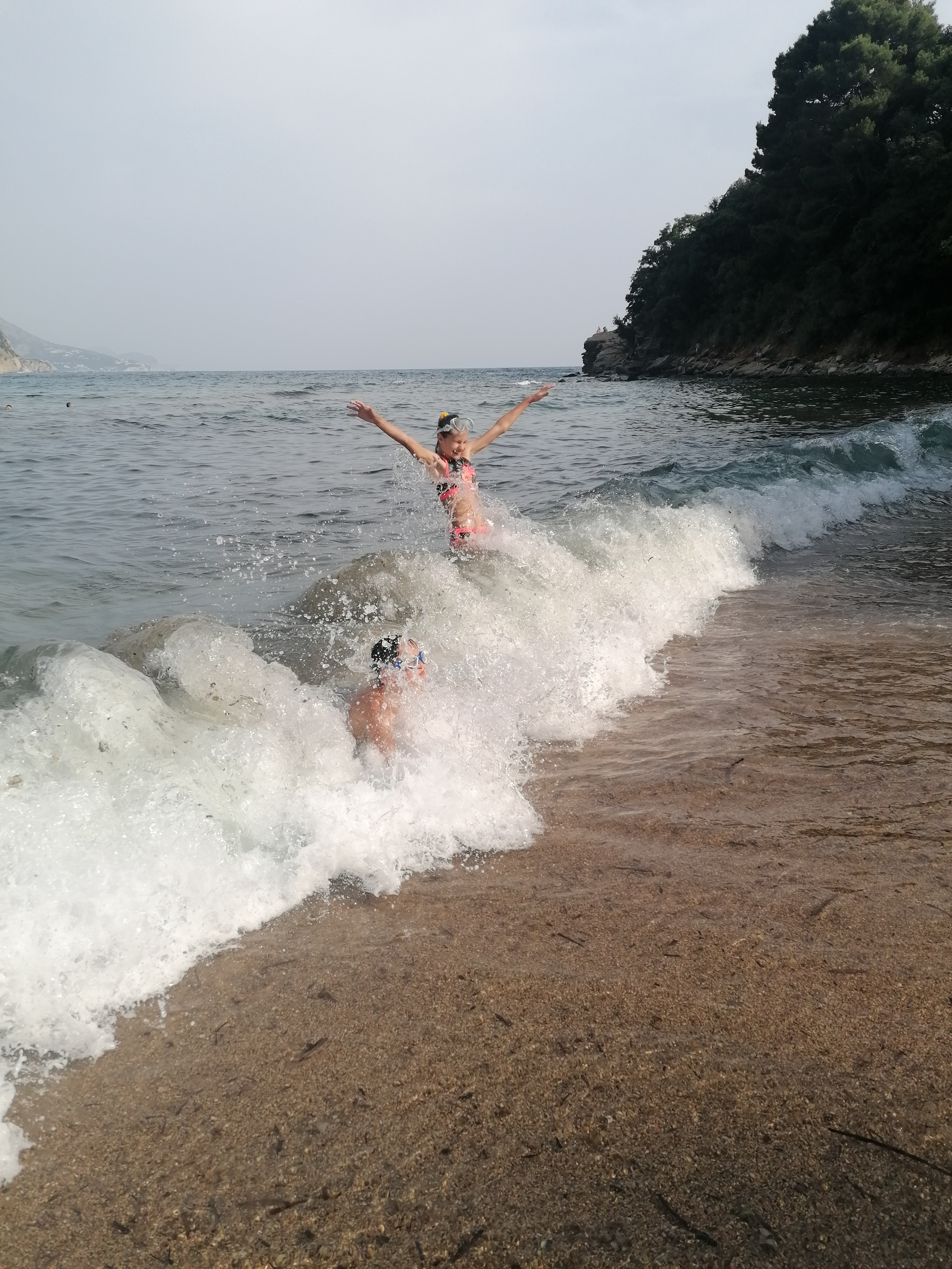 Direkt oberhalb von Budva hat Anke einen Stellplatz gefunden, von dem aus es zum Meer geht. Dieser ist allerdings oben auf der Steilküste, der Abstieg zum Strand sieht lang und beschwerlich aus. Wir entscheiden, weiter unten nach einem Stellplatz an einem der anderen Strände zu suchen, was sich allerdings als fataler Fehler entpuppt. Schnell merken wir, dass Budva das “Lloret de Mar” Montenegros ist. Die Strandpromenade ist mit riesigen Hotels bebaut. Die Strände sind voll, die Straßen sind voll, die Parkplätze sind voll. Nach etlichen Versuchen geben wir entnervt auf und fahren zum ersten Stellplatz auf der Steilklippe zurück.