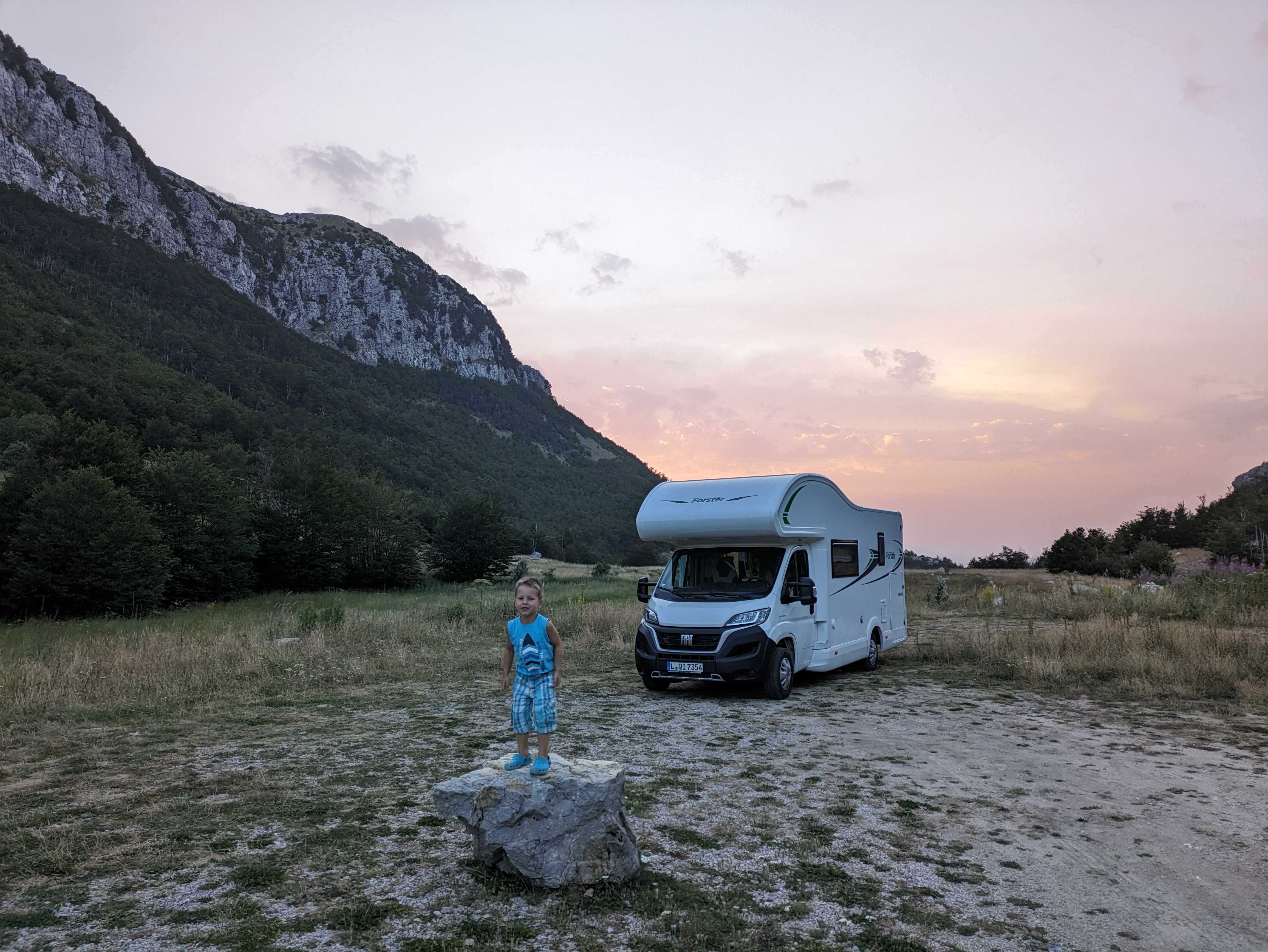Der heutige Stellplatz könnte in keinem größerem Kontrast zu dem von letzter Nacht stehen. Gestern waren wir am Meer in der Stadt. Es war heiß und auch verhältnismäßig laut. Heute stehen wir inmitten von Bergen und Natur. Weit und breit sind kaum Menschen und es weht ein kühler Wind durch die Berge.