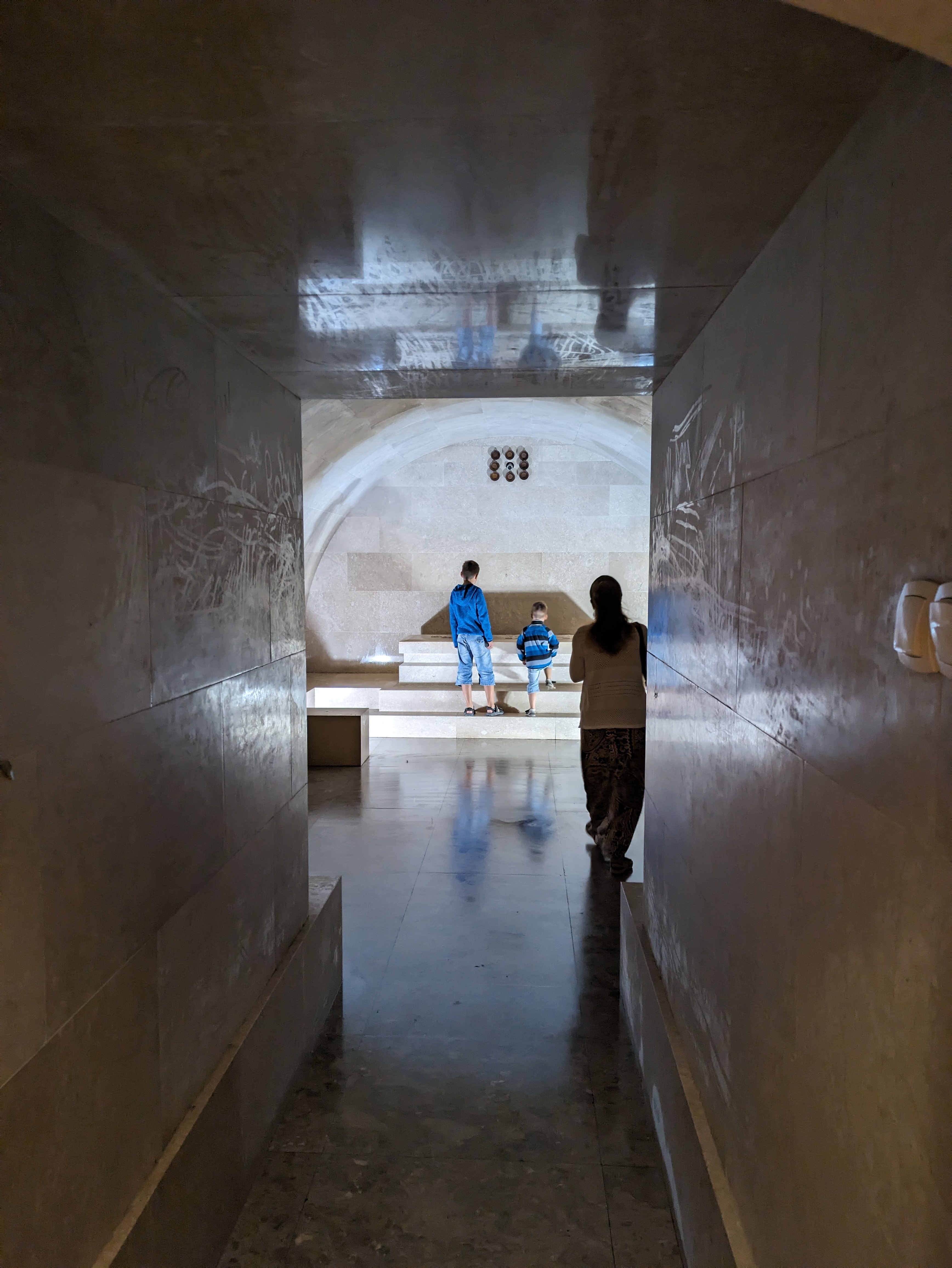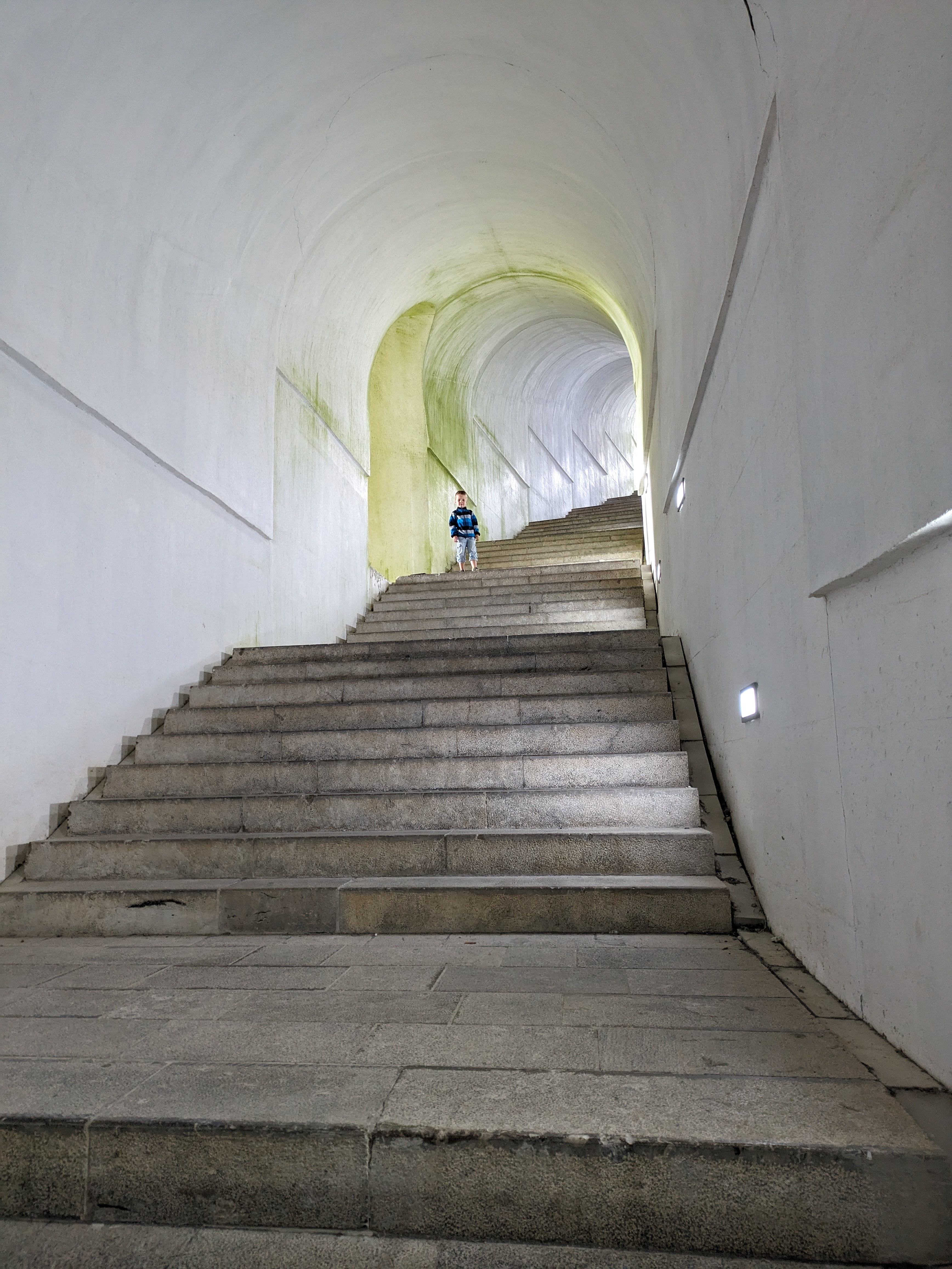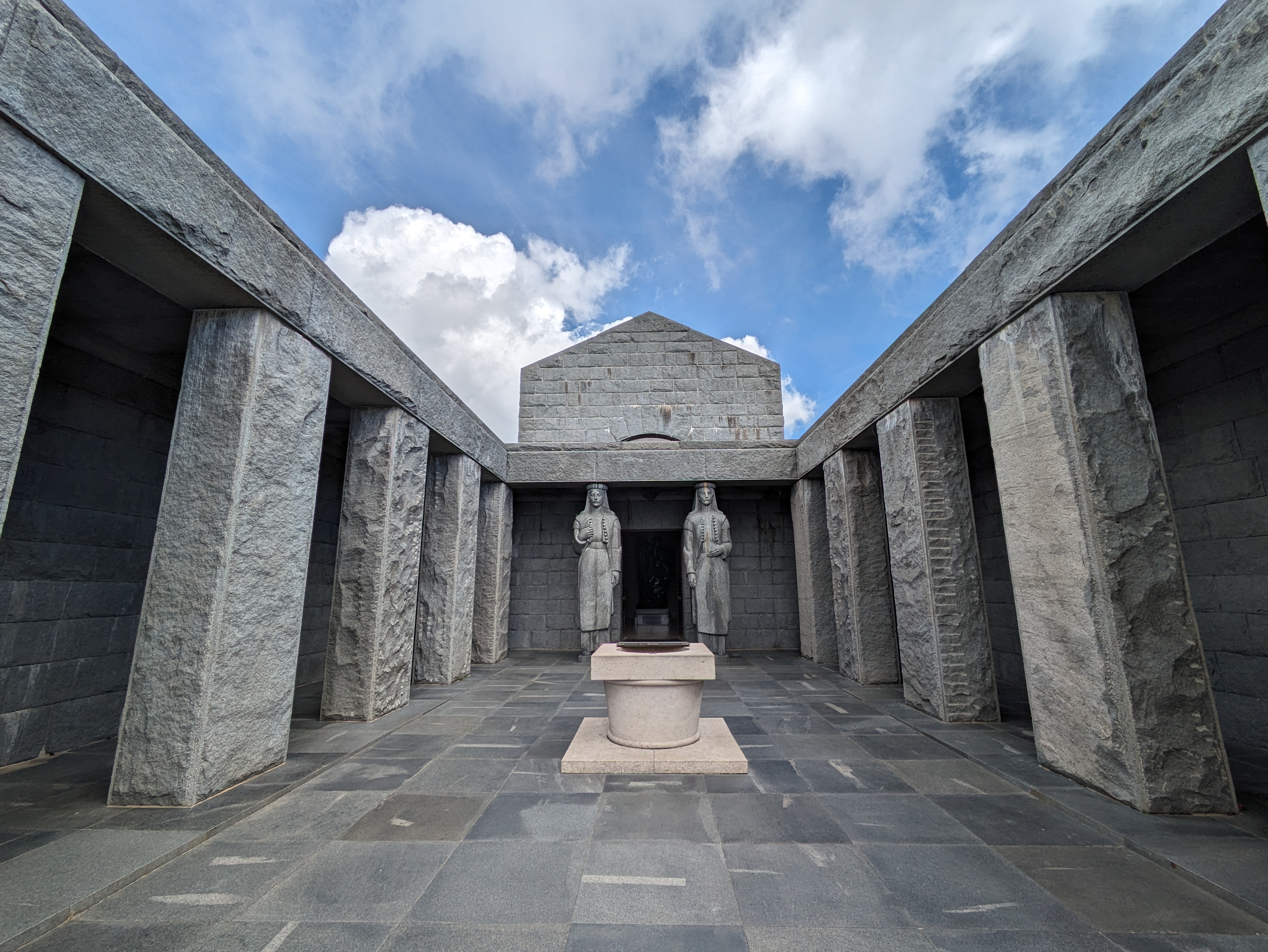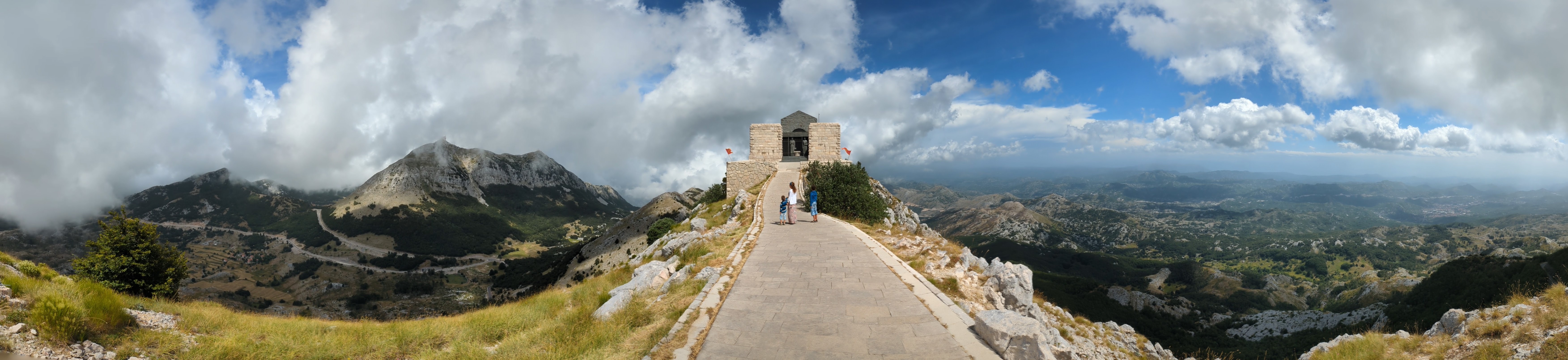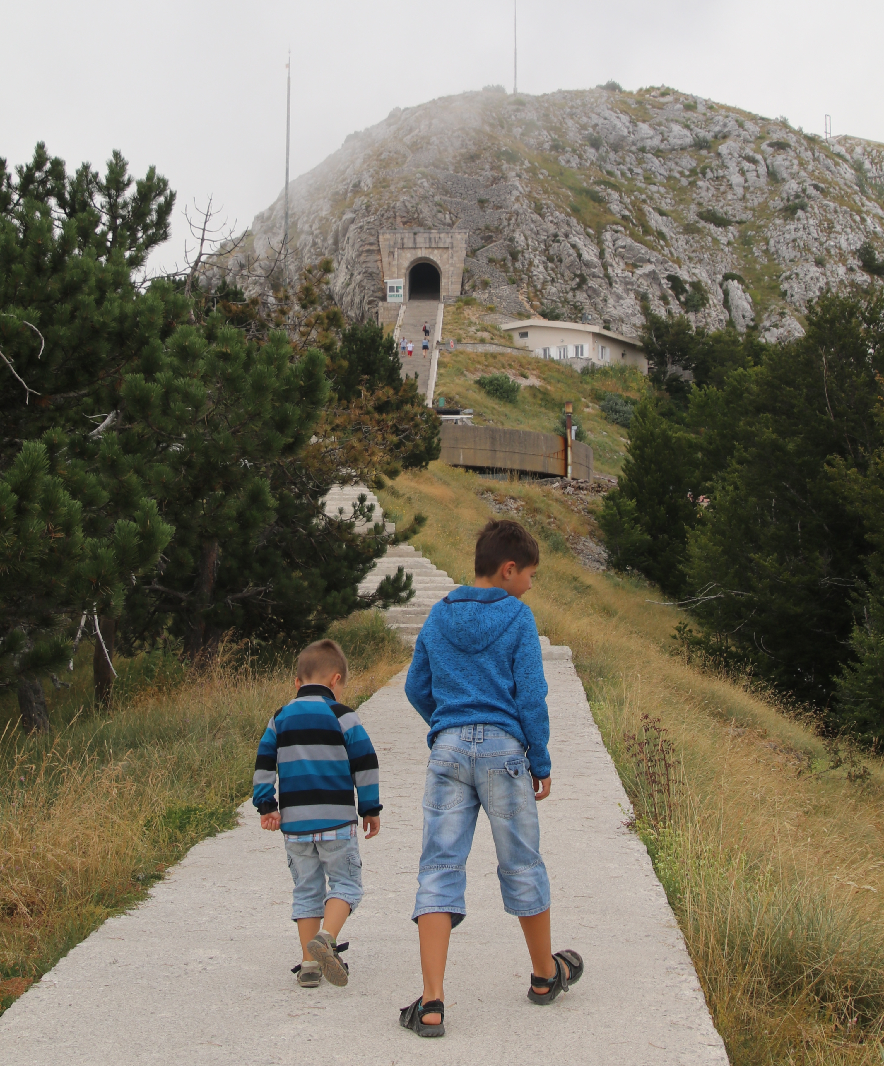 Hier beginnt eine Treppe, die zum Mausoleum von Petar II führt. Diese Grabanlage beherrscht den gesamten Gipfel uns ist schon von weitem zu sehen. 540 Stufen führen uns durch einen Tunnel im Berg bis zu einer monumentalen Grabstätte, die an die Gräber ägyptischer Pharaonen erinnert. Im Inneren führt eine Treppe hinab in die Krypta mit einem steinernen Sarkophag.