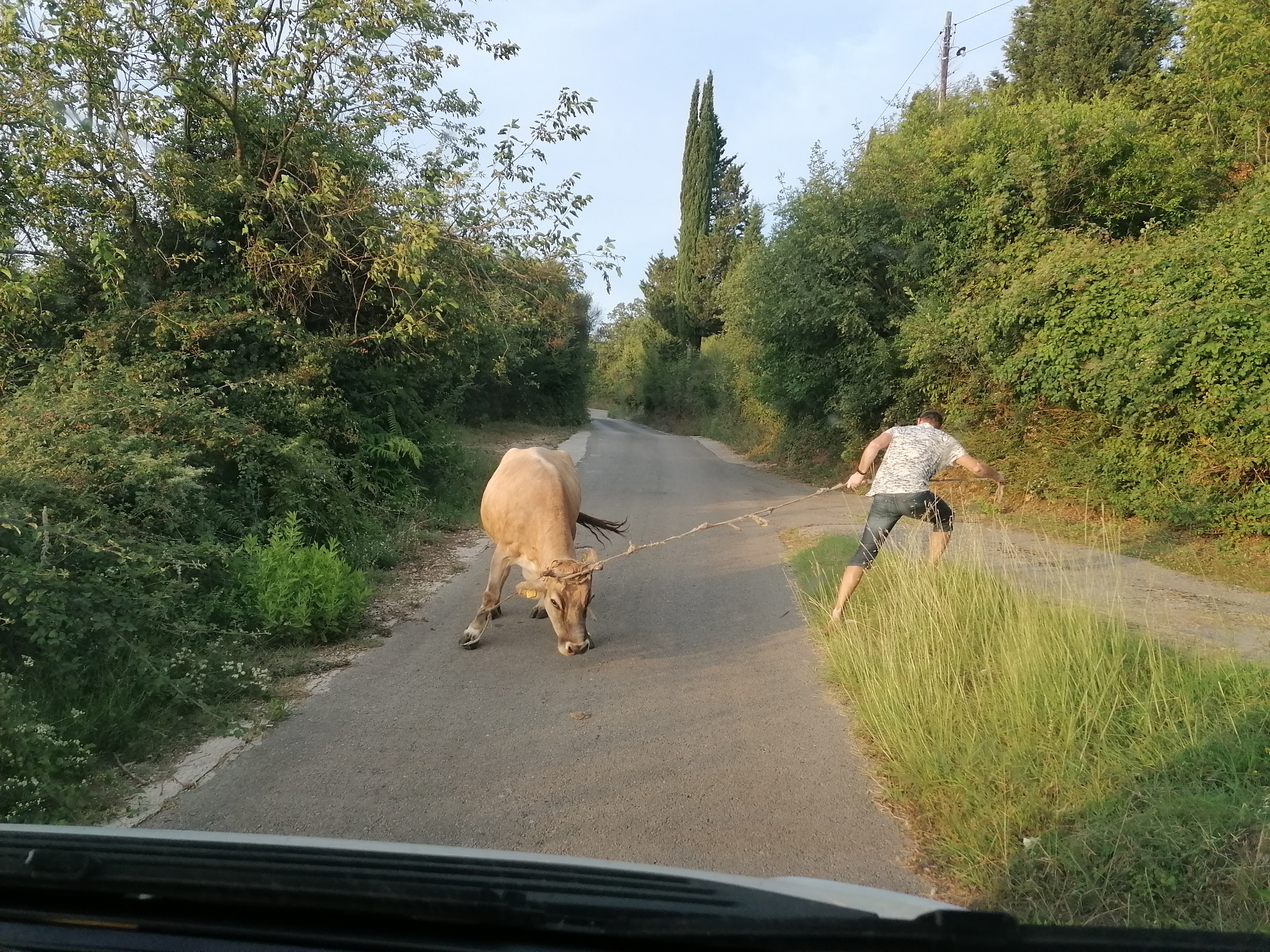 An einer Stelle liegt irgendwas mitten auf der Straße. Ich mache eine Vollbremsung, als wir erkennen, dass es eine Schildkröte ist. Anke und die Kinder springen sofort aus dem Auto, um das Tier sicher auf die andere Straßenseite zu geleiten.