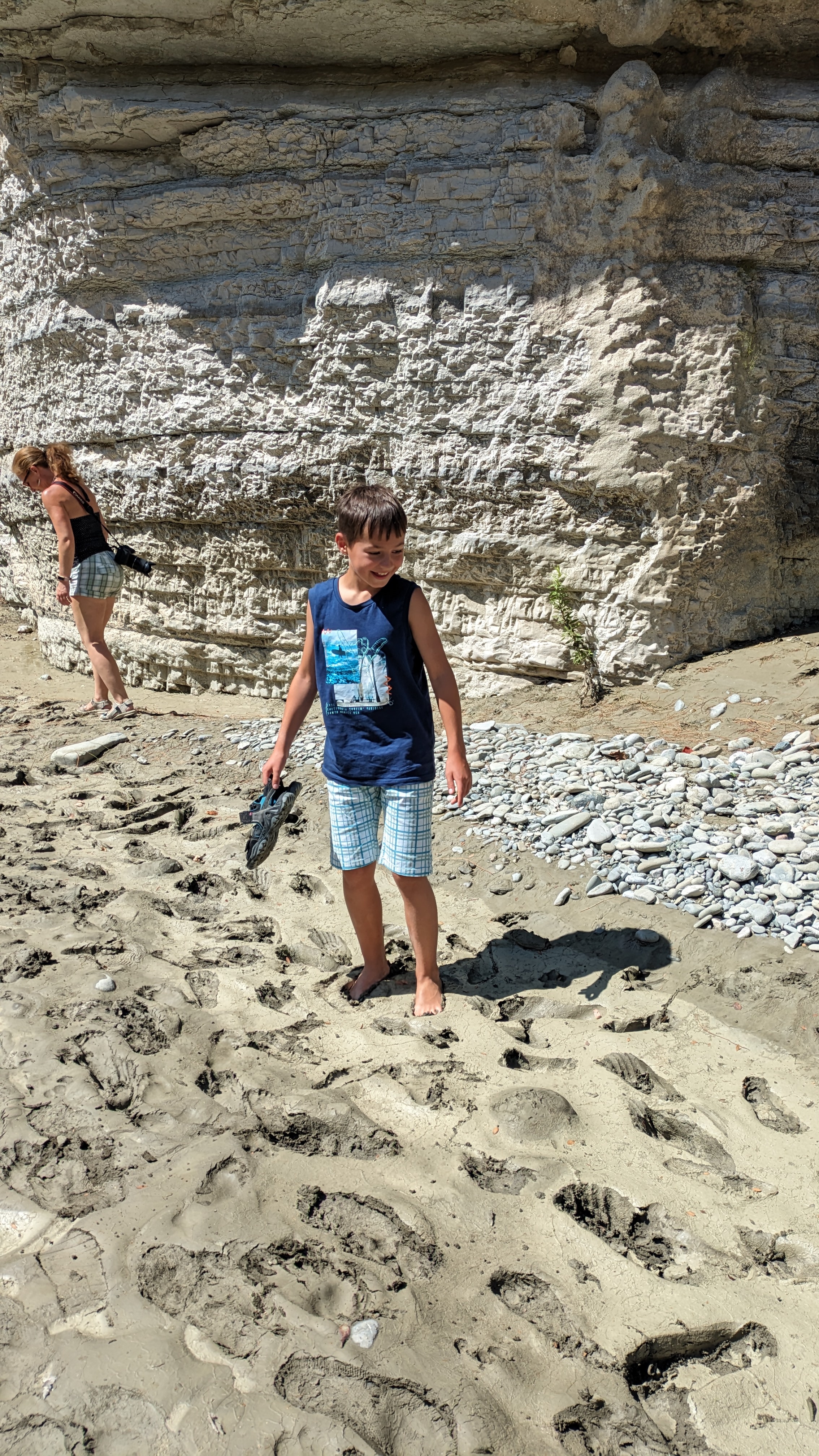 Mattis freut sich, dass er noch ein wenig im warmen Wasser schwimmen kann. Ich gehe mit Annabell und Felix in den Canyon. Hier steht das Wasser recht hoch, teilweise müssen wir schwimmen. In der Abendsonne leuchten die Wände golden.