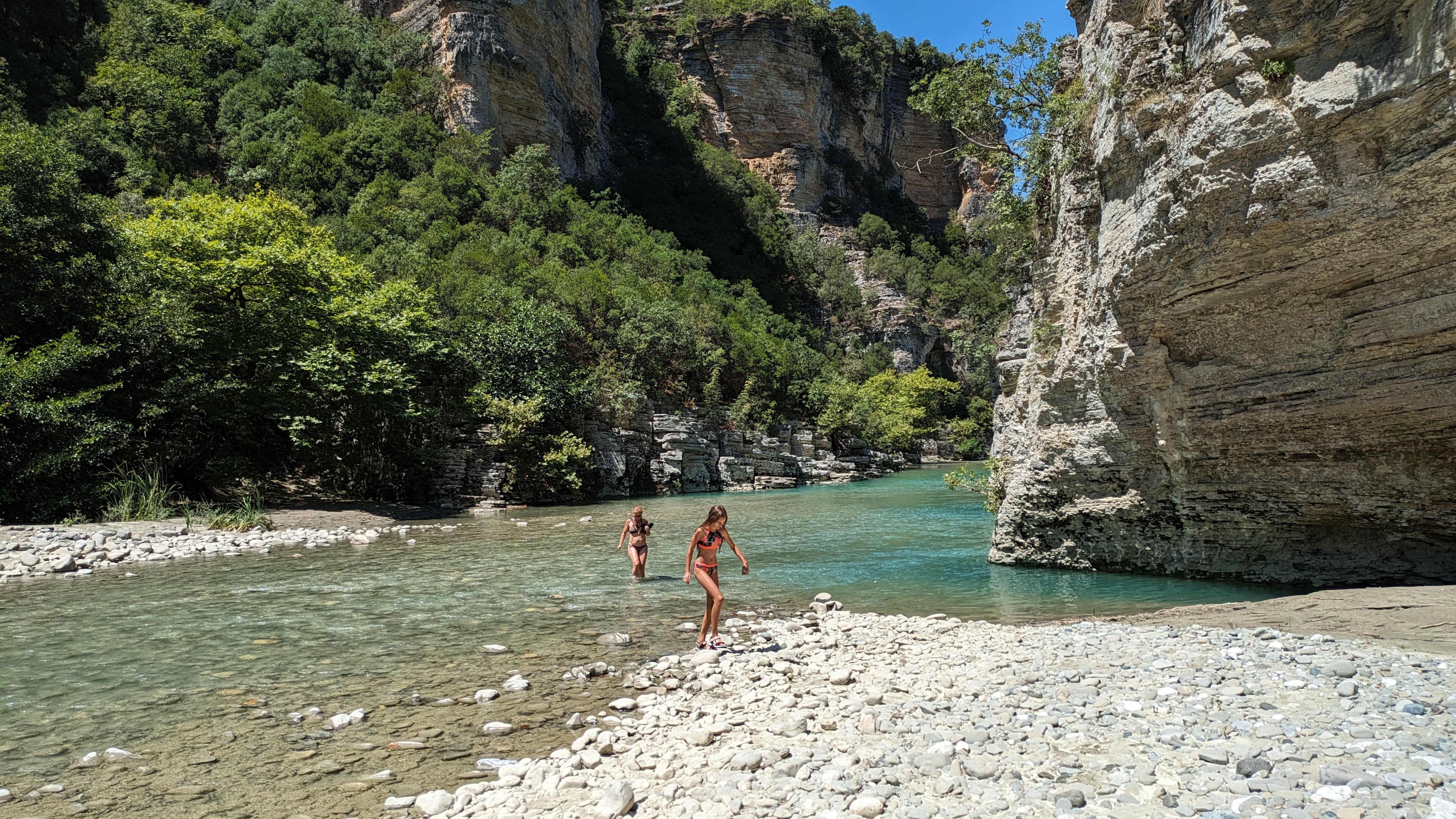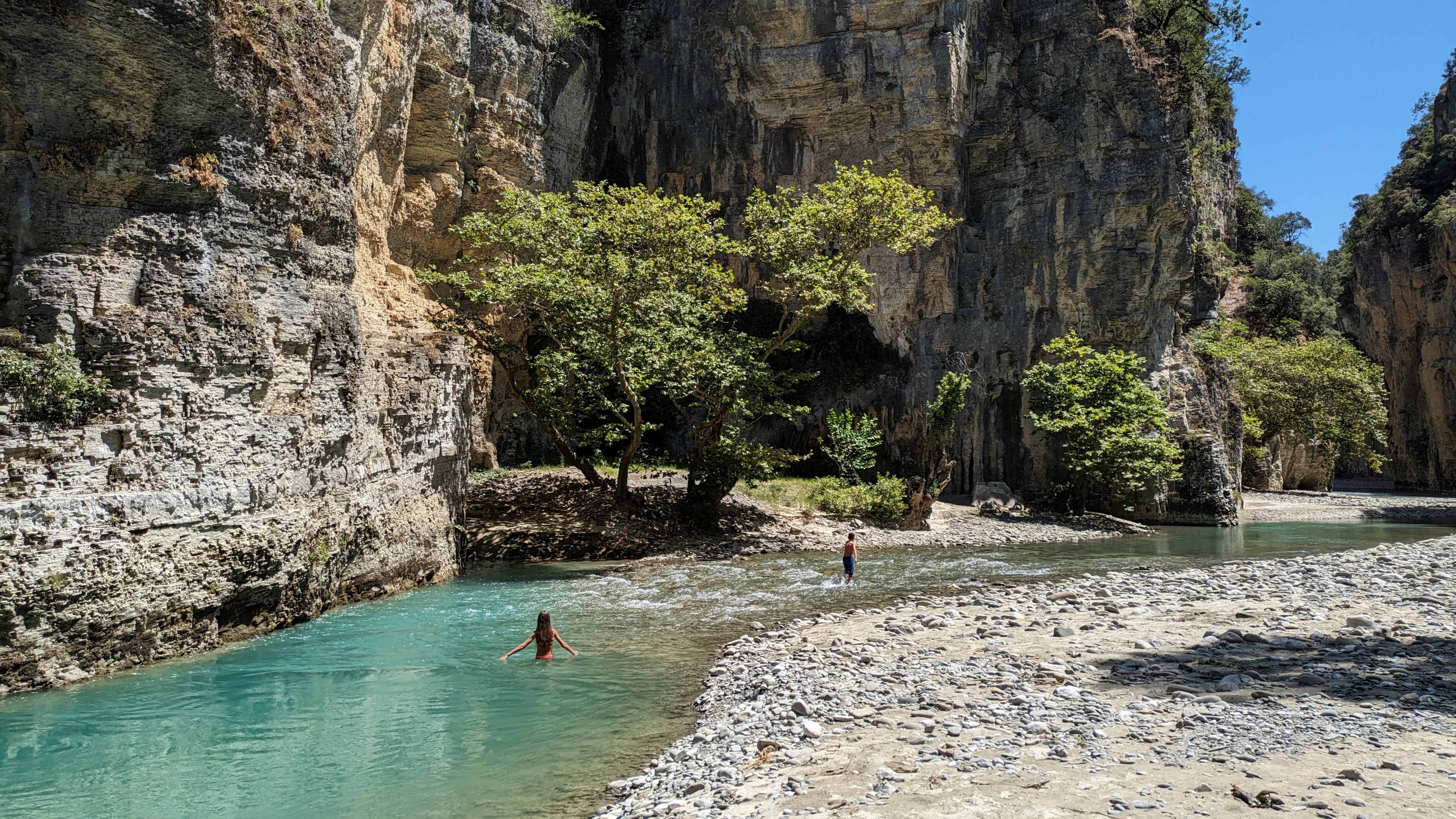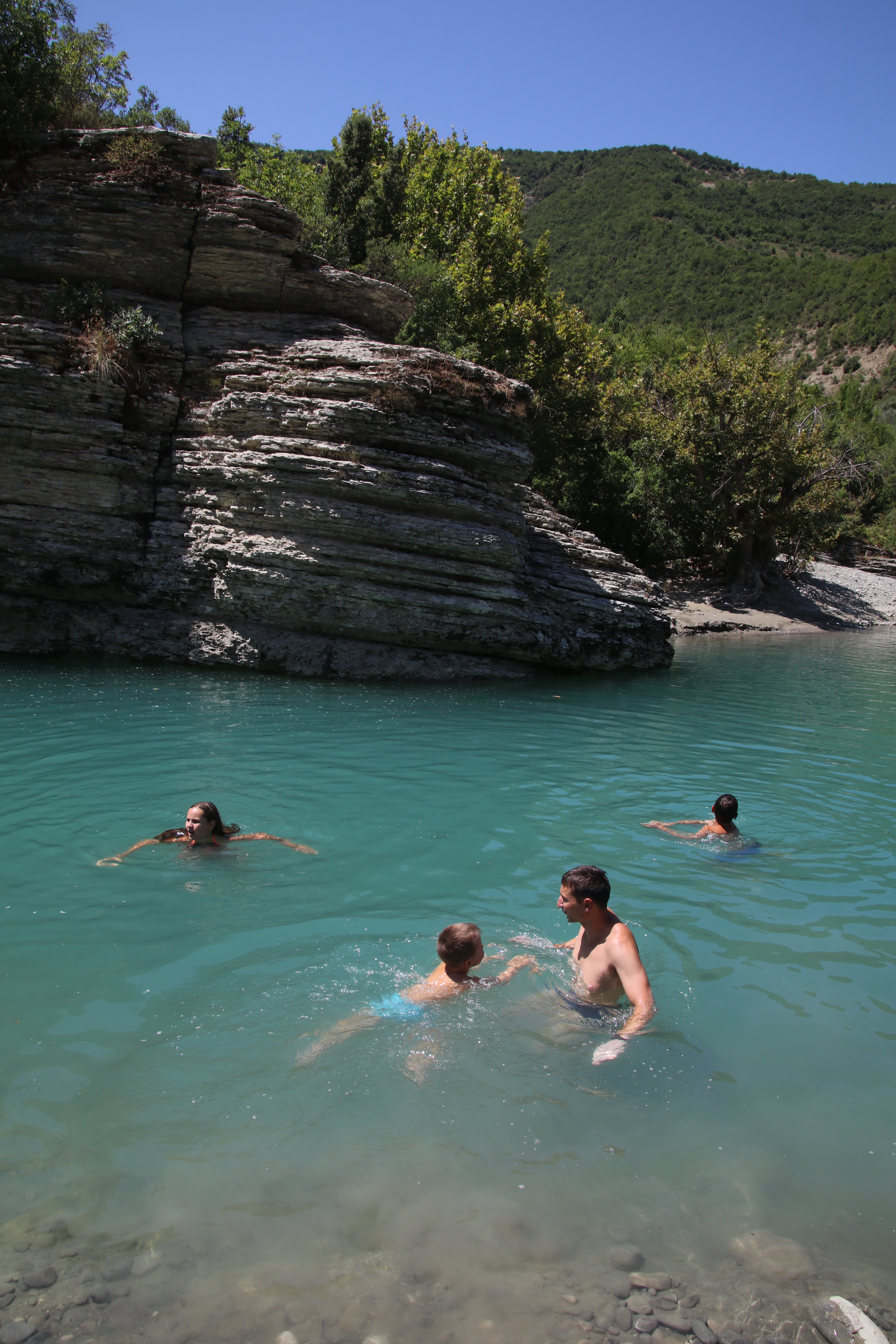 Als wir zurück sind, lassen wir die Kinder noch ein wenig schwimmen und beraten in der Zeit, wie wir weiter machen. Wir beschließen, heute Abend noch nach Berat zu fahren und von dort aus morgen die Strecke neu zu planen.