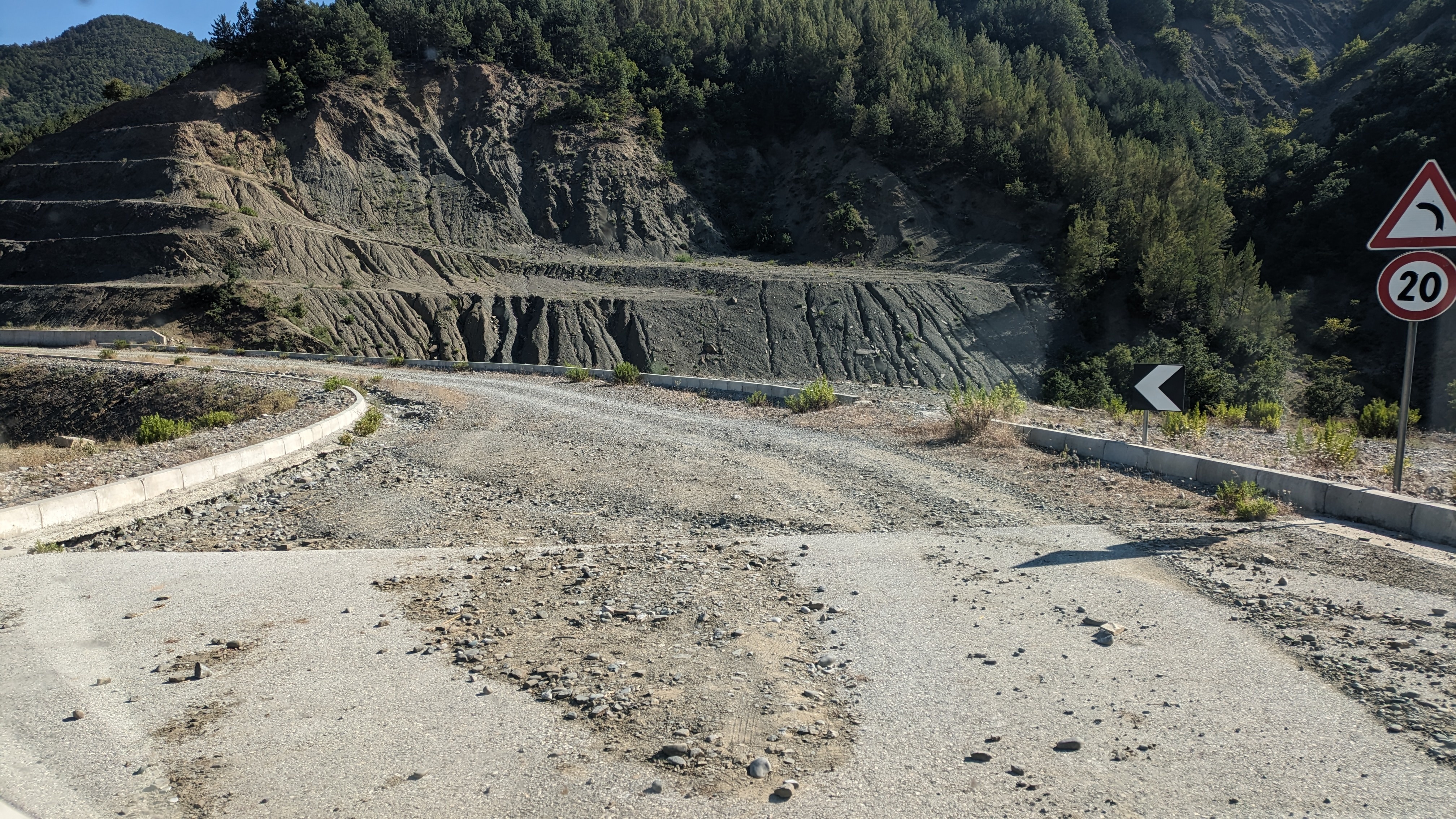 Wir freuen uns, dass die Straße breiter wird und hier sehr gut ausgebaut ist. Das Navi versucht uns allerdings ständig in Feldwege zu leiten. Wir ignorieren das, worauf das Navi jedes mal 15 Minuten auf die Zeit aufschlägt. Nach ein paar Kilometern wissen wir auch, warum.