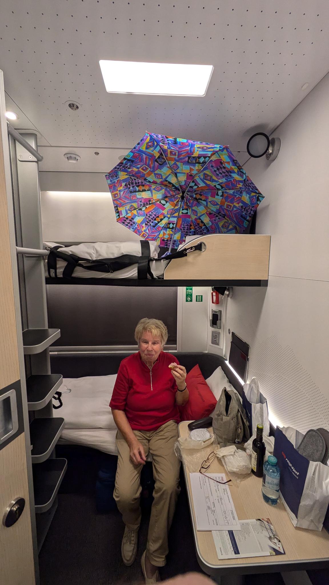 Hier gibt es gleich eine sehr positive Überraschung: wir haben einen der ganz neuen Nightjets erwischt. Die Abteile sind supermodern und komfortabel, alles ist ordentlich und sauber.