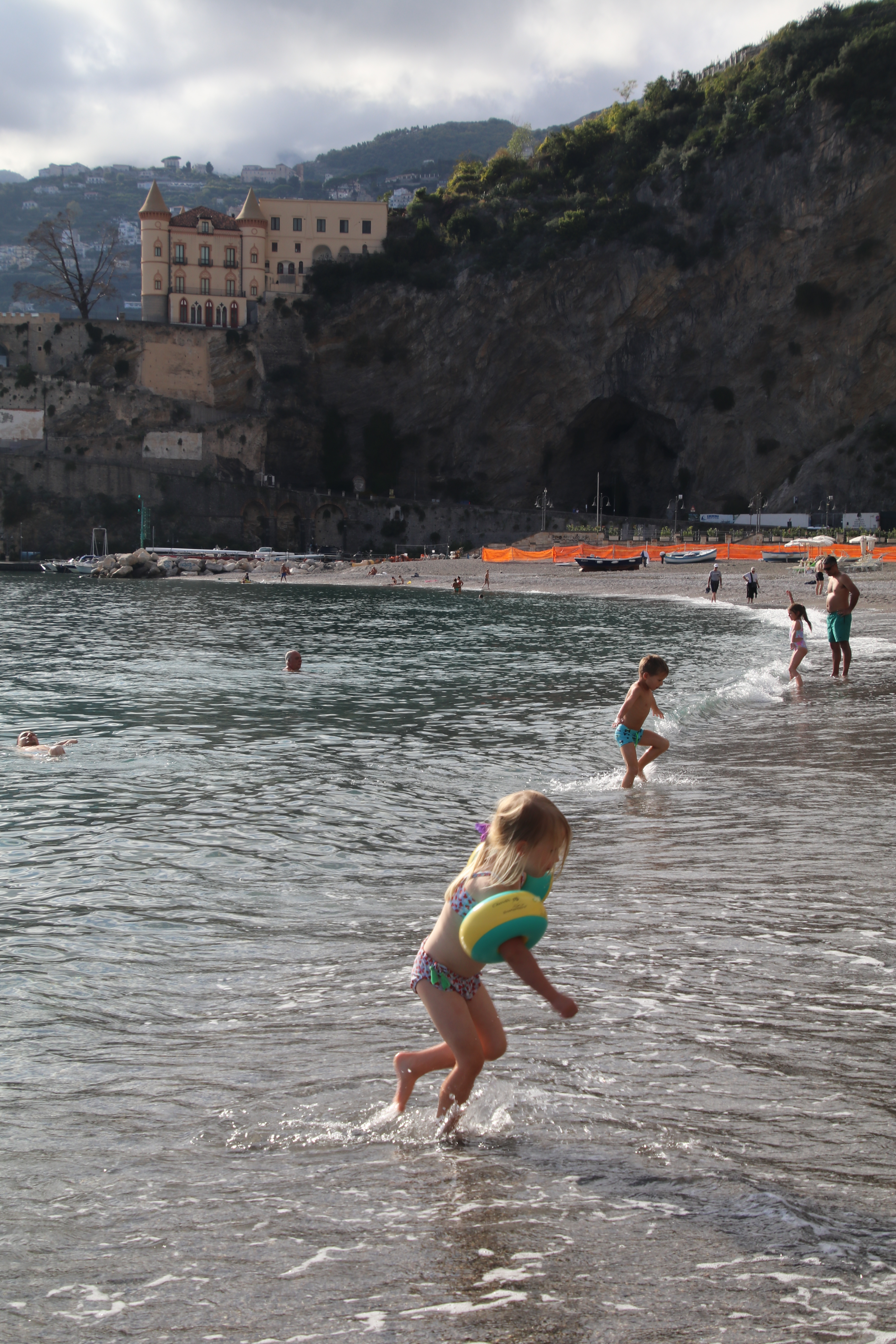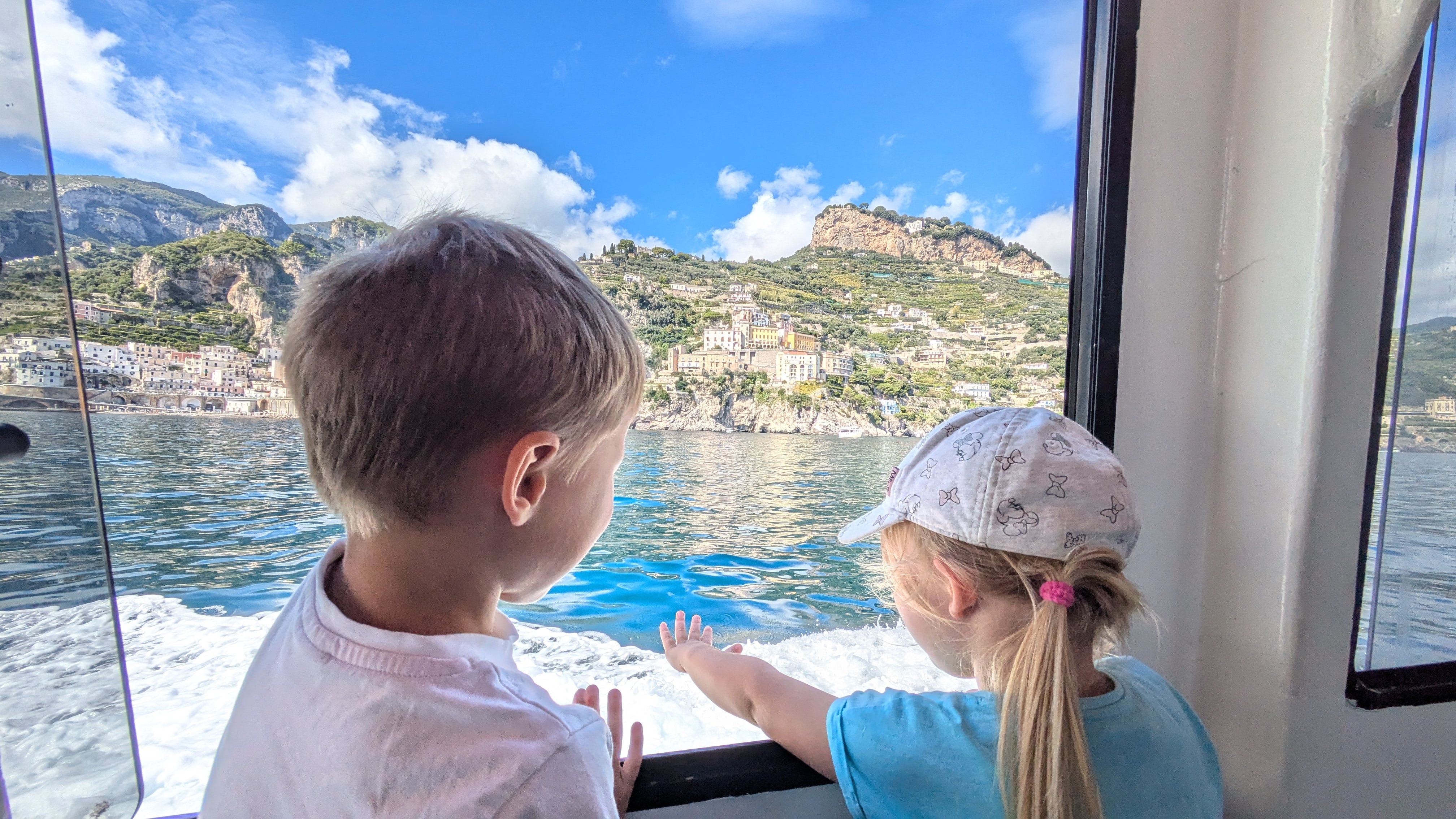 Kurz darauf jagt uns Mattis einen riesengroßen Schreck ein. Beim Streicheln einer Katze erschreckt er sich, tritt einen Schritt zurück und stürzt auf eine Steintreppe. Die italienischen Anwohner springen sofort hilfsbereit mit Wasser, Pflaster und Eis zum Kühlen ein. Zum Glück ist bis auf ein paar Schrammen nicht viel passiert und wir beenden den Weg nach Maiori ohne weitere Zwischenfälle.