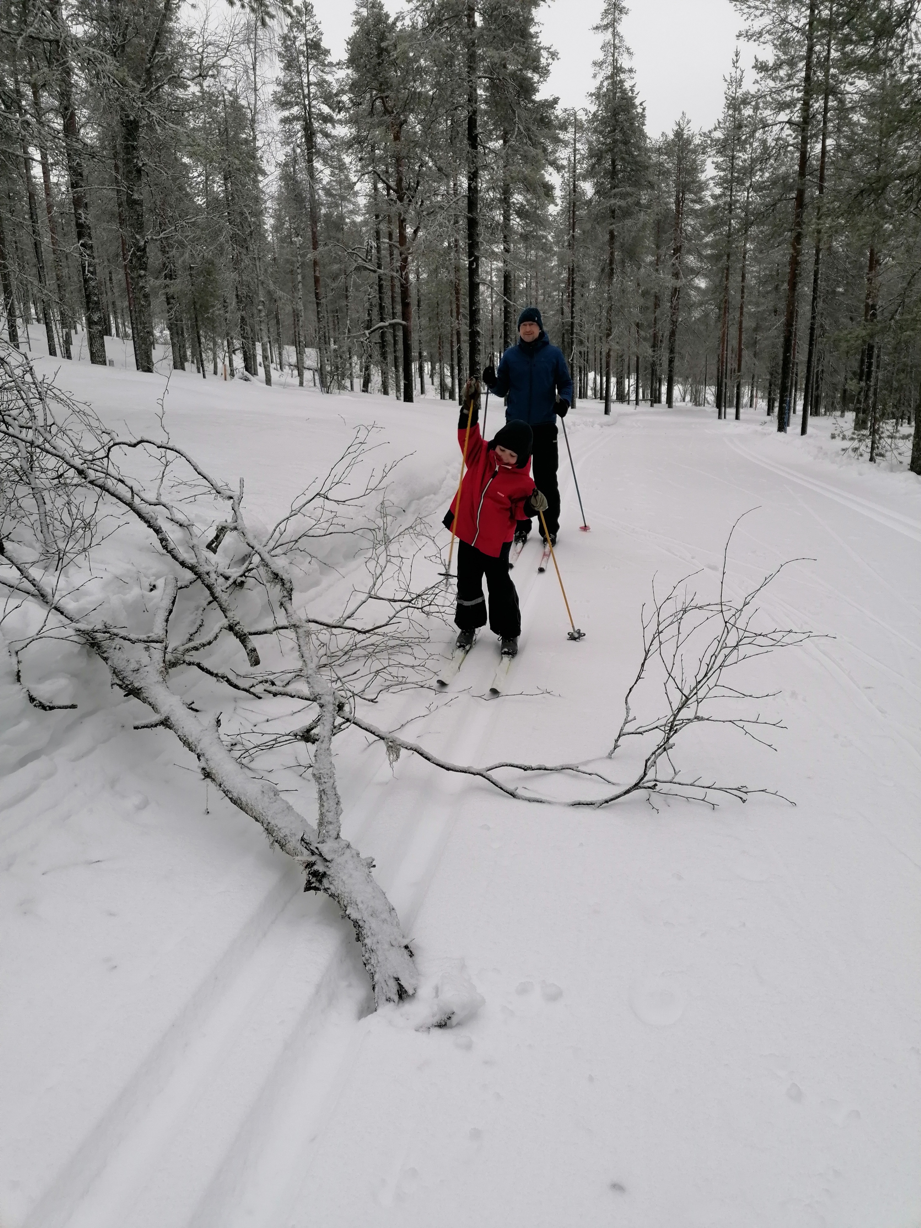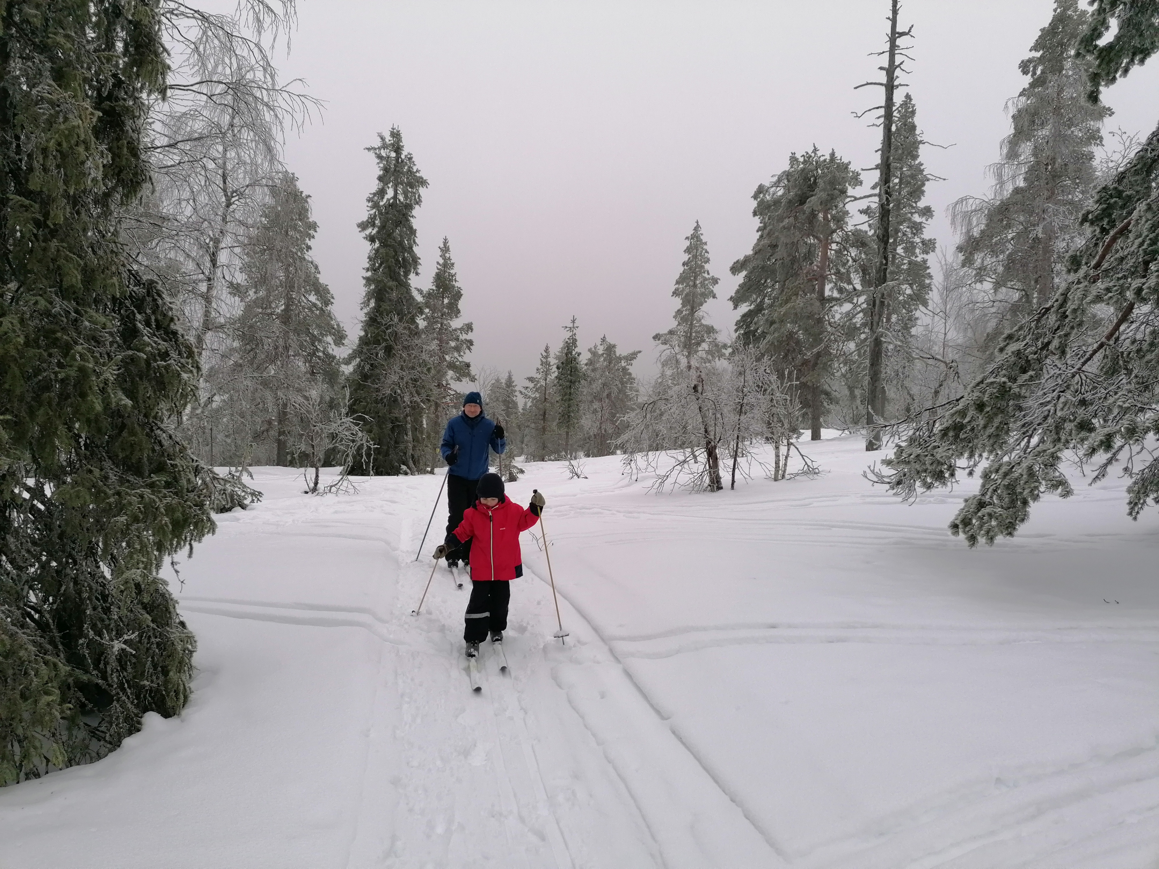 Aber dann geht der Regen in Schnee über, so dass wir am Vormittag eine Runde Ski im Neuschnee drehen können. Annabell und Felix bleiben heute lieber faul im Zimmer liegen.