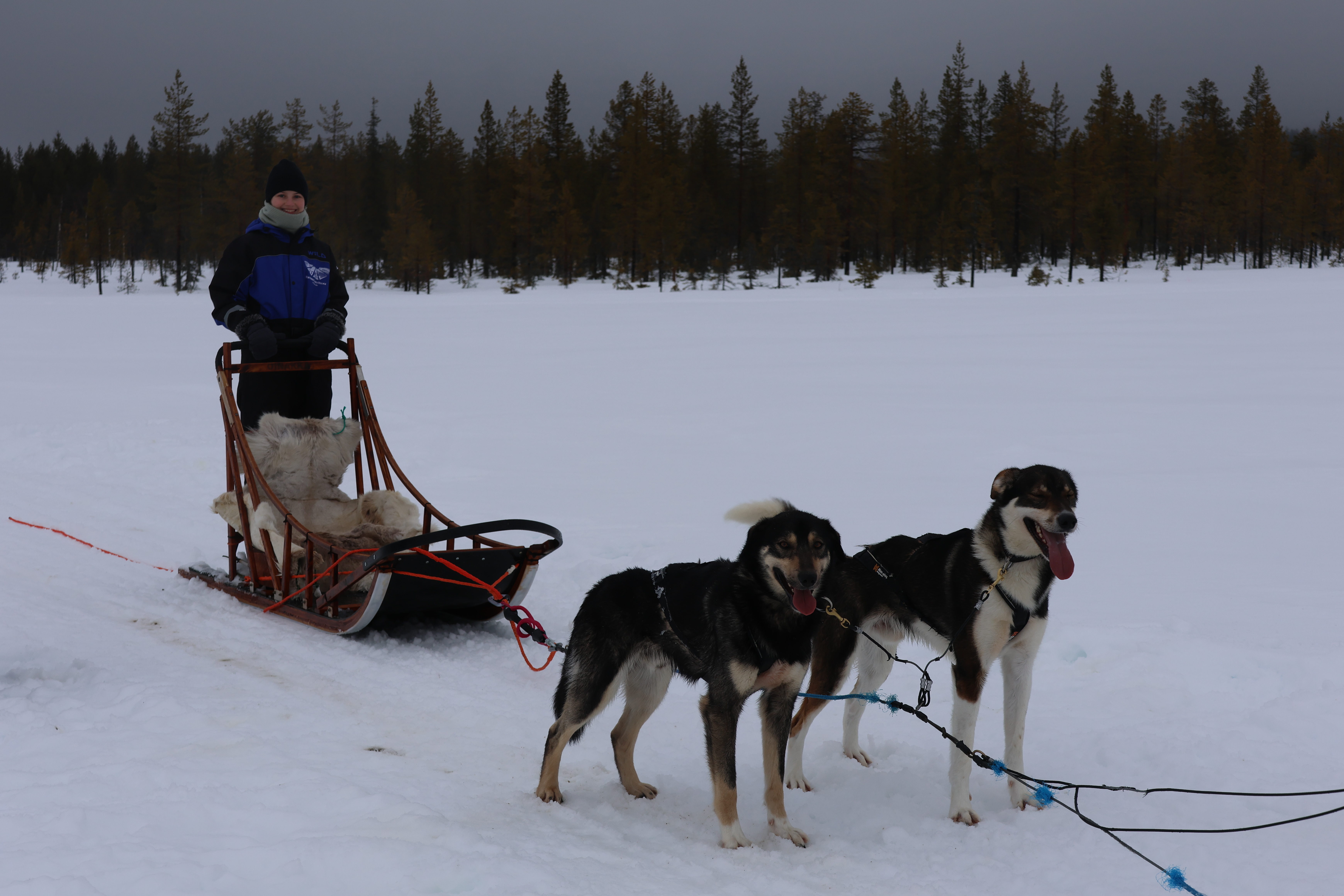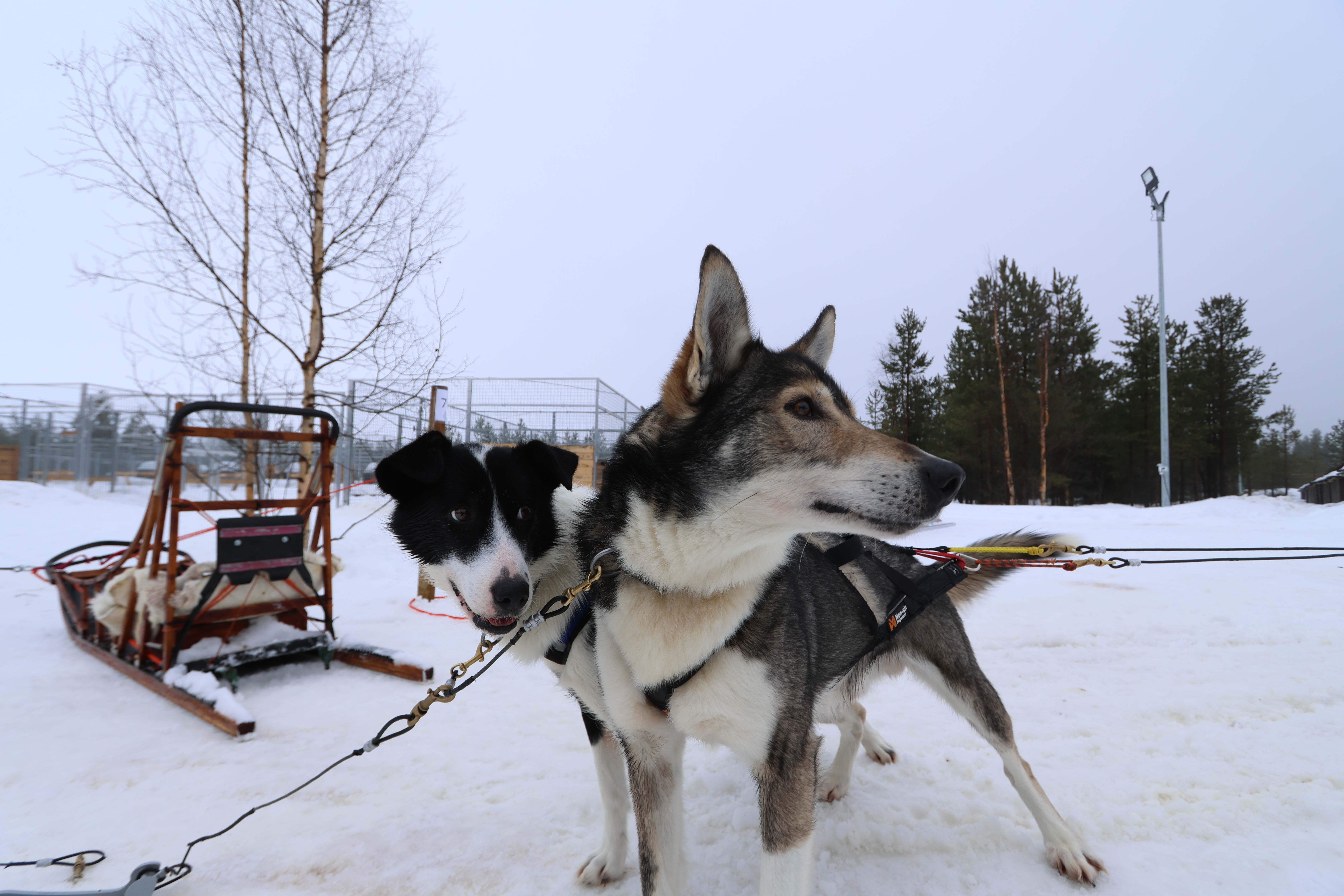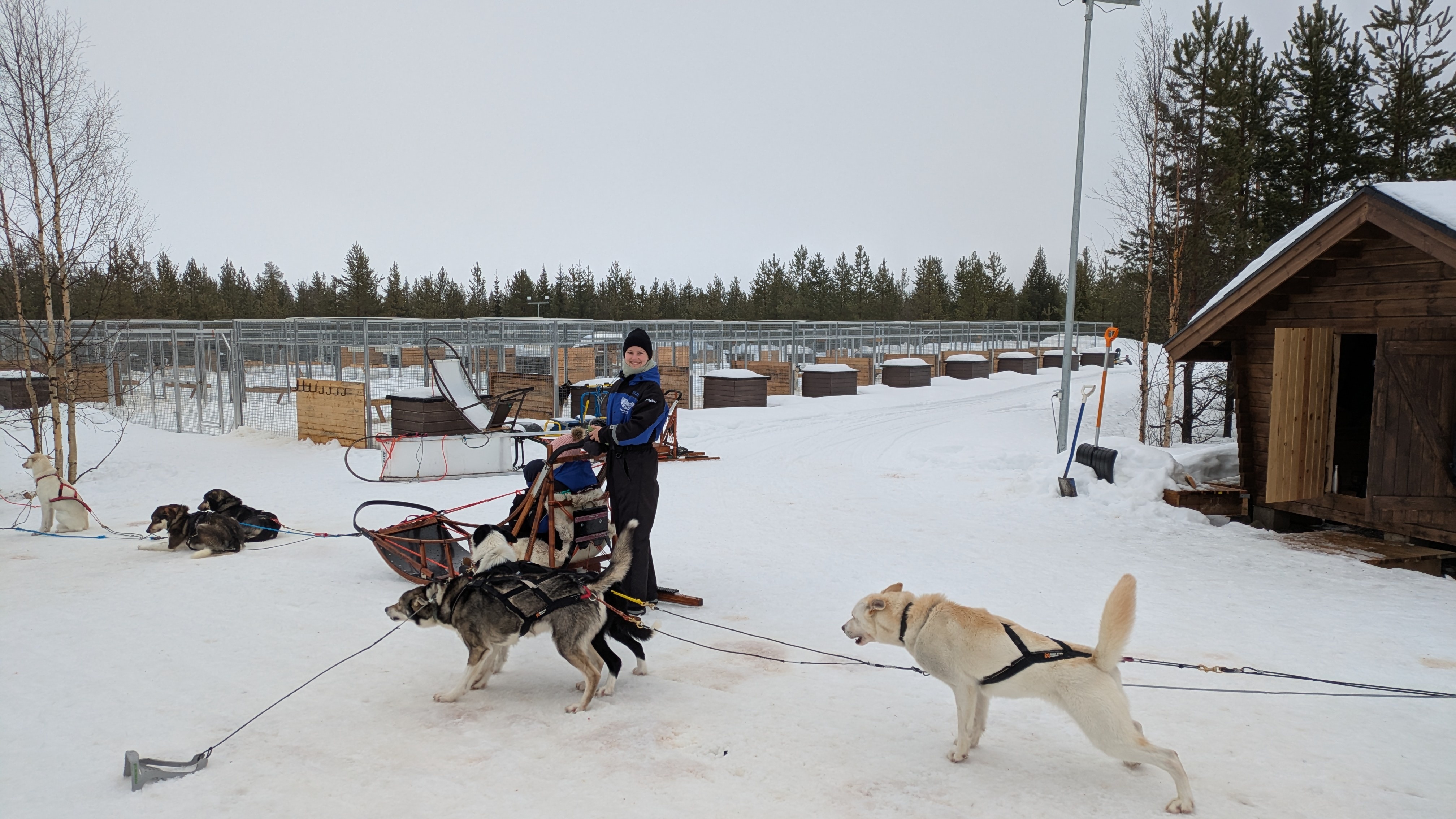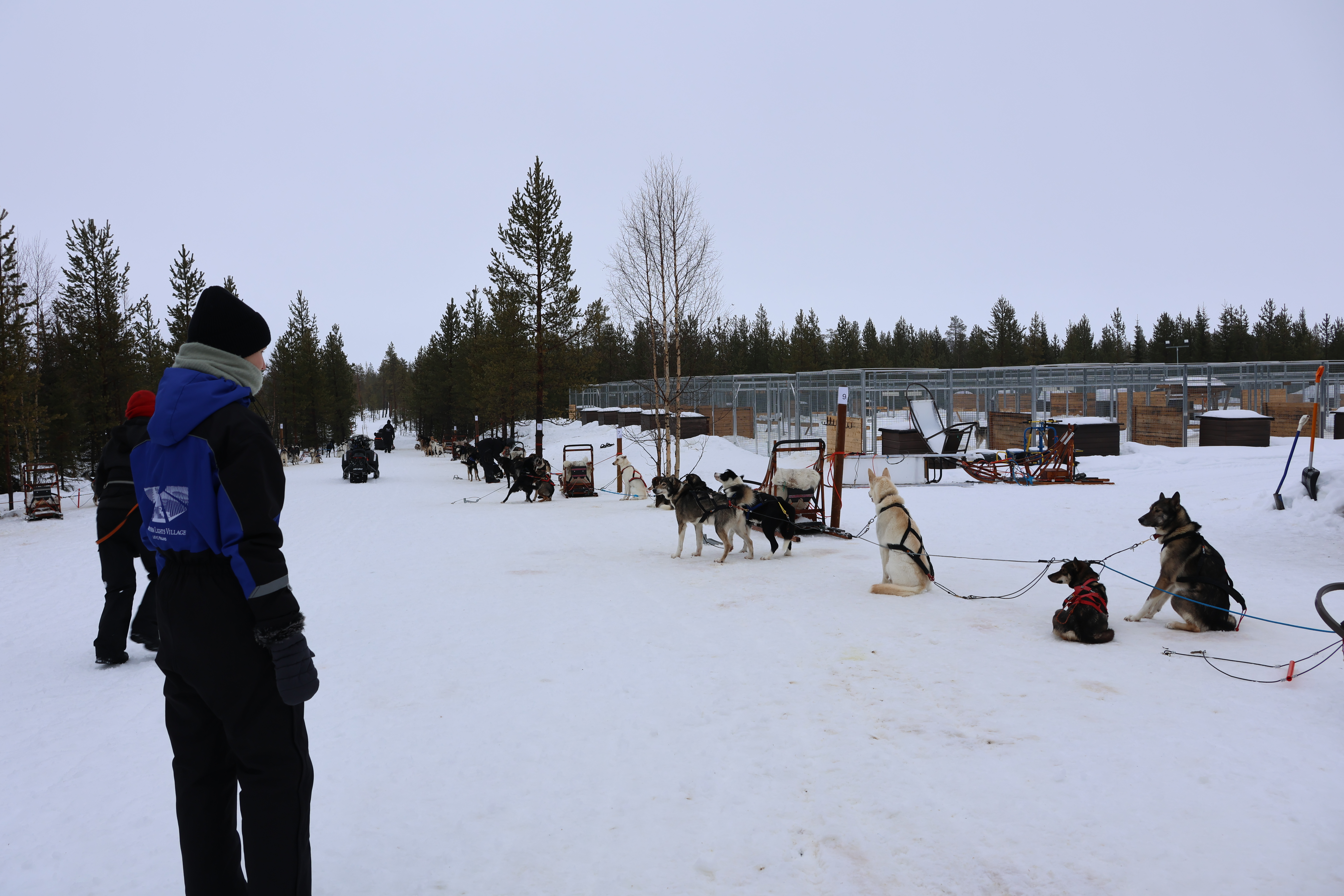 Wir haben für heute eine Tour mit dem Husky-Schlitten durch den Schnee gebucht. Und das beste: wir dürfen selbst fahren. Nach einer kurzen Einweisung besteigen wir unsere Schlitten.