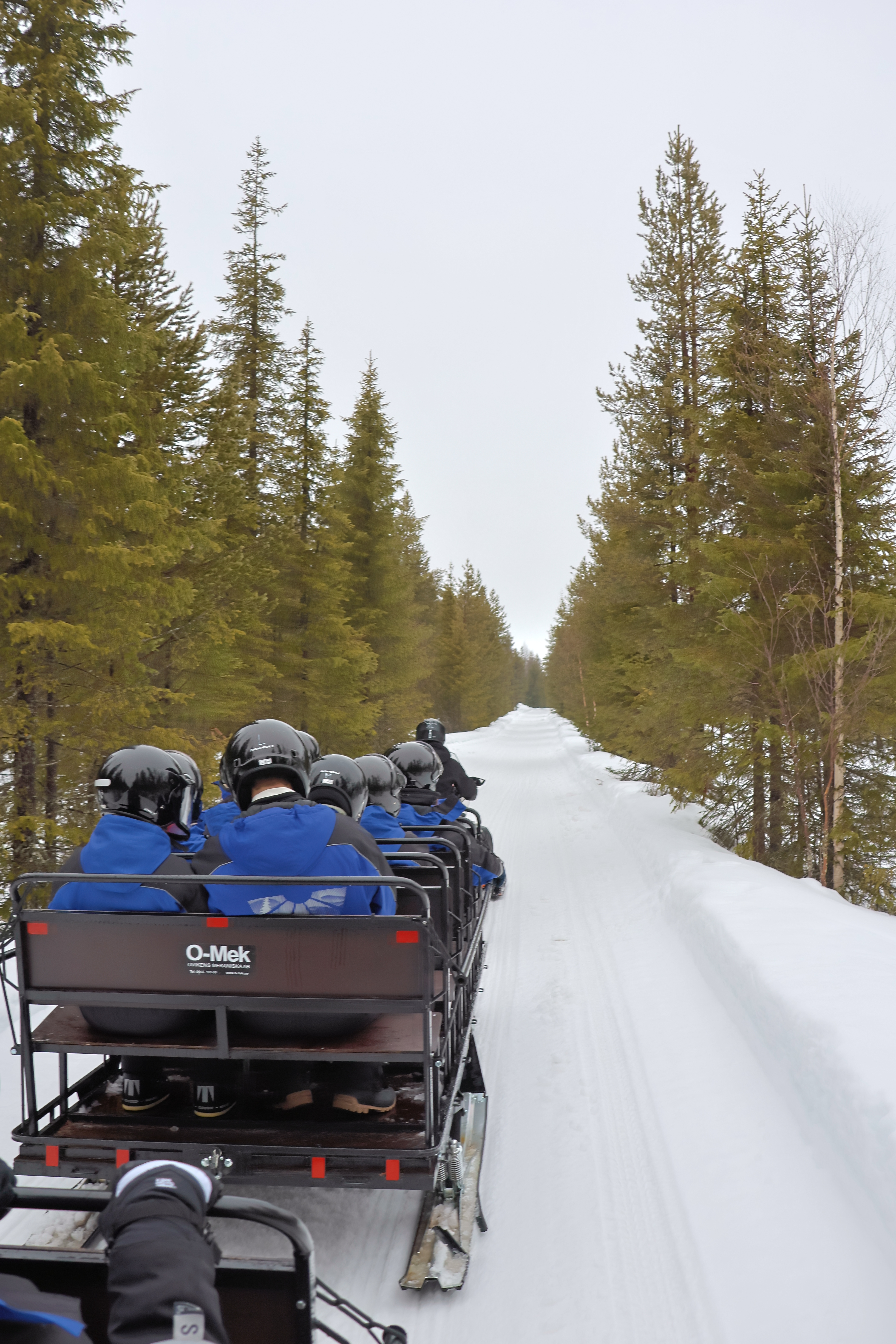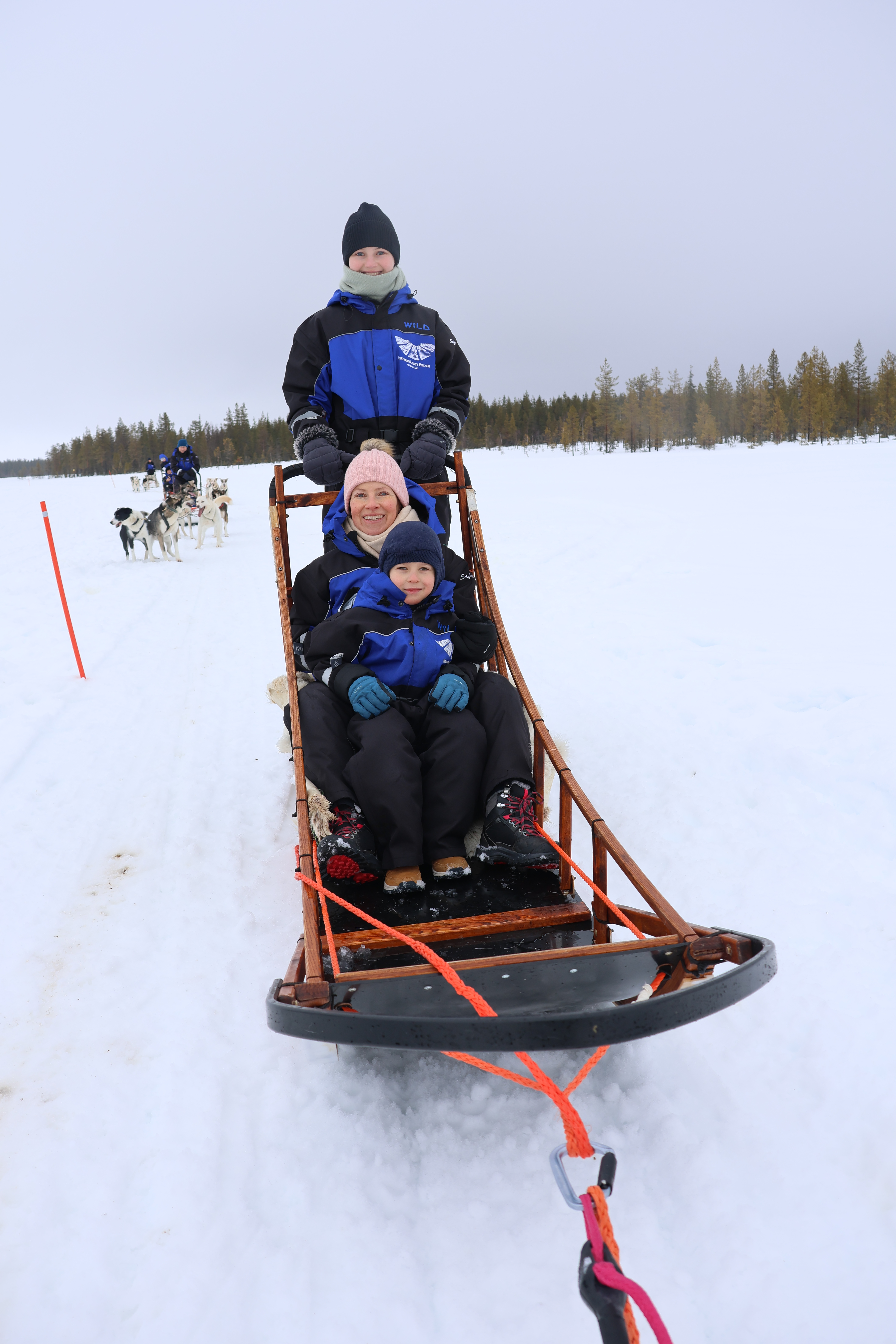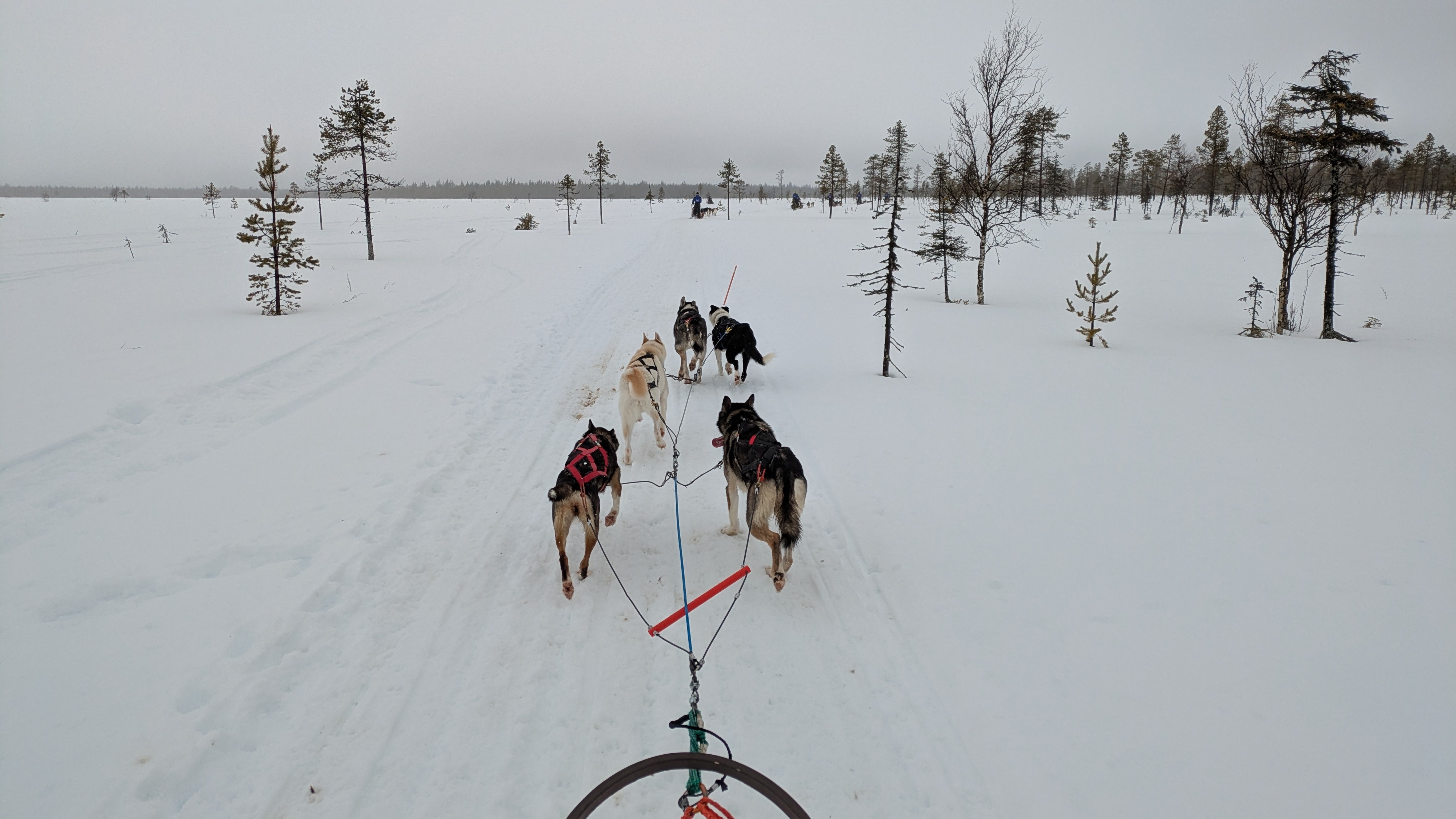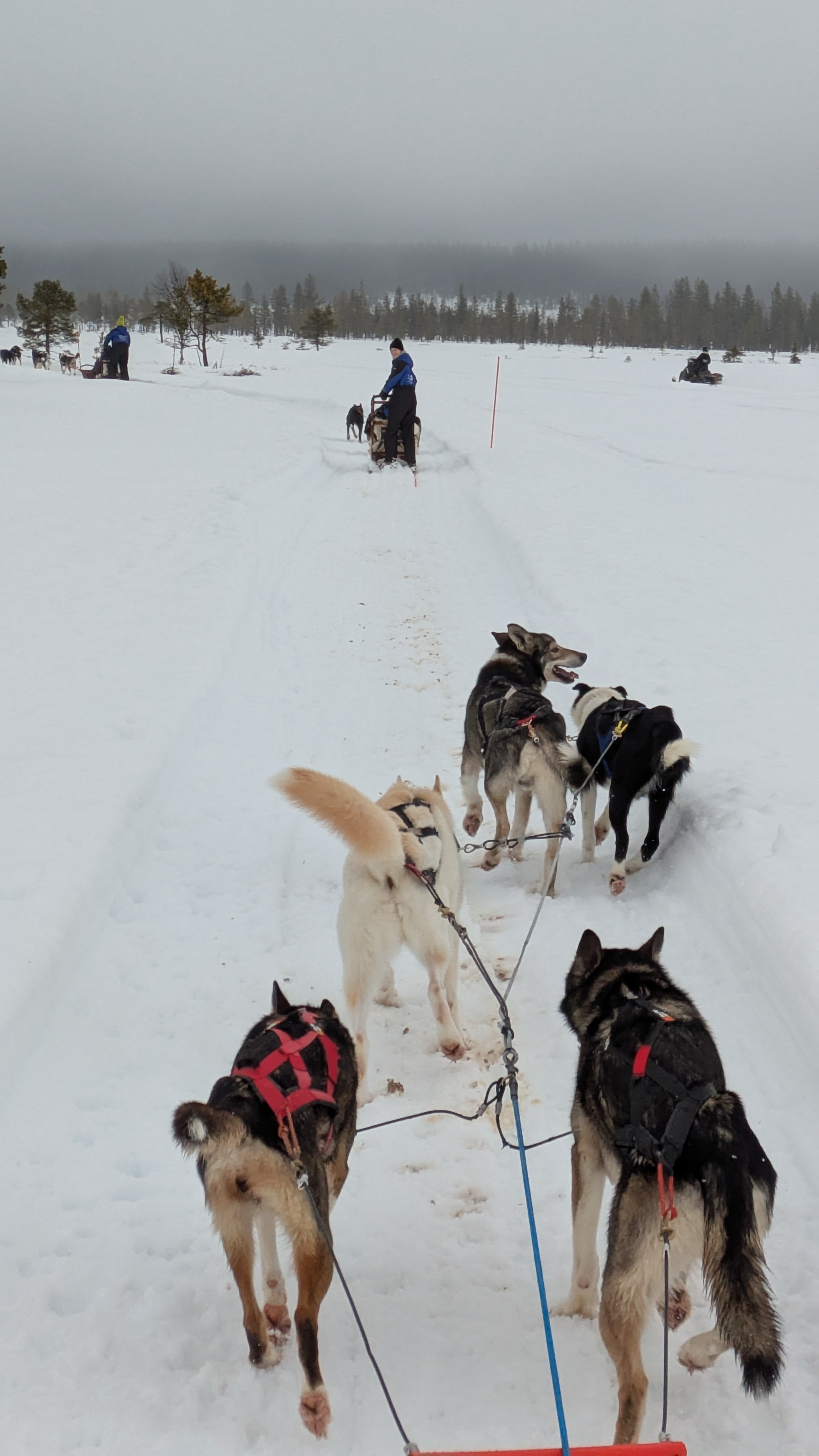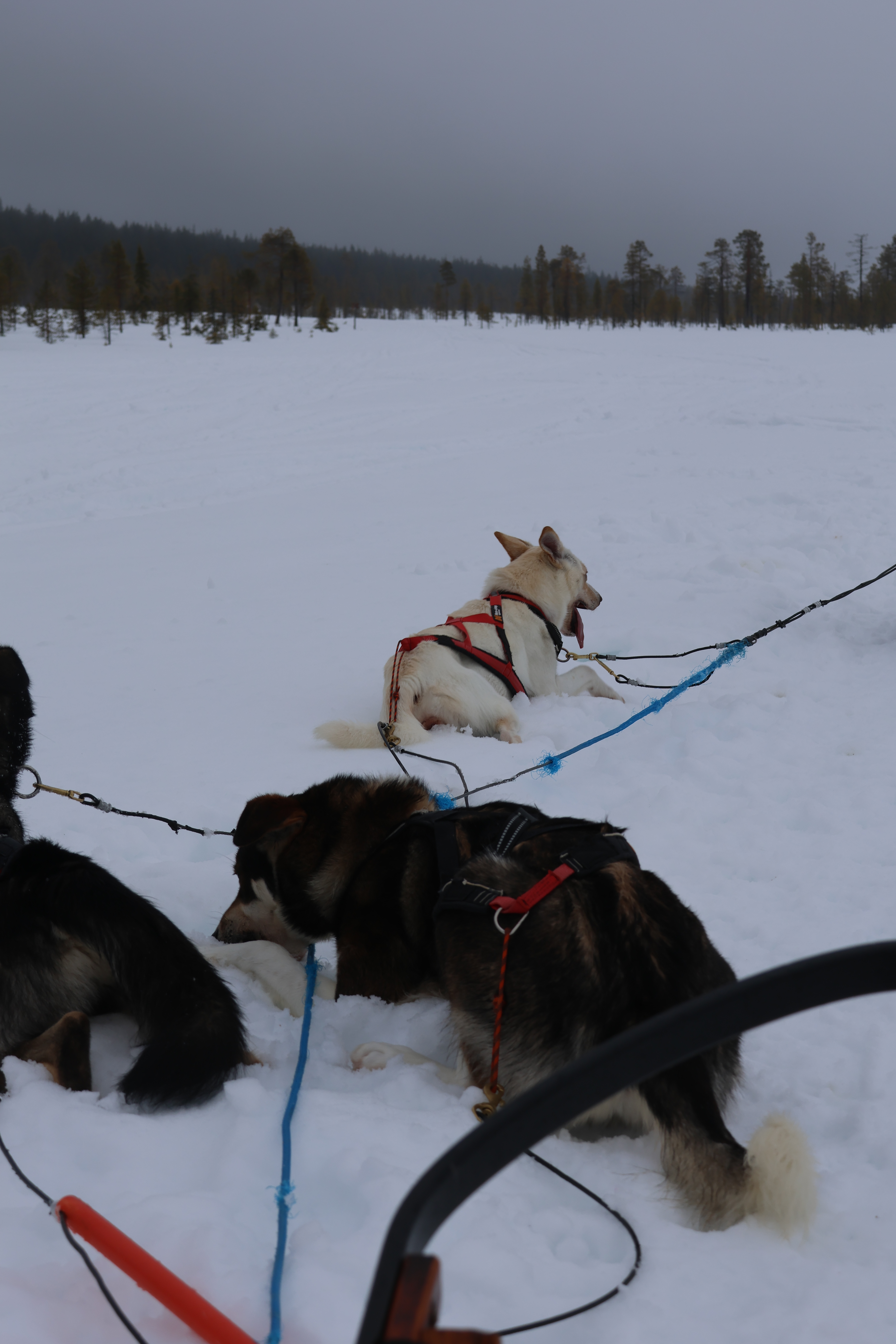 Wir haben für heute eine Tour mit dem Husky-Schlitten durch den Schnee gebucht. Und das beste: wir dürfen selbst fahren. Nach einer kurzen Einweisung besteigen wir unsere Schlitten.