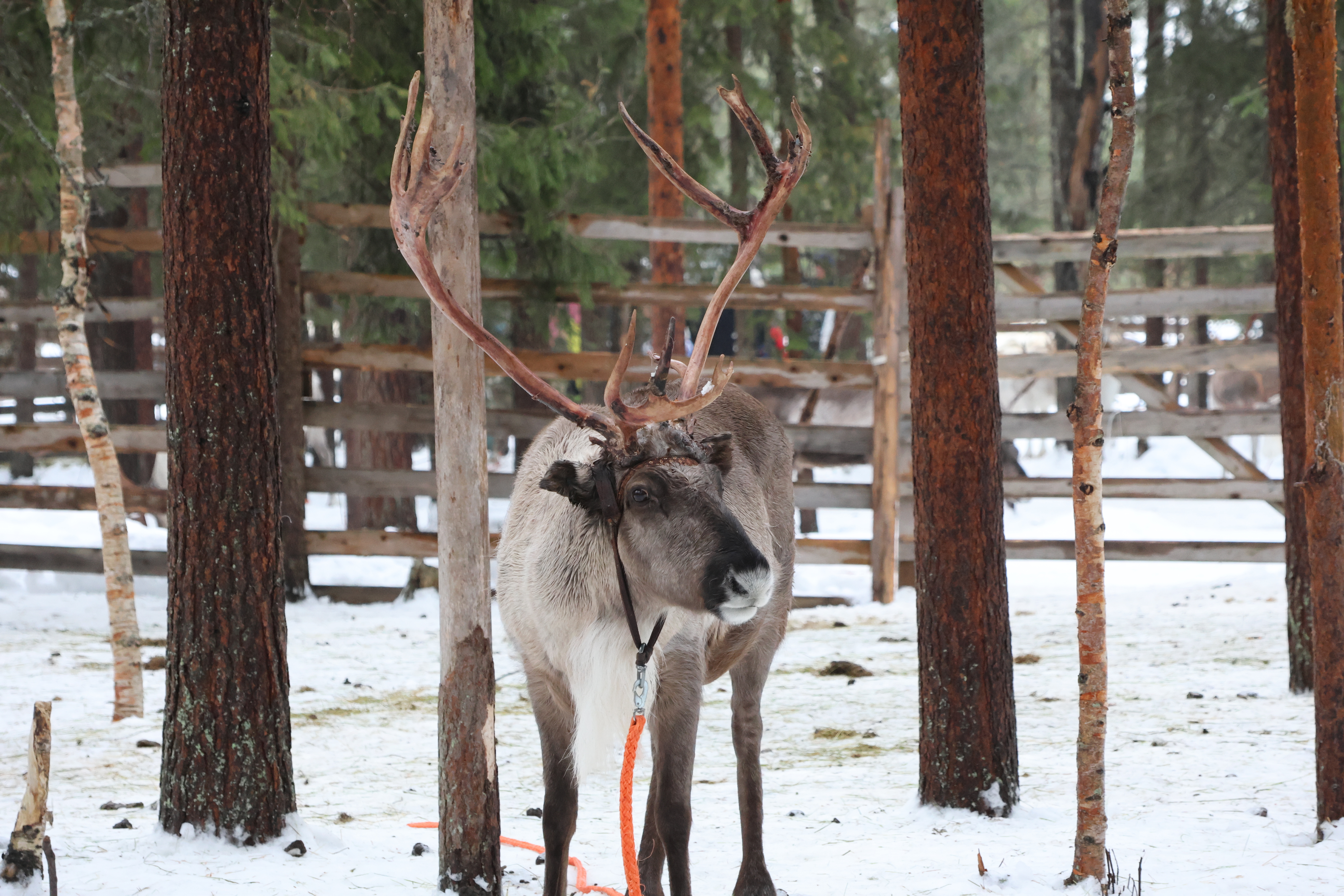 Auf dem Weg zum Auto schauen wir noch kurz am Rentiergehege vorbei. Mit diesen hätte man hier auch Schlitten fahren können.