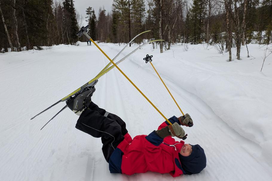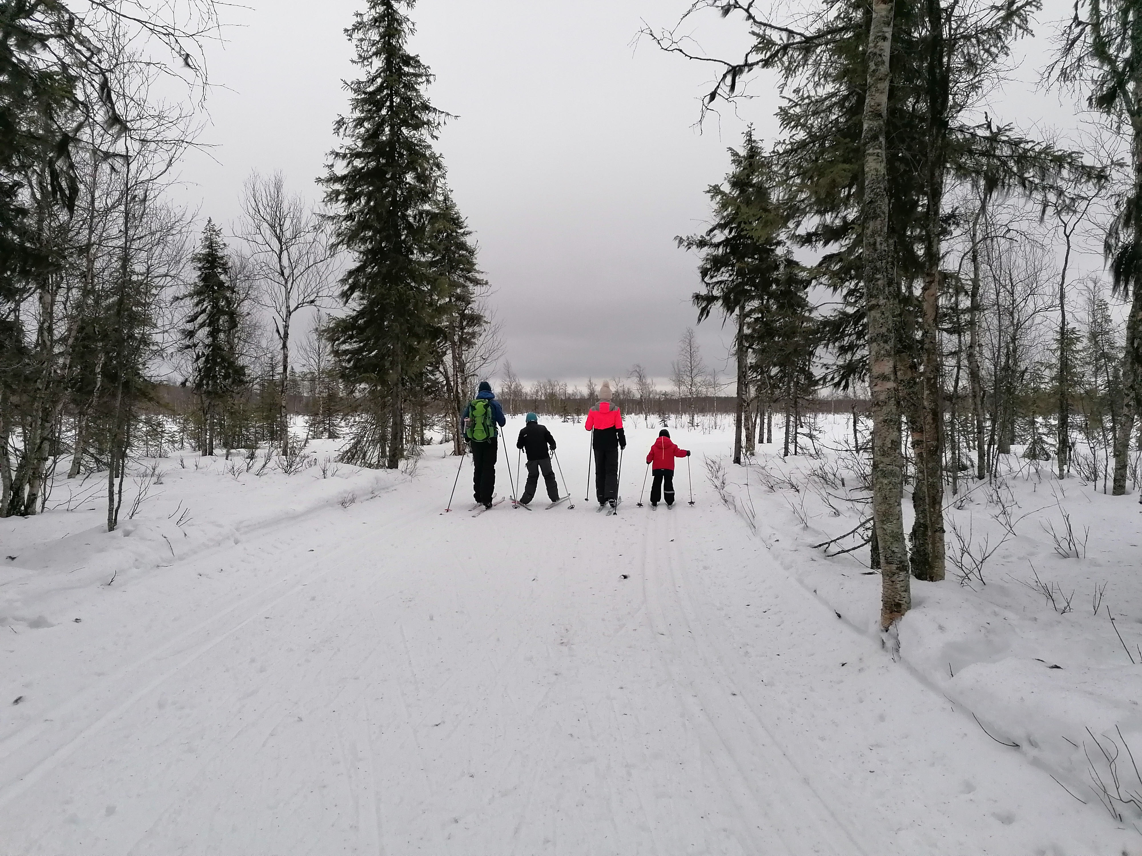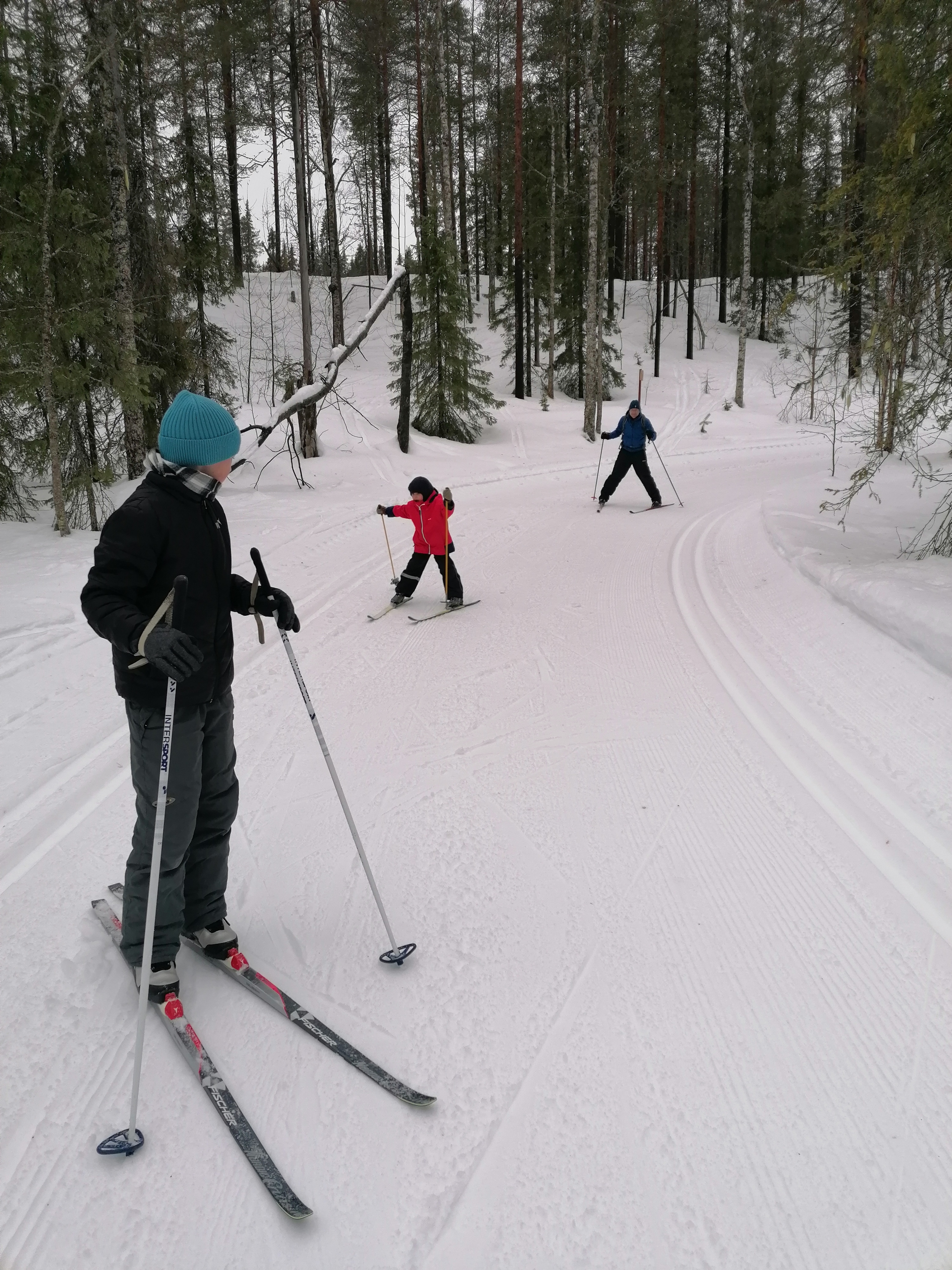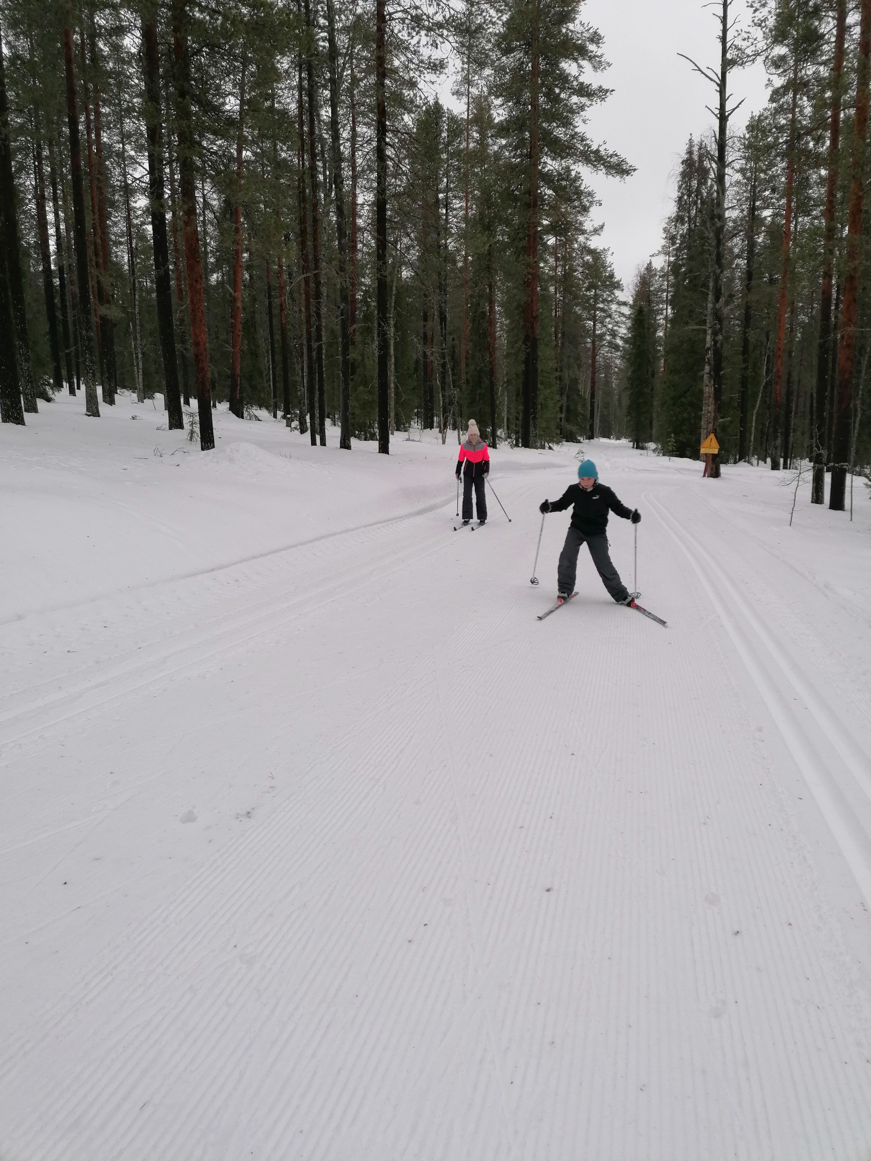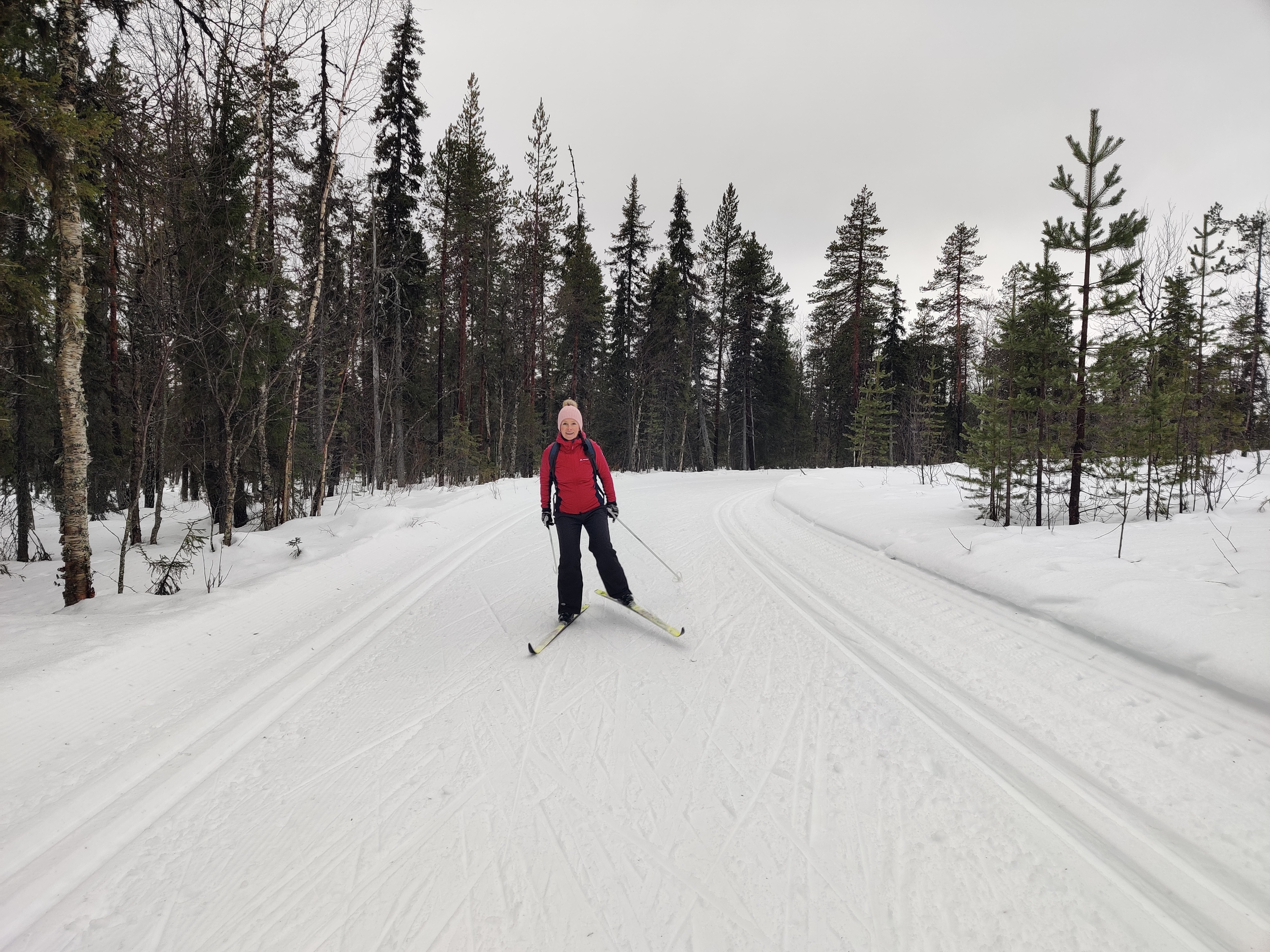 Wir beschließen, das Auto heute lieber stehen zu lassen und mit den Langlaufskiern eine größere Tour zu machen. Die Loipen sind frisch gespurt und im Gegensatz zu den Straßen in einwandfreiem Zustand.