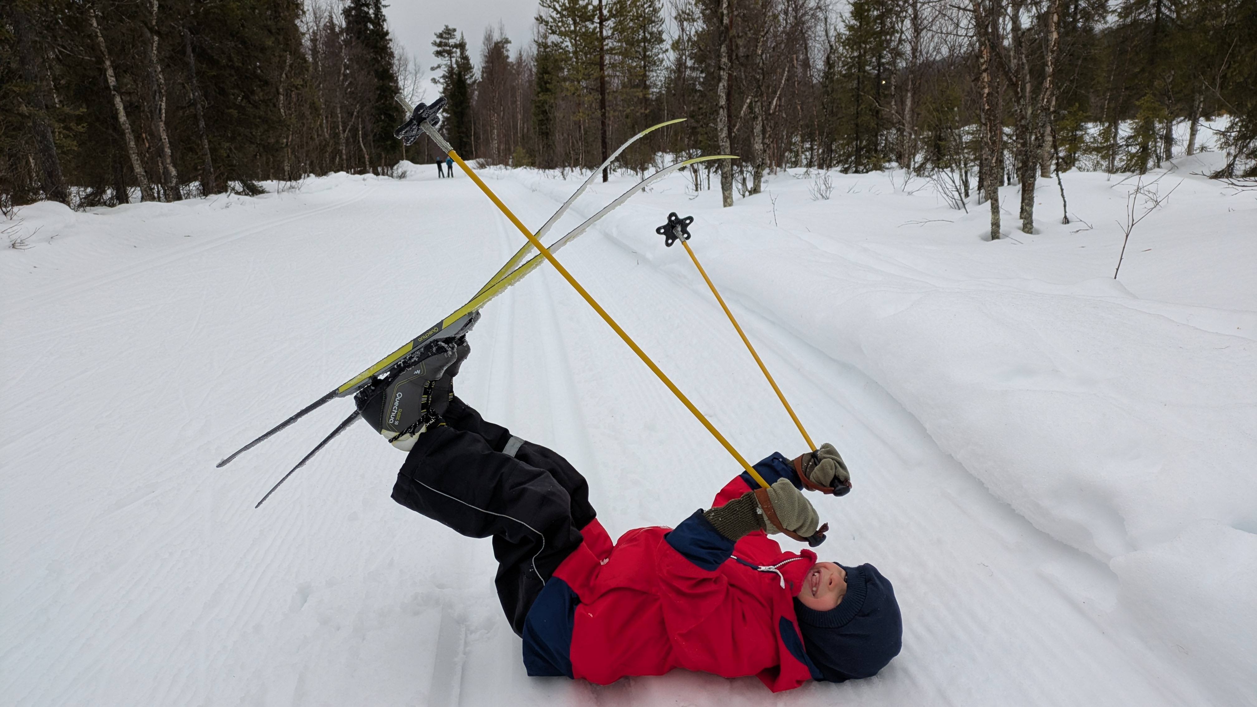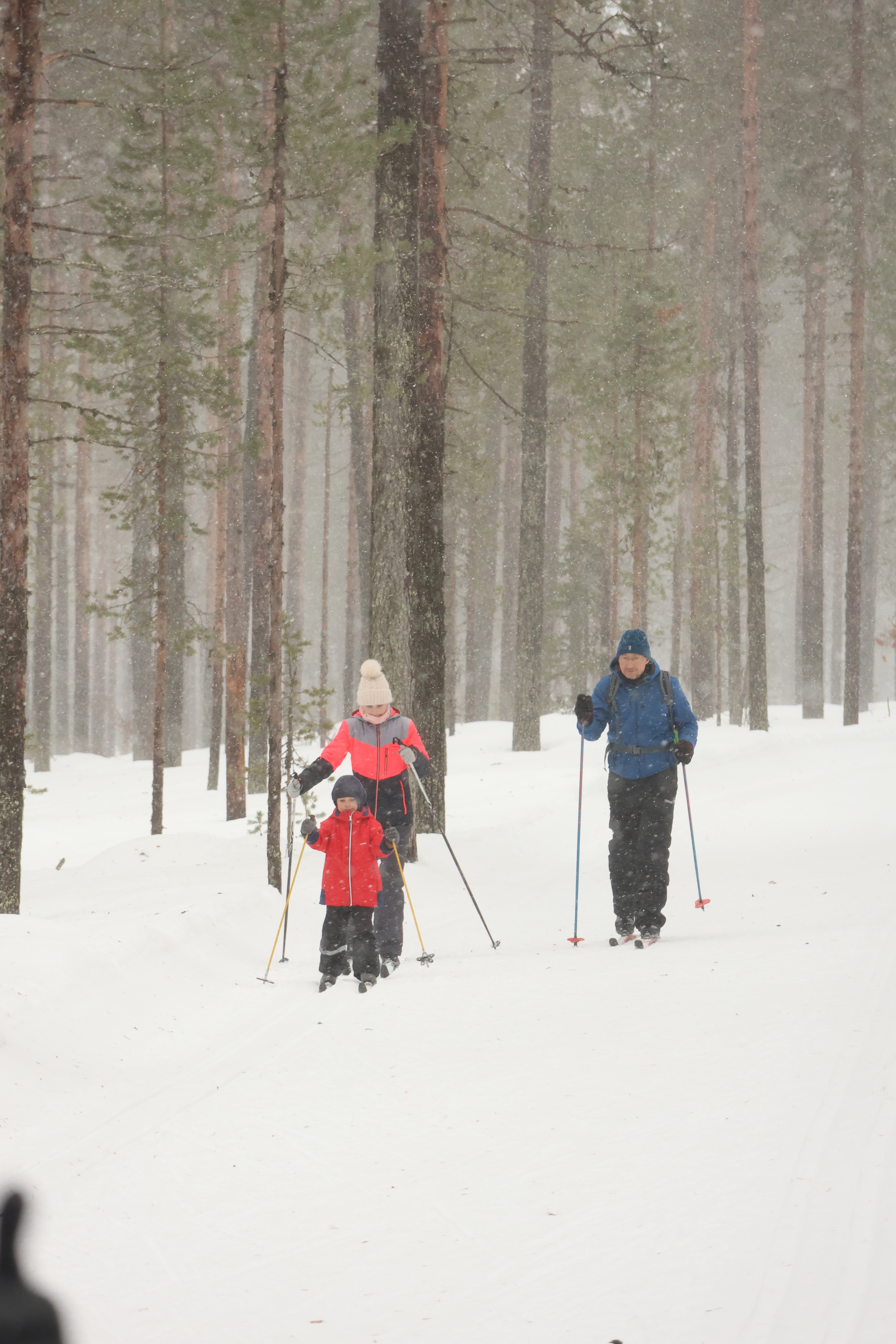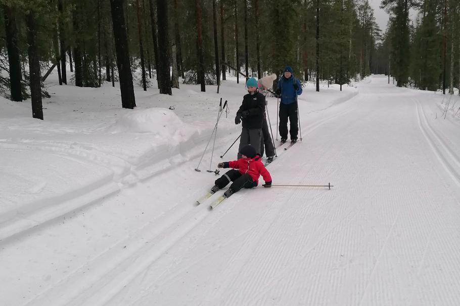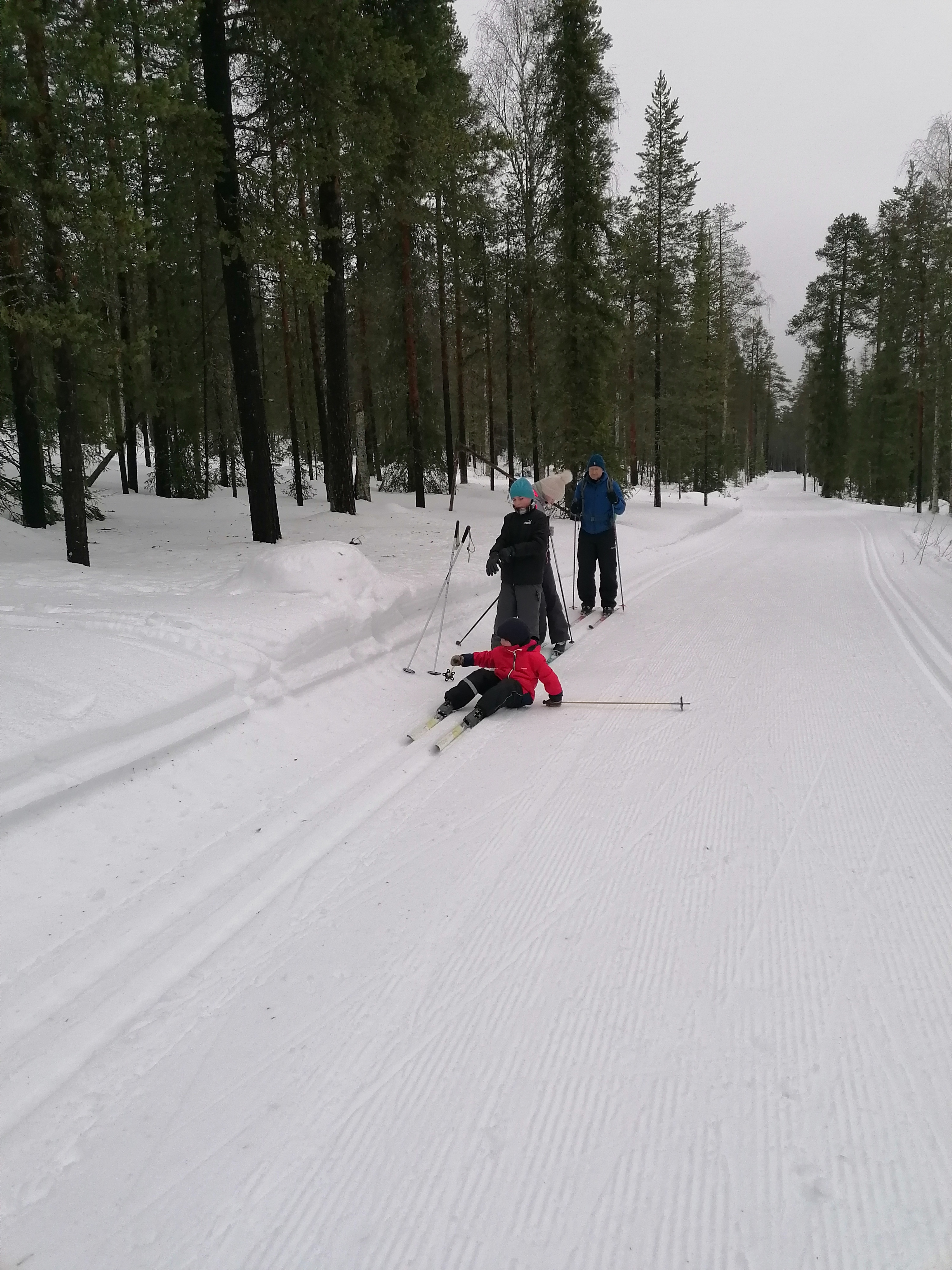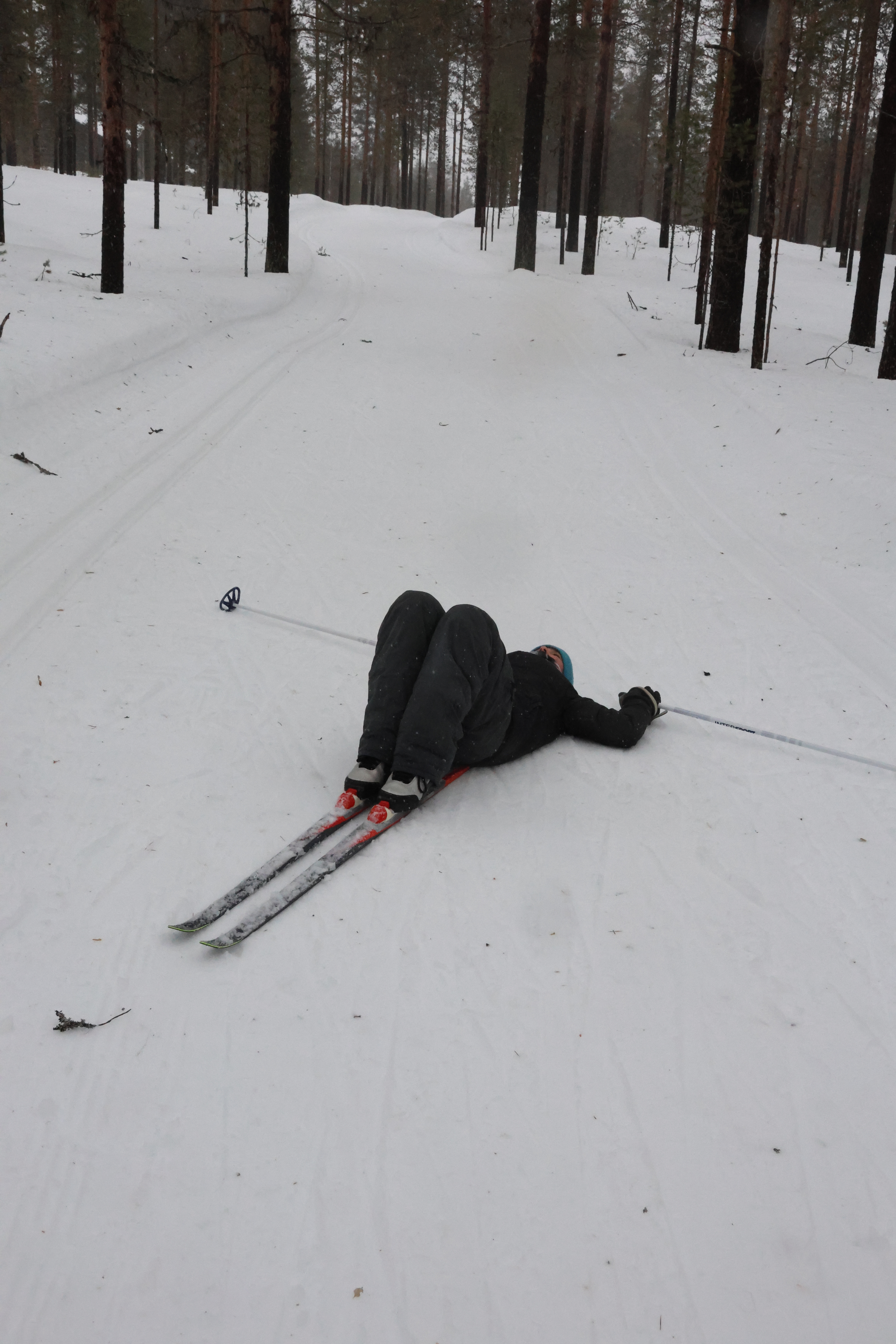 Wir beschließen, das Auto heute lieber stehen zu lassen und mit den Langlaufskiern eine größere Tour zu machen. Die Loipen sind frisch gespurt und im Gegensatz zu den Straßen in einwandfreiem Zustand.