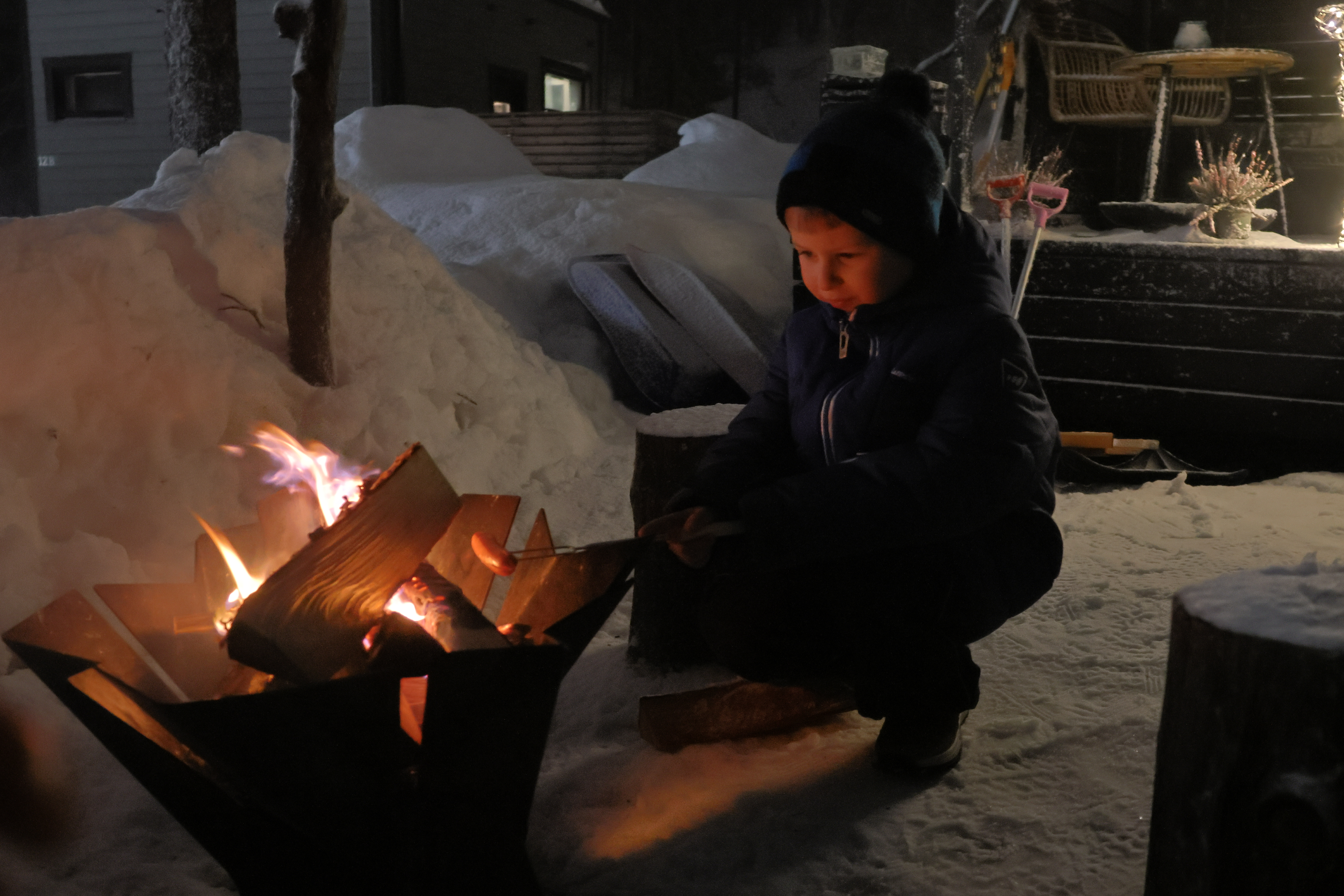 Zum Abendbrot grillen wir uns Würstchen am Feuer auf der Terrasse (zumindest einen Teil, da es recht lange dauert, hauen wir den Rest in die Pfanne). Ich habe heute früh Teig für Brötchen für’s Frühstück angesetzt aber vergessen, in den Kühlschrank zu stellen. Nun ist er schon aufgegangen und es gibt zu den Würstchen frische, ofenwarme Brötchen.