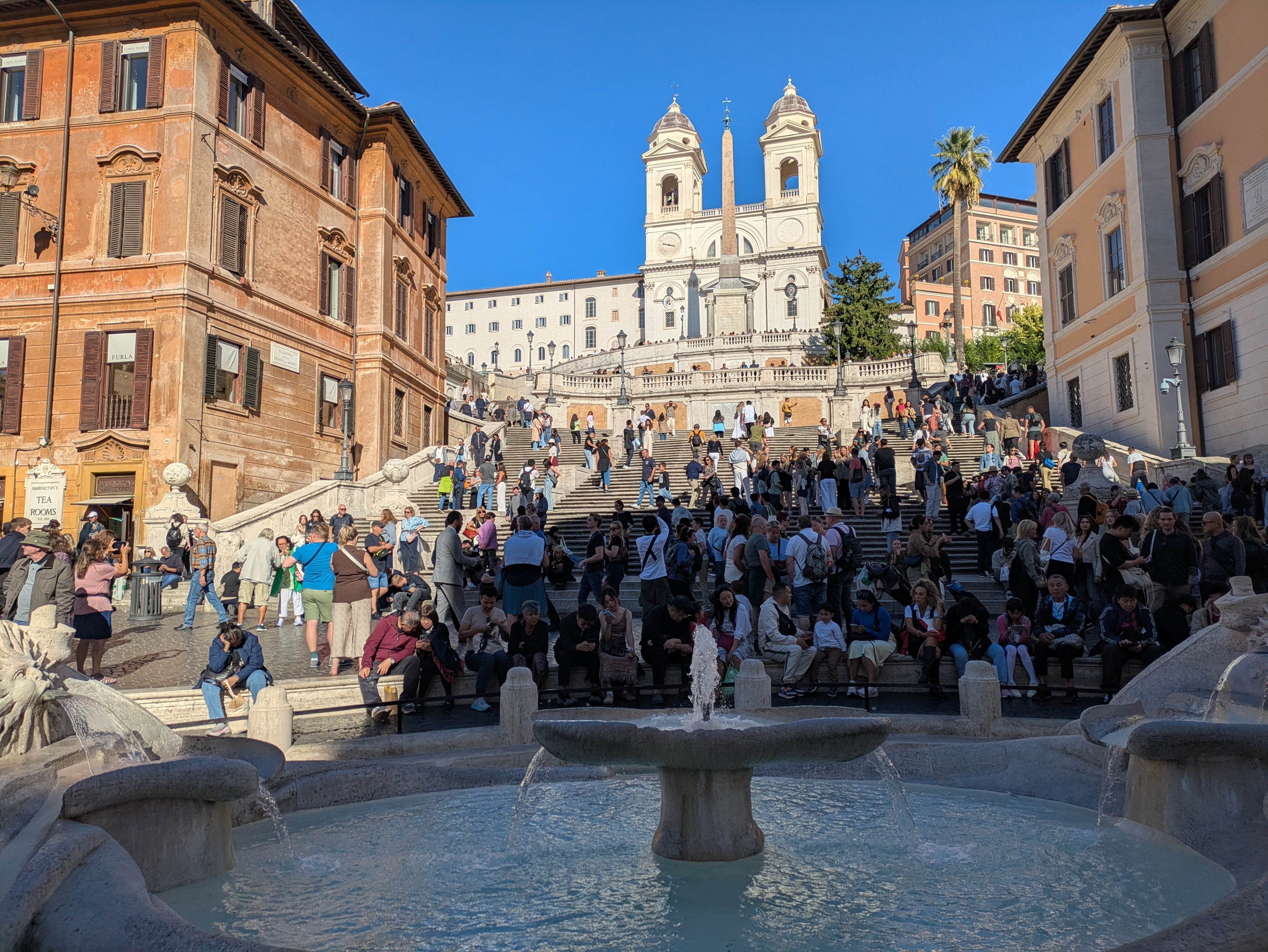 Hier ist es zur Abwechslung richtig voll, so dass wir nur ein paar Schnappschüsse machen und zur spanischen Treppe weitergehen.