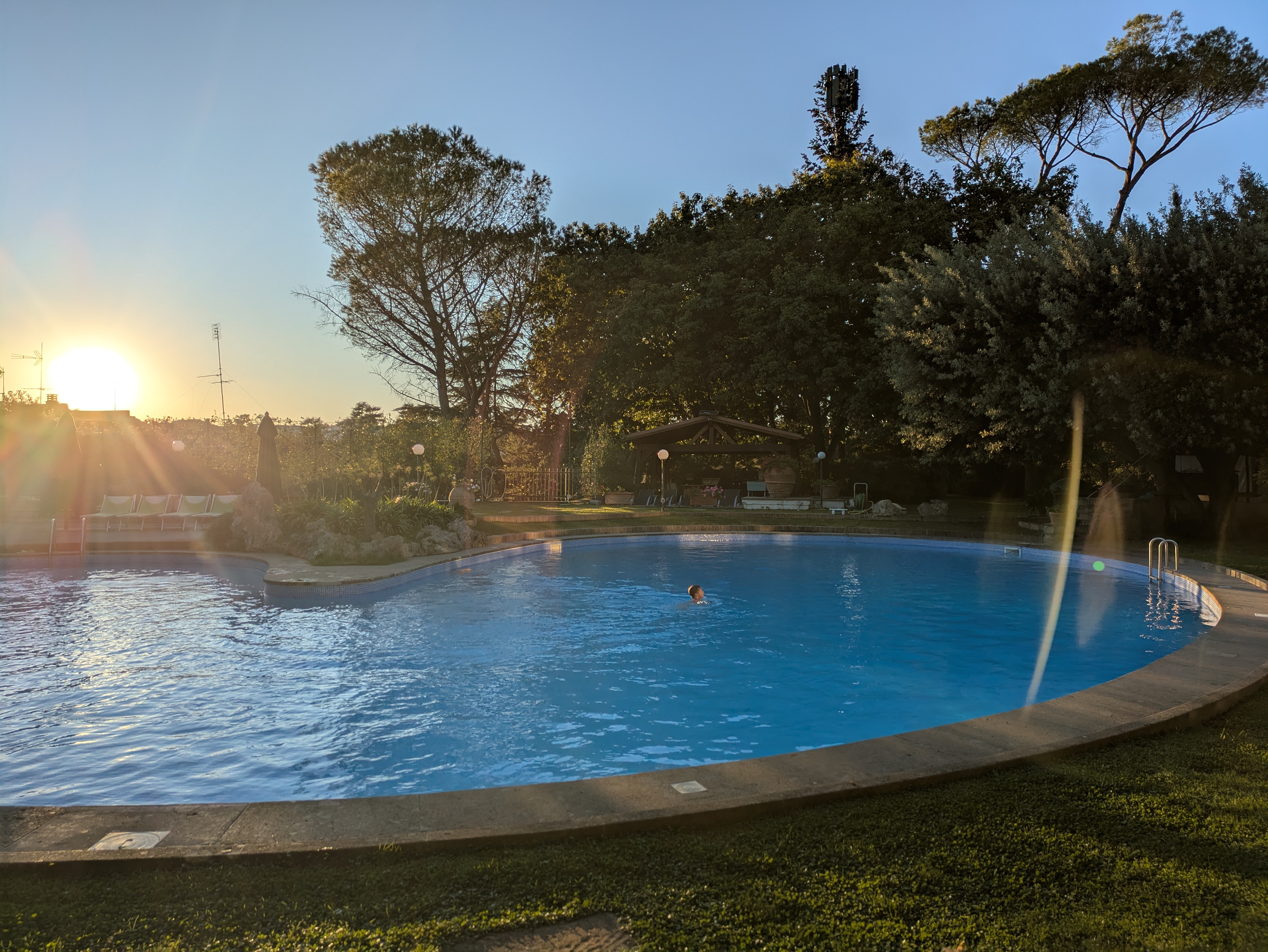 Gestern Abend sind wir nach den vielen Schritten totmüde ins Bett gefallen. Heute starten wir um 8 Uhr mit neuer Energie. Ich hüpfe als erstes in den Pool, dann geht es zum Frühstück.