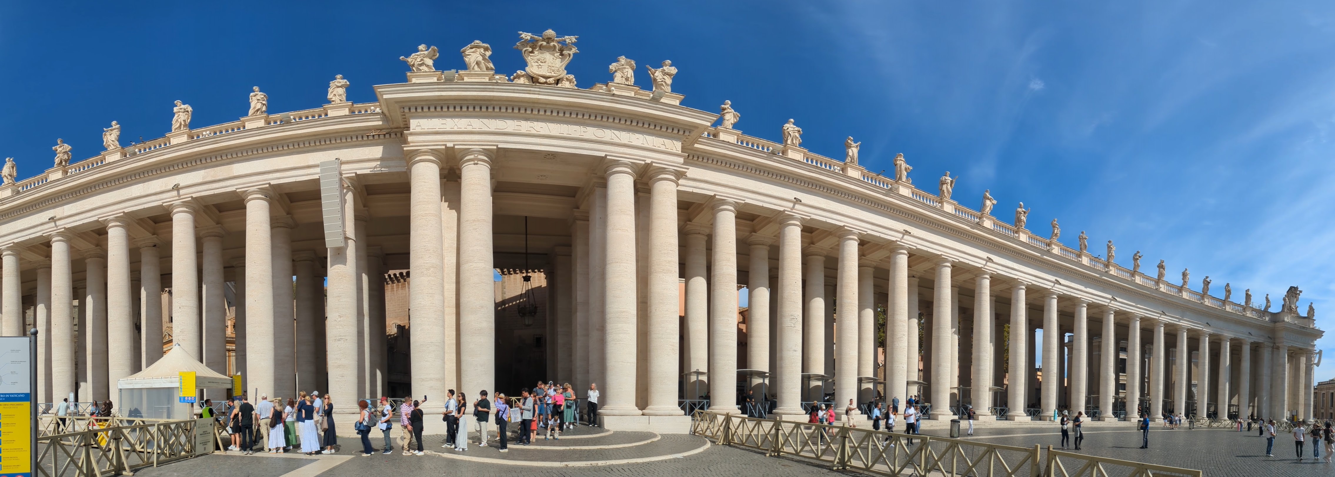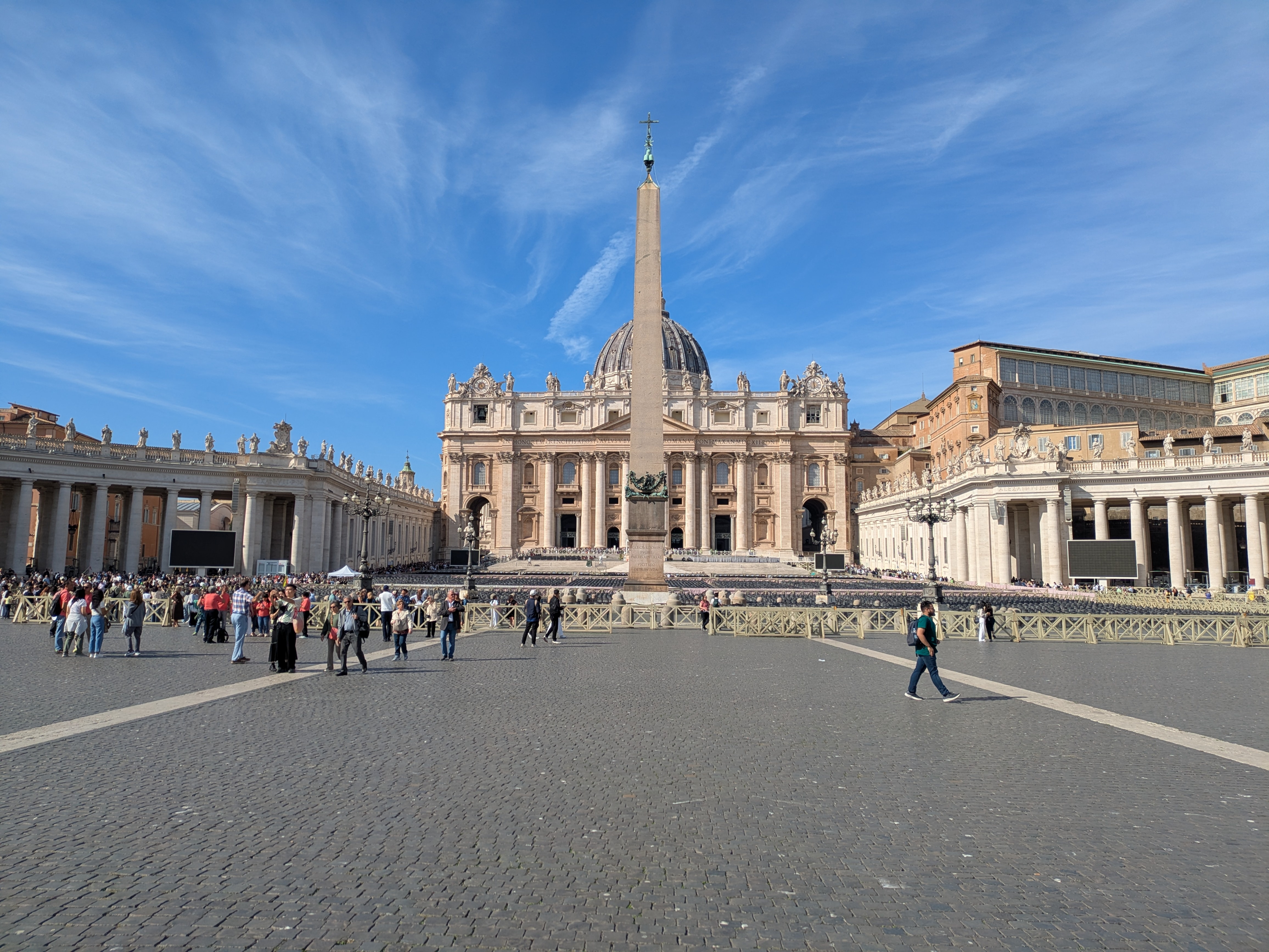 Vom Petersplatz aus geht es erst einmal in eine lange Schlange. Um in den Vatikan zu kommen, müssen wir uns erst einmal eine Stunde anstellen.