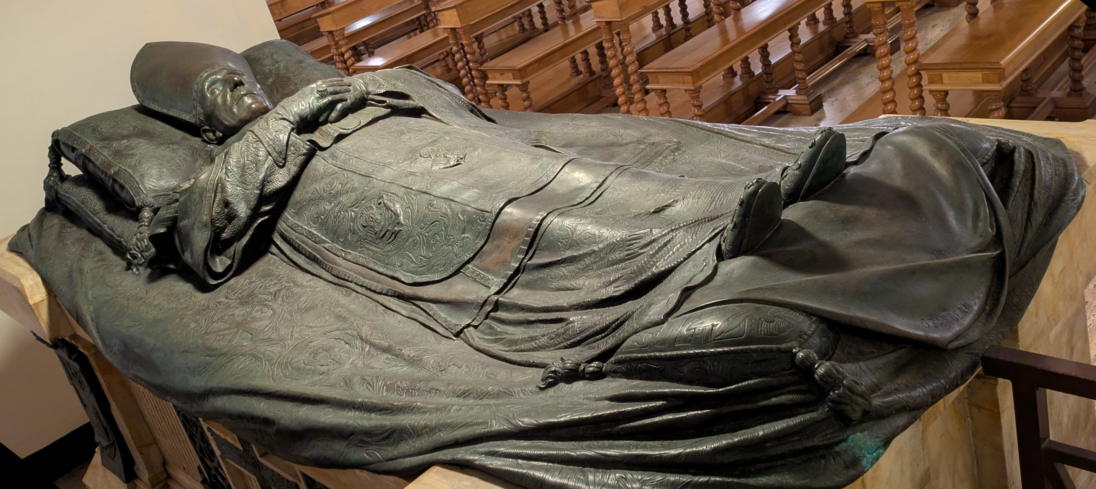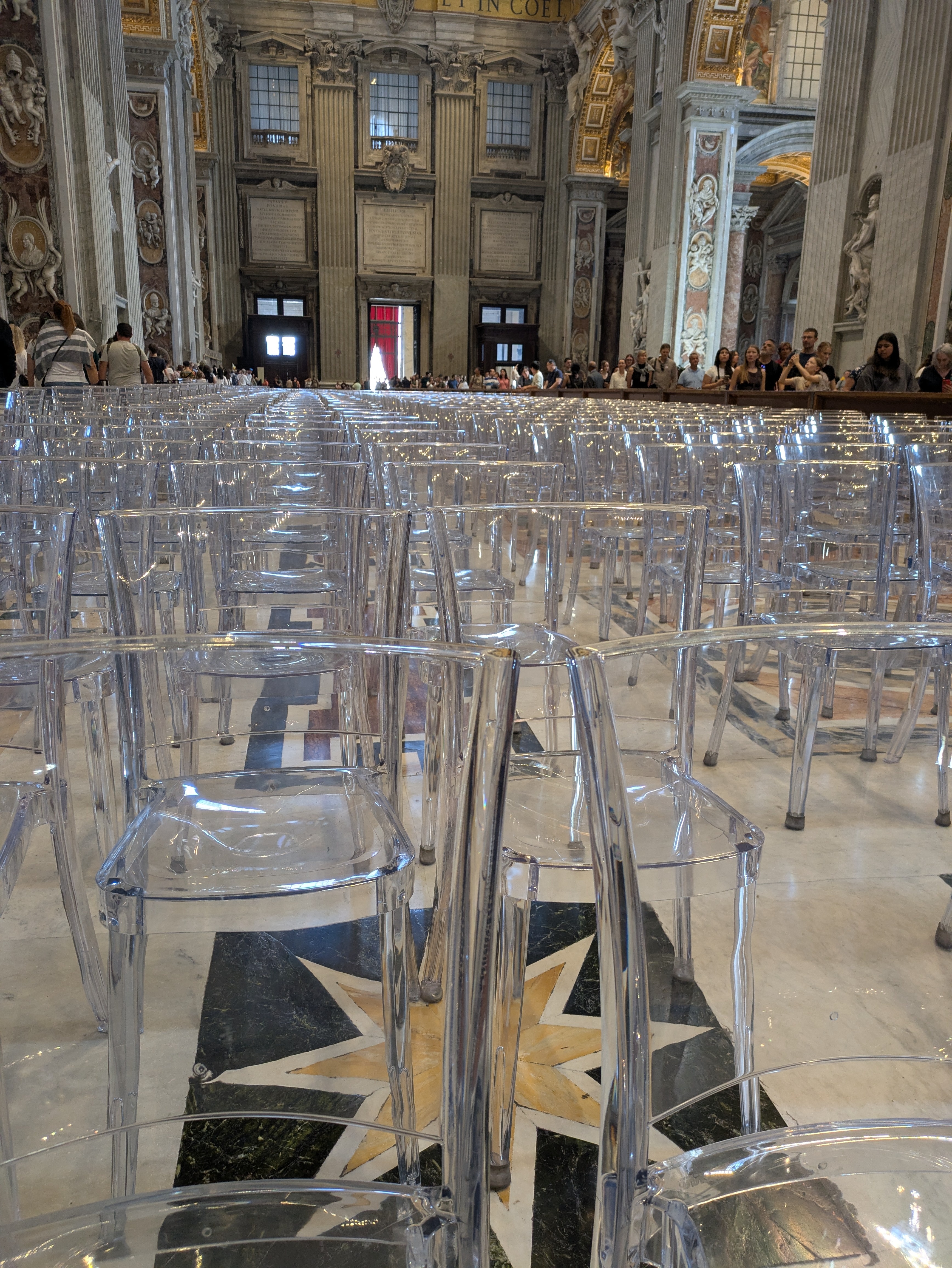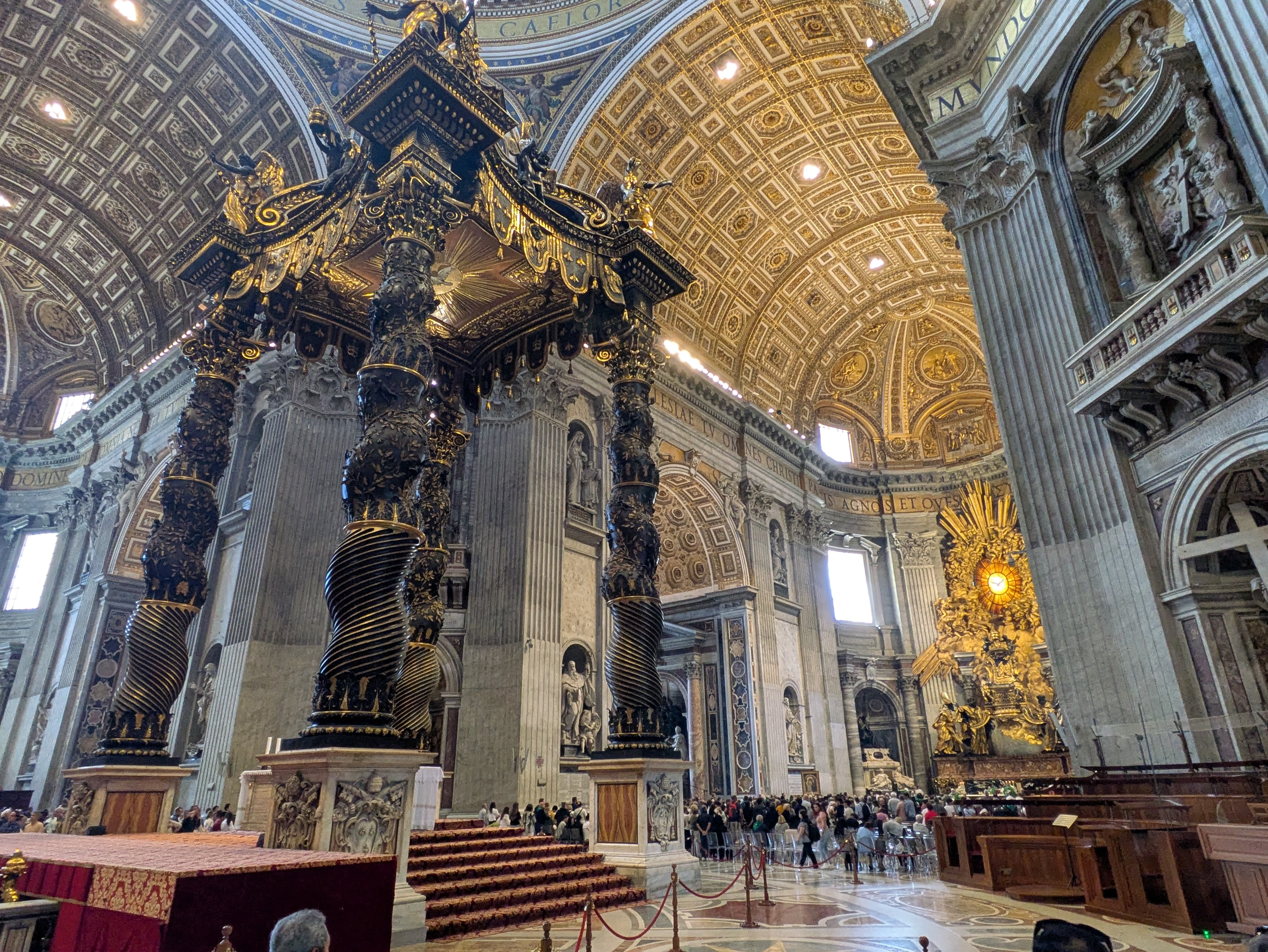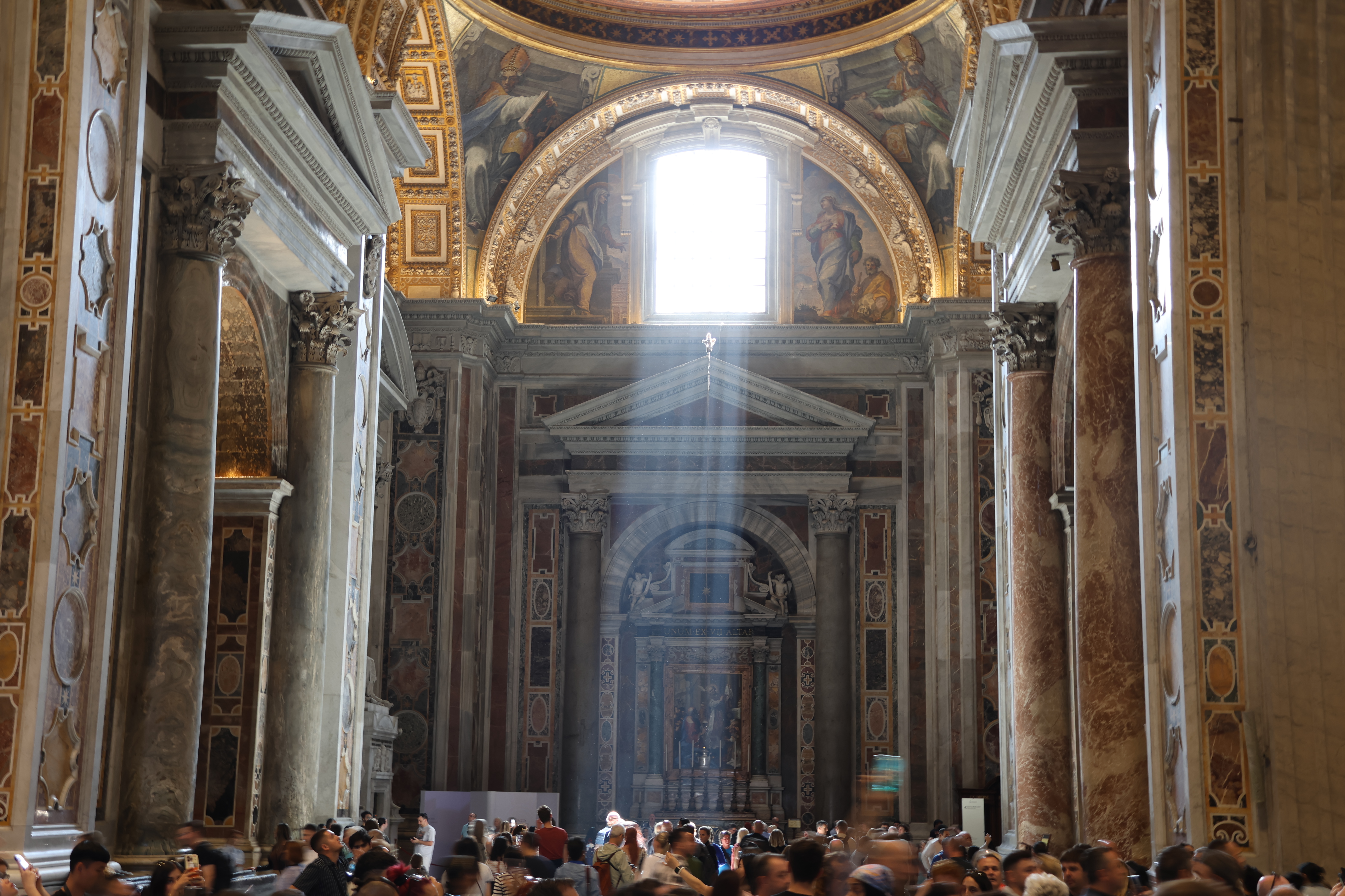Vom Eingang aus geht es erstmal in die “Grotten” - die Grabkeller, in denen die ehemaligen Päpste beerdigt sind. Auf dem Weg kommen wir an einer langen Schlange am Eingang zum Peterstdom vorbei - da müssen wir uns wohl oder übel auch nochmal anstellen.