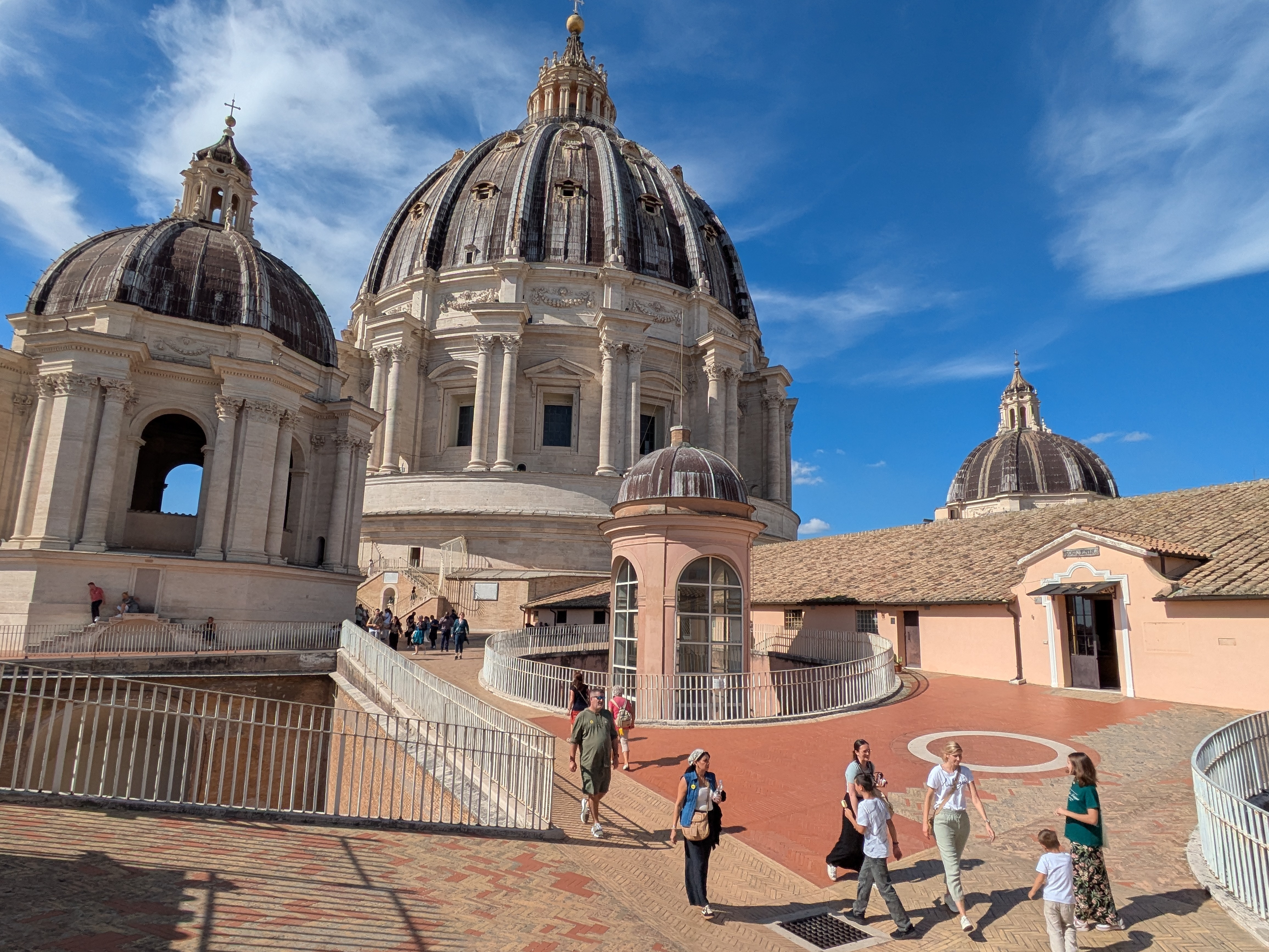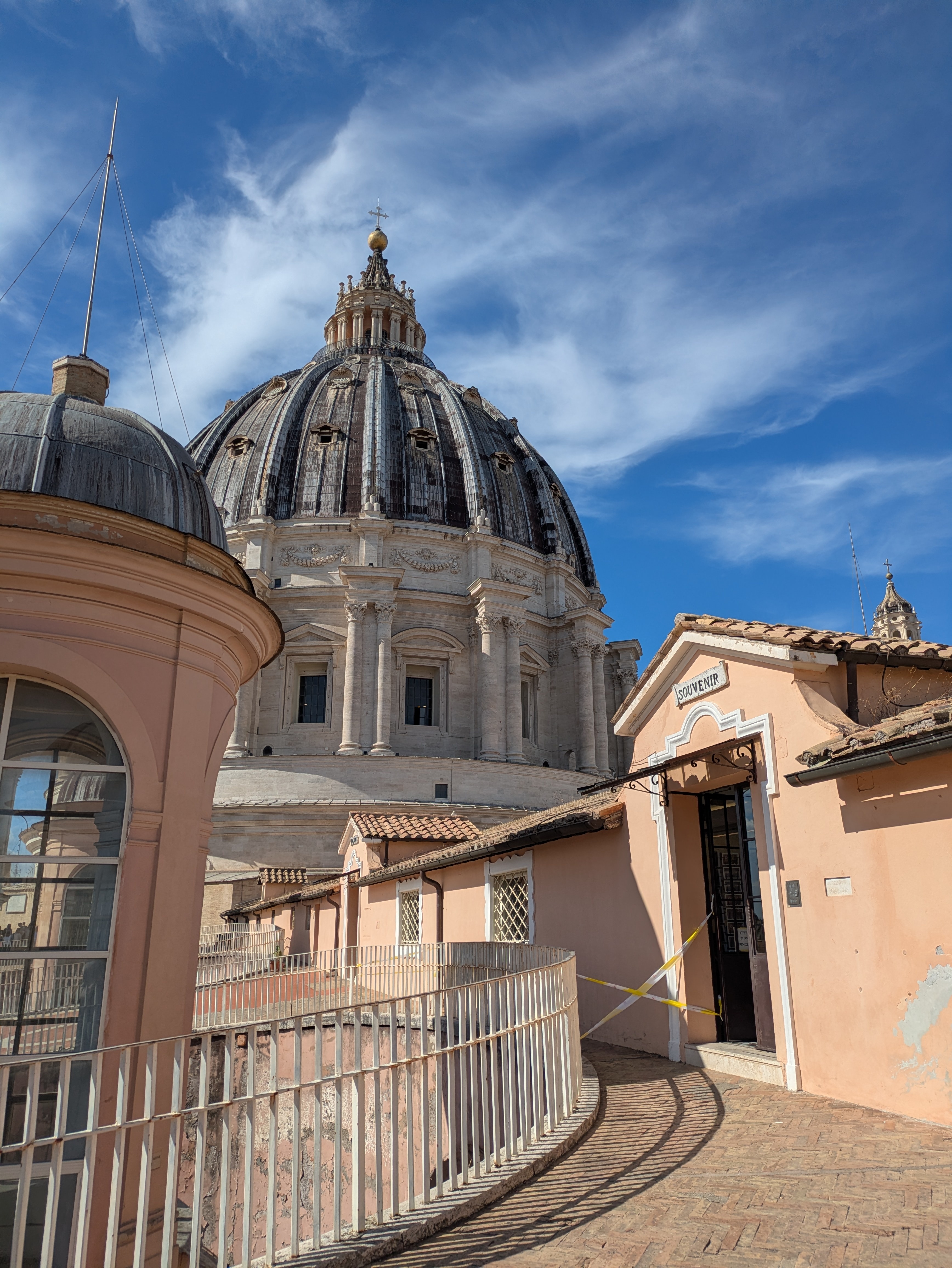 Nach etwas über 200 Stufen durch enge Treppenhäuser kommen wir am höchsten Punkt der Kuppel an und werden mit einem tollen Blick über Rom belohnt.