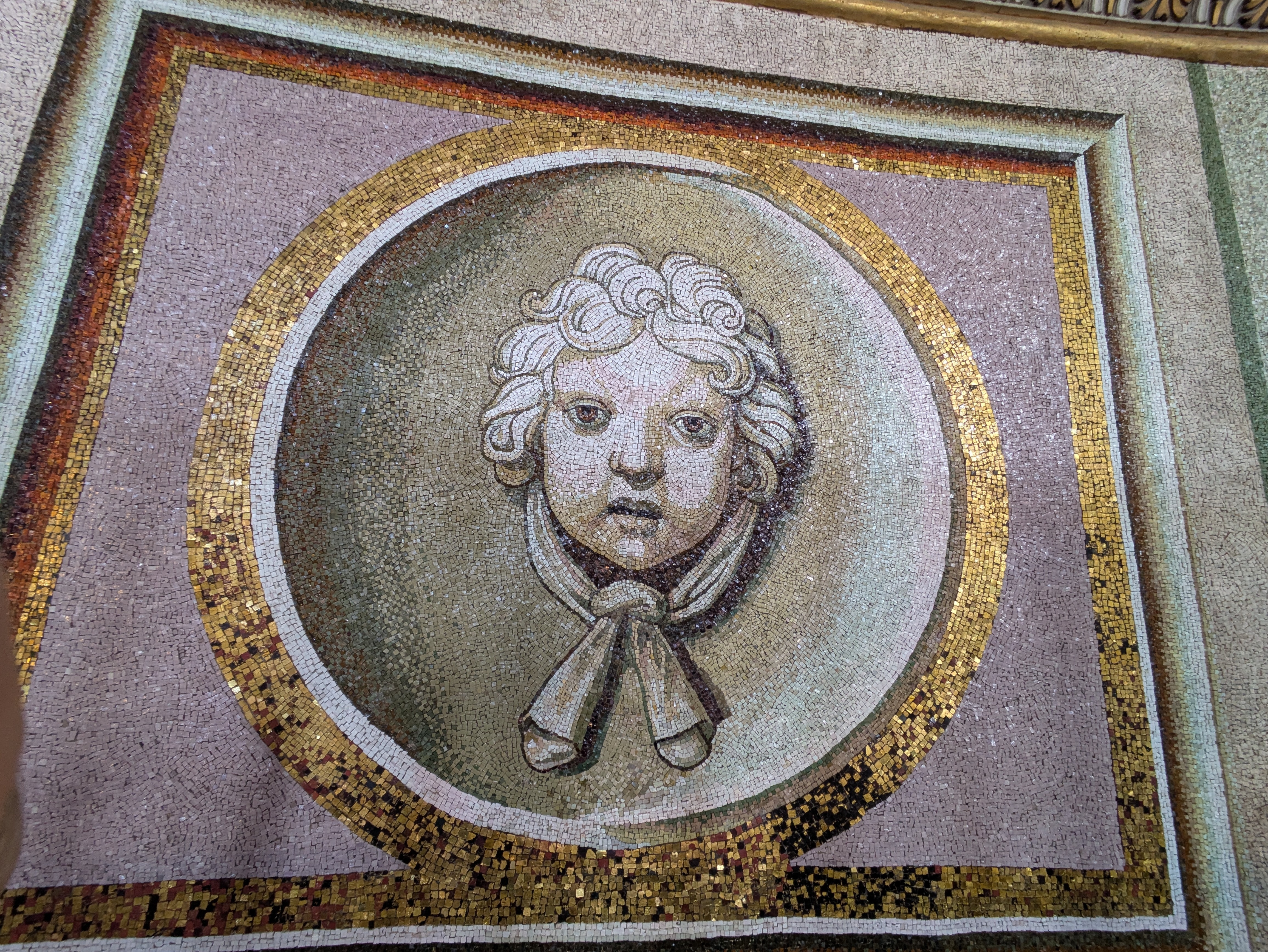 Nachdem wir zwei Runden gedreht und viele der Orte der letzten Tage nochmal von oben gesehen haben, geht es die Treppen auf der anderen Seite der Kuppel wieder hinunter. Wir stoppen nochmal an der Innenseite, wo große Mosaike die Wände zieren.