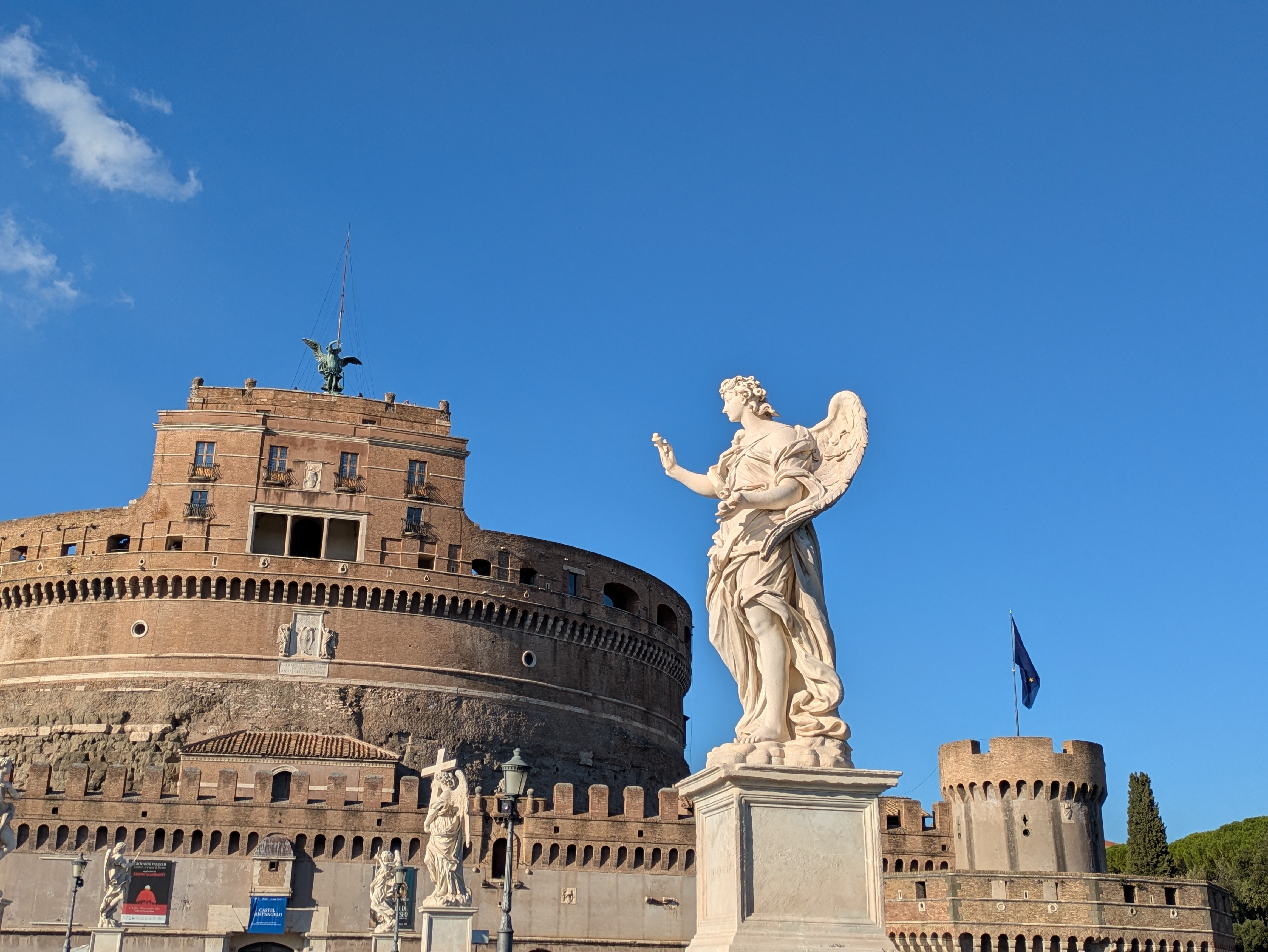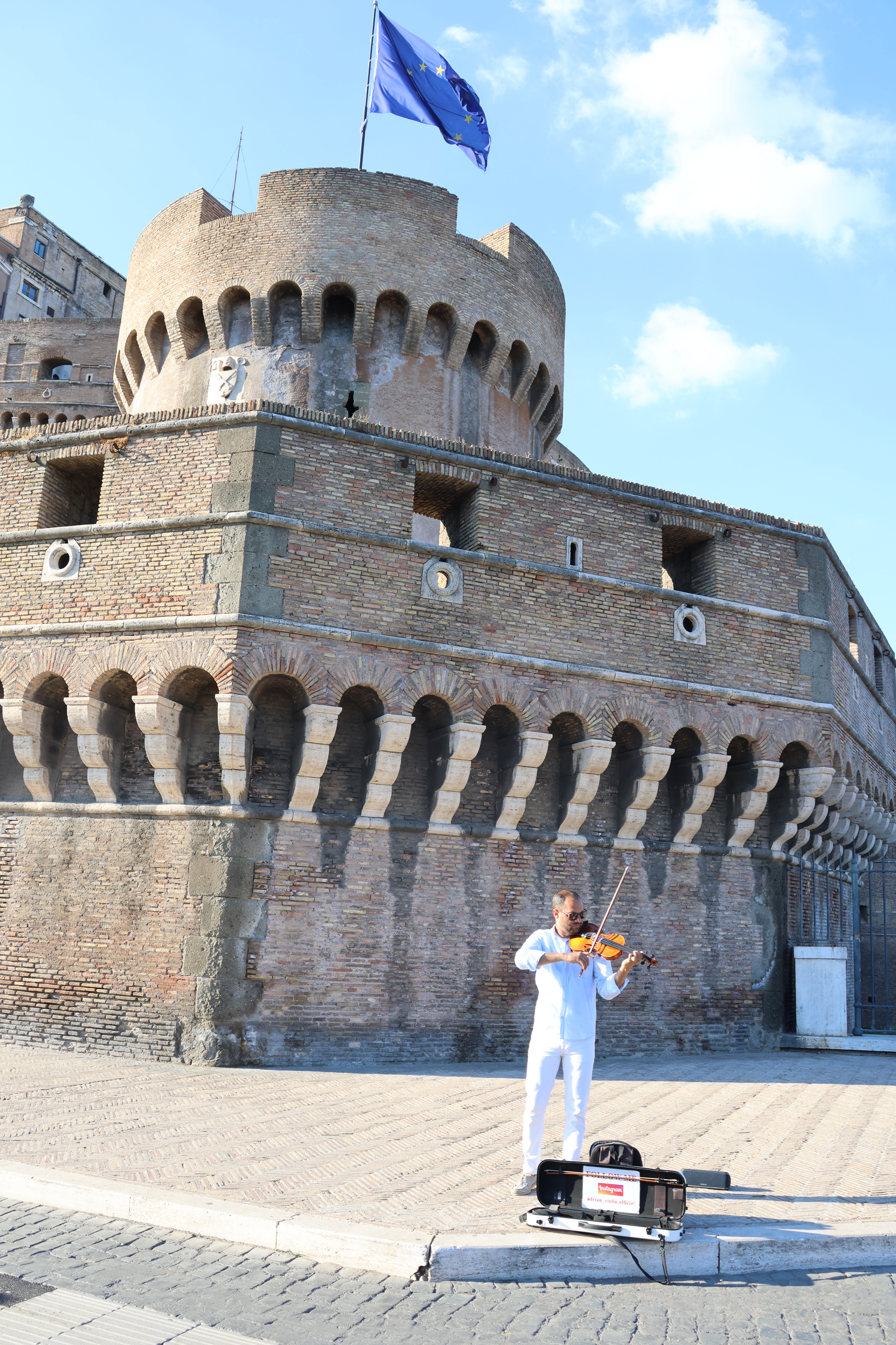 Wir haben heute nichts mehr vor und erschlagen die Zeit mit Bummeln durch die Stadt. An der Engelsburg spielt ein Straßenkünstler Geige, hier bleiben wir eine ganze Weile.